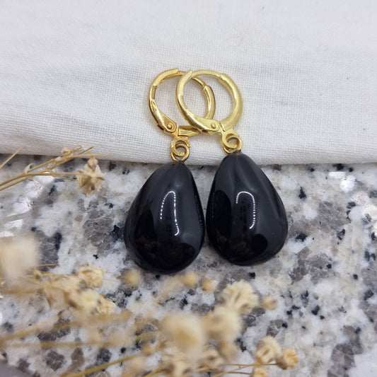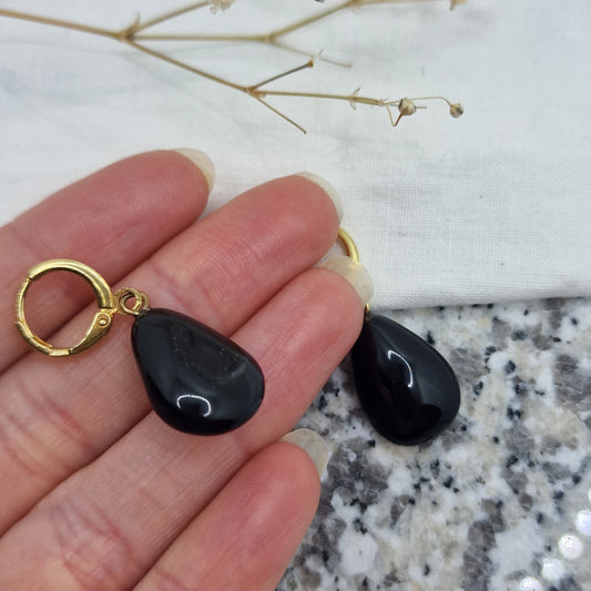 RazprodanoČrni Obsidian - Viseči Uhani Solza