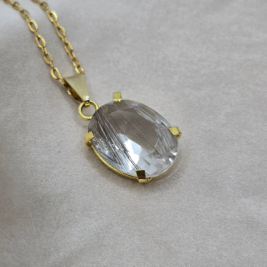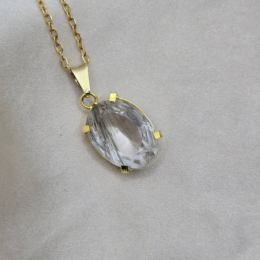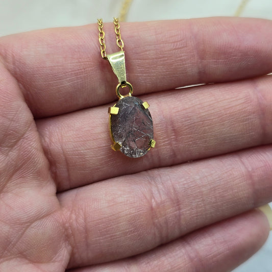 Turmalin Inclusion - Mini Brušen Oval Verižica
