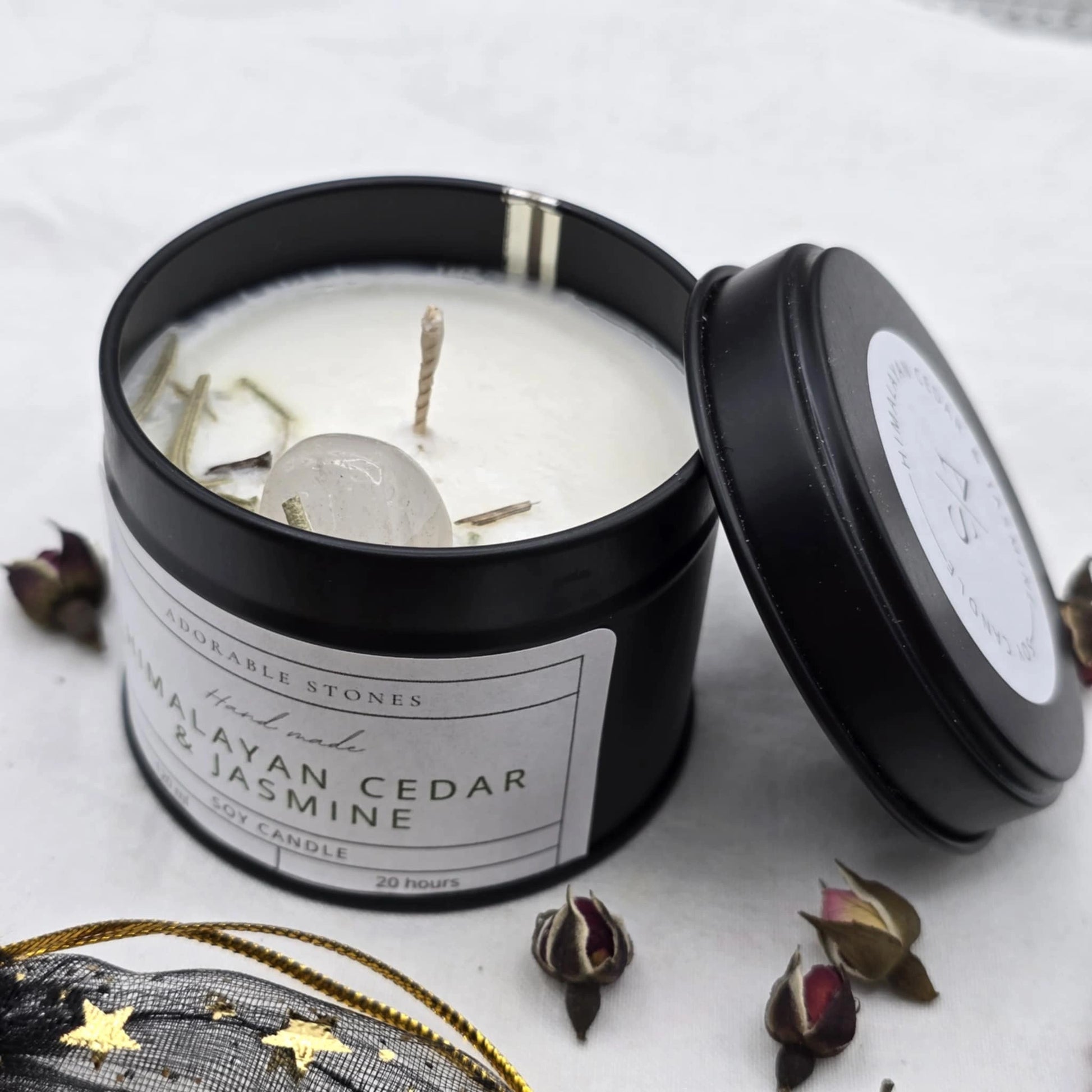 Naše sveče so narejene iz 100 % naravnega sojinega voska, ki gori dlje in čisteje kot parafinski vosek. So brez toksinov in zagotavljajo nežen, dolgotrajen vonj, ki podpira energijo posamezne škatlice.
