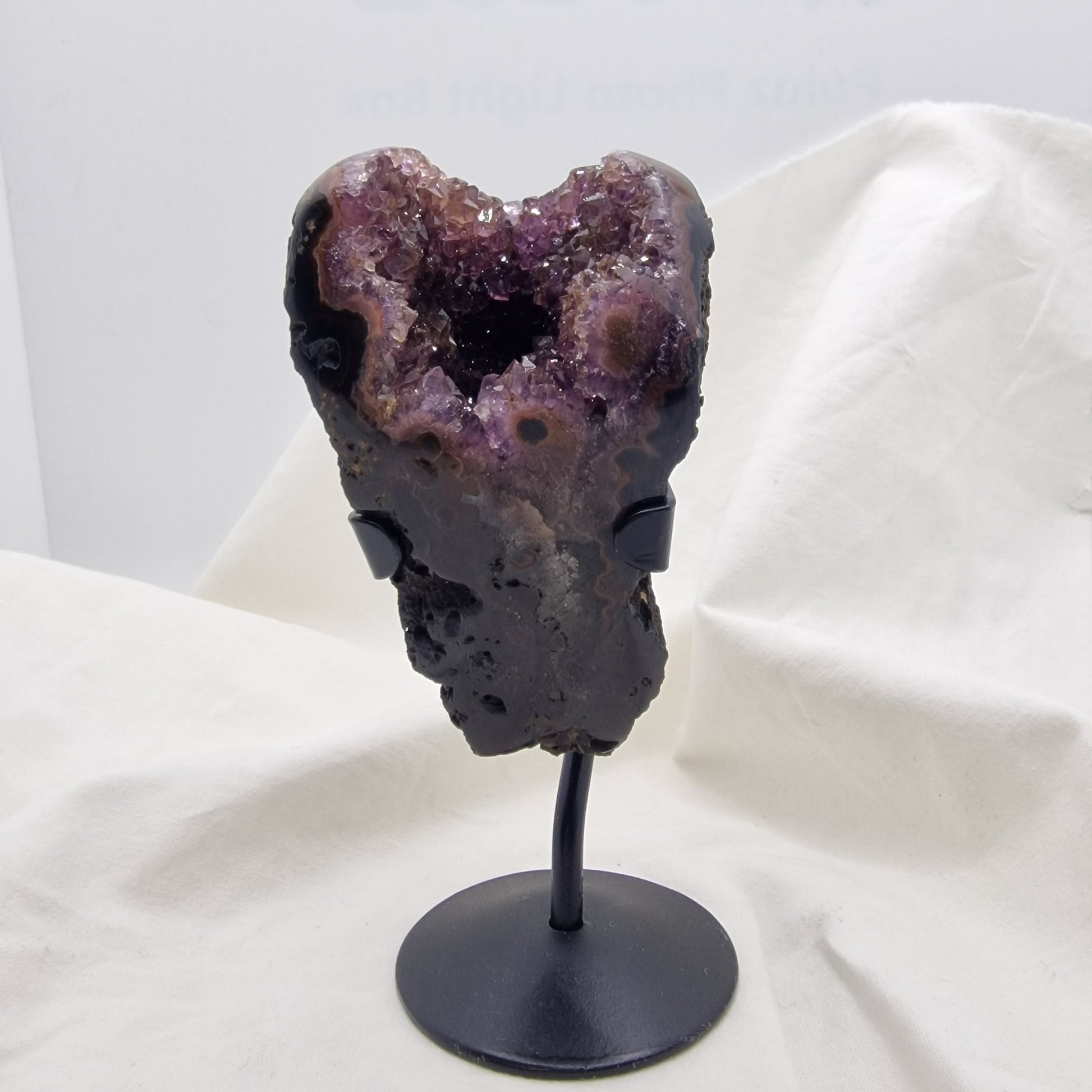Ahat Druzi Z Ametistom - Geoda Na Stojalu (Agate Druzy)