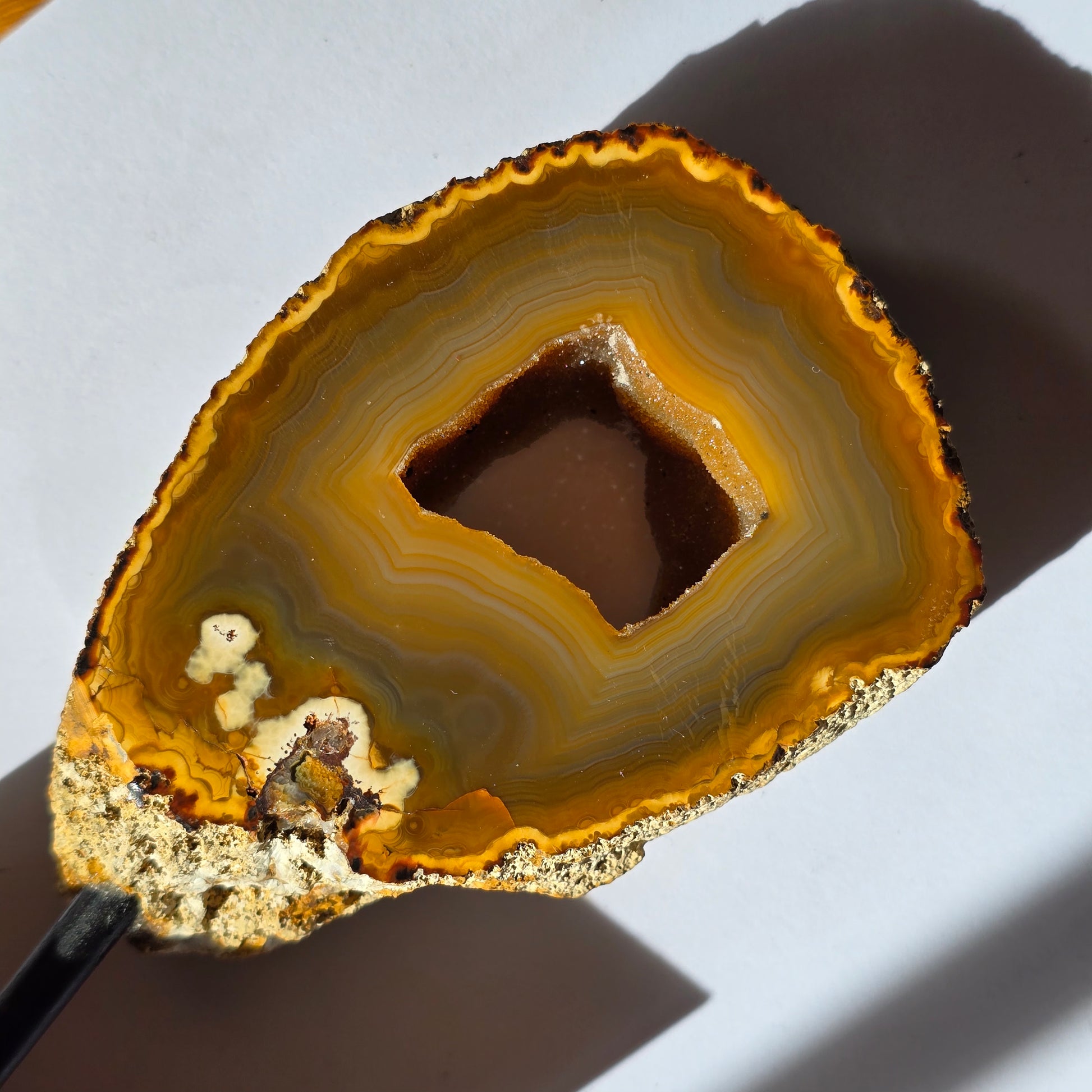 Druzi ahat iz Brazilije je popolna izbira za vse ljubitelje kristalov, energijskega ravnovesja in naravne mineralne dekoracije. S svojo bleščečo kristalno votlino prinaša v prostor harmonijo, eleganco in subtilno, a močno energijsko podporo.
