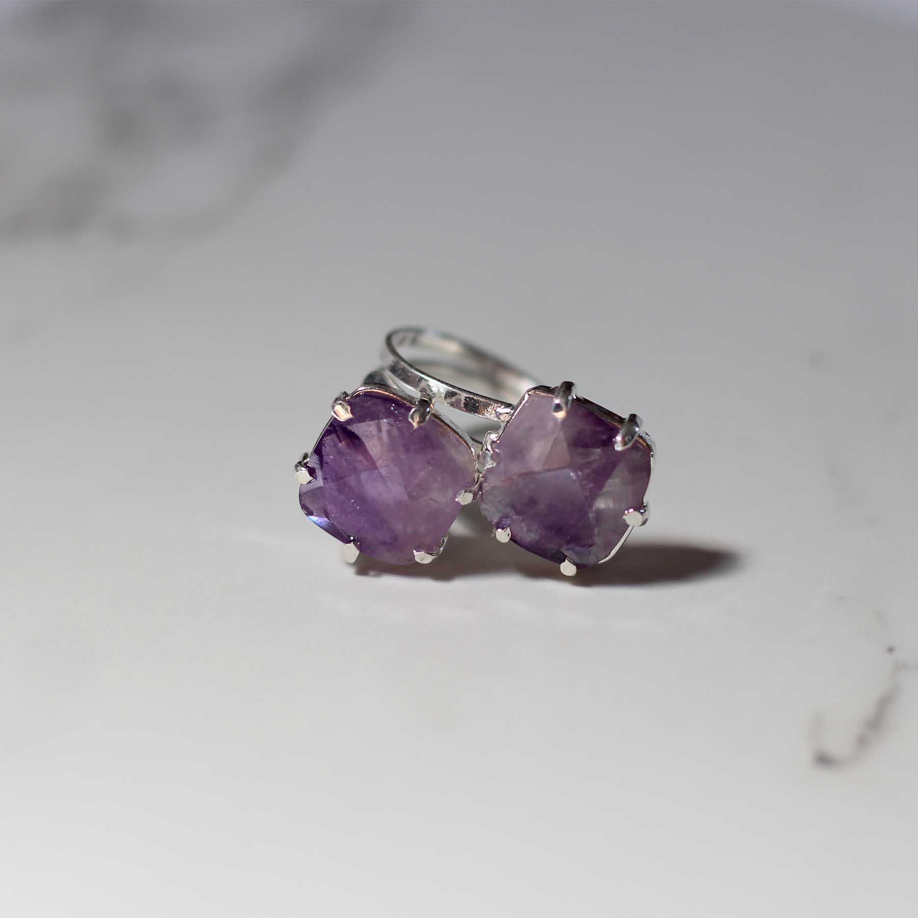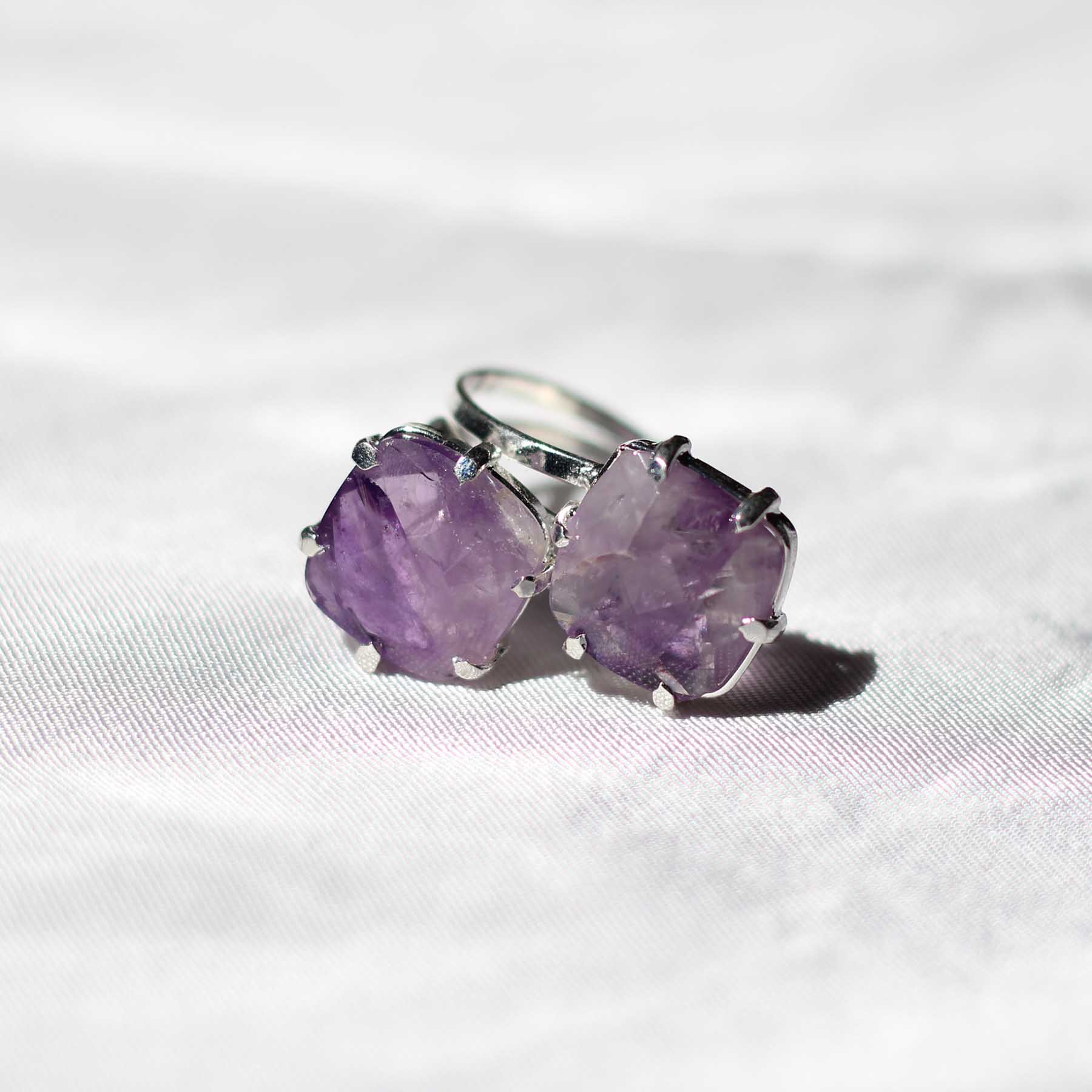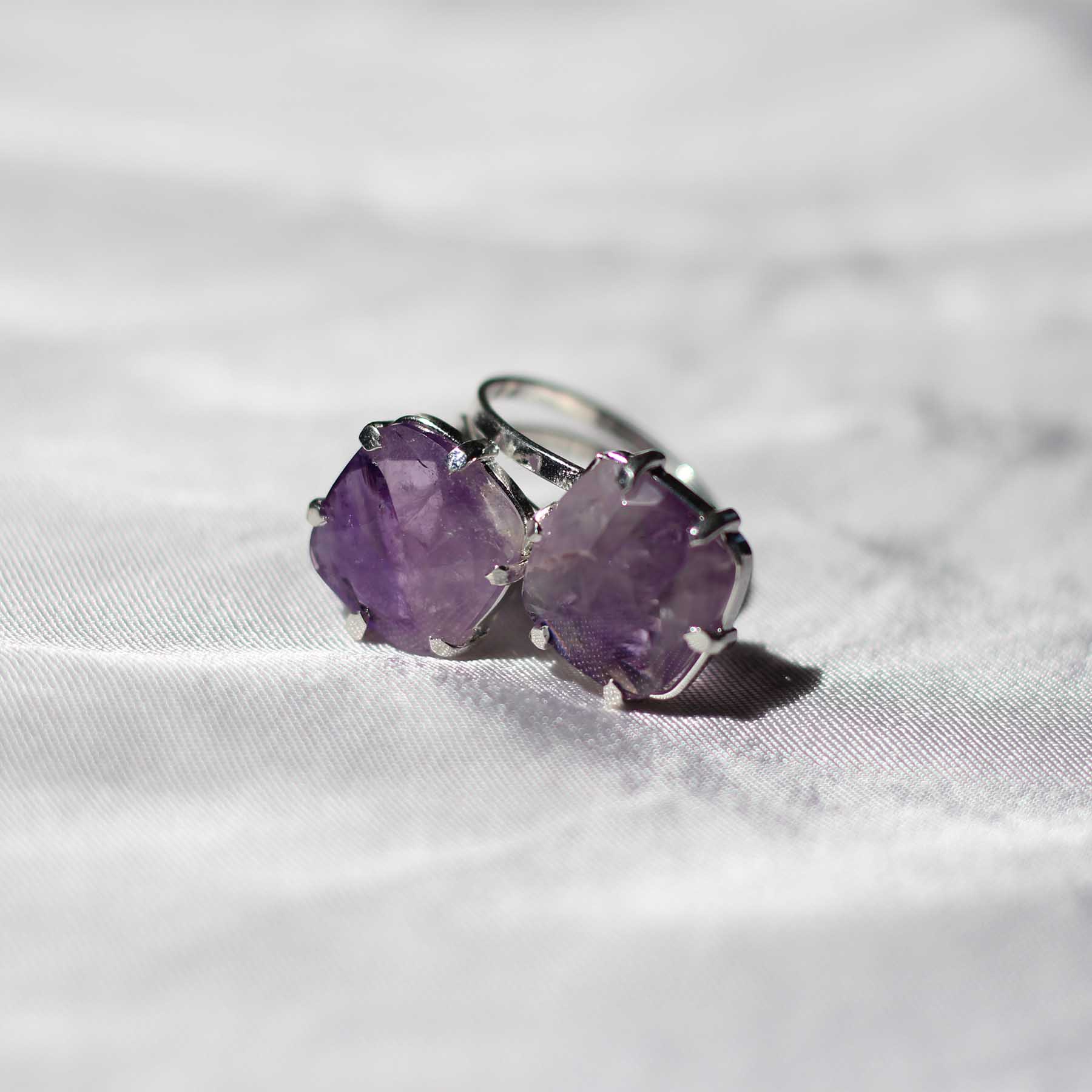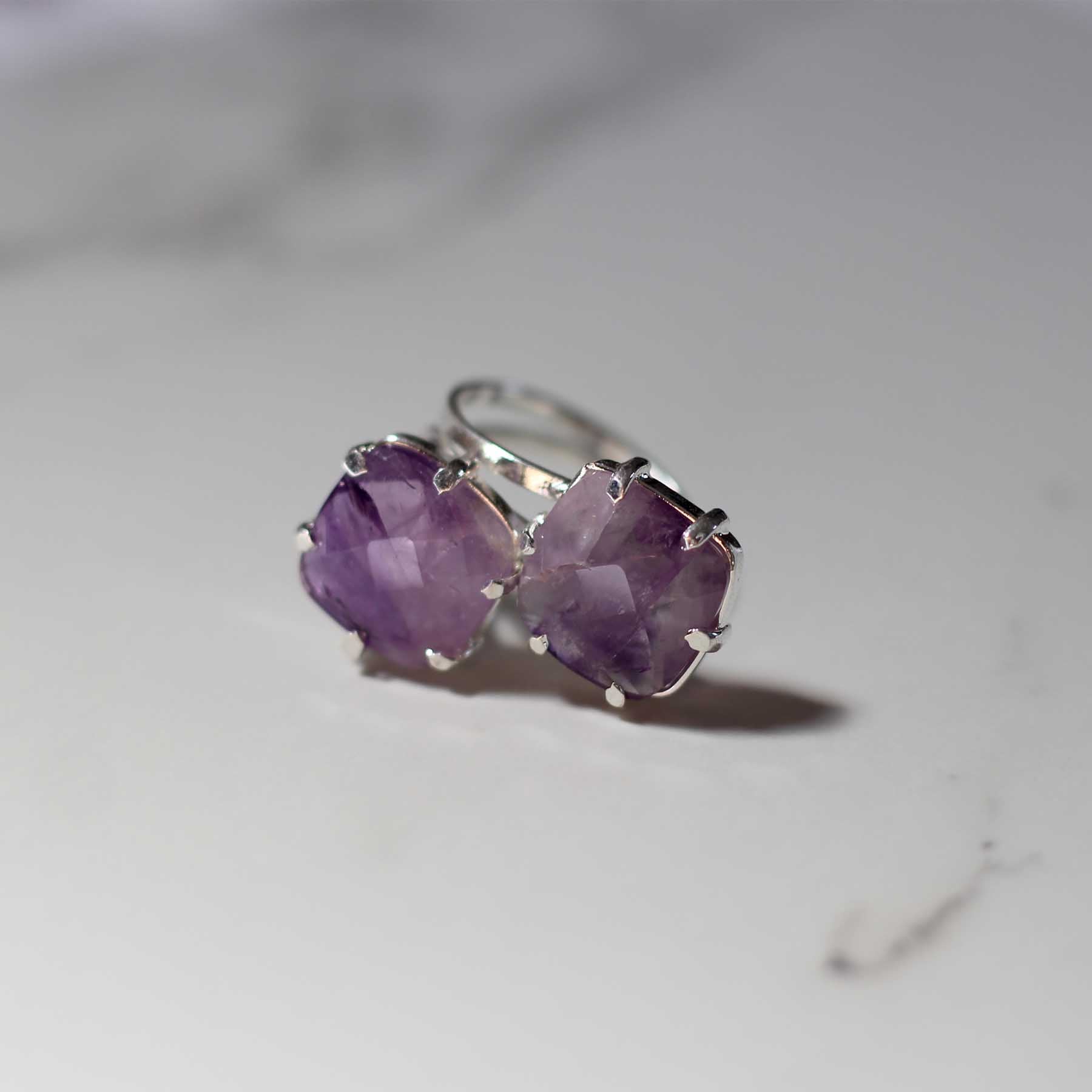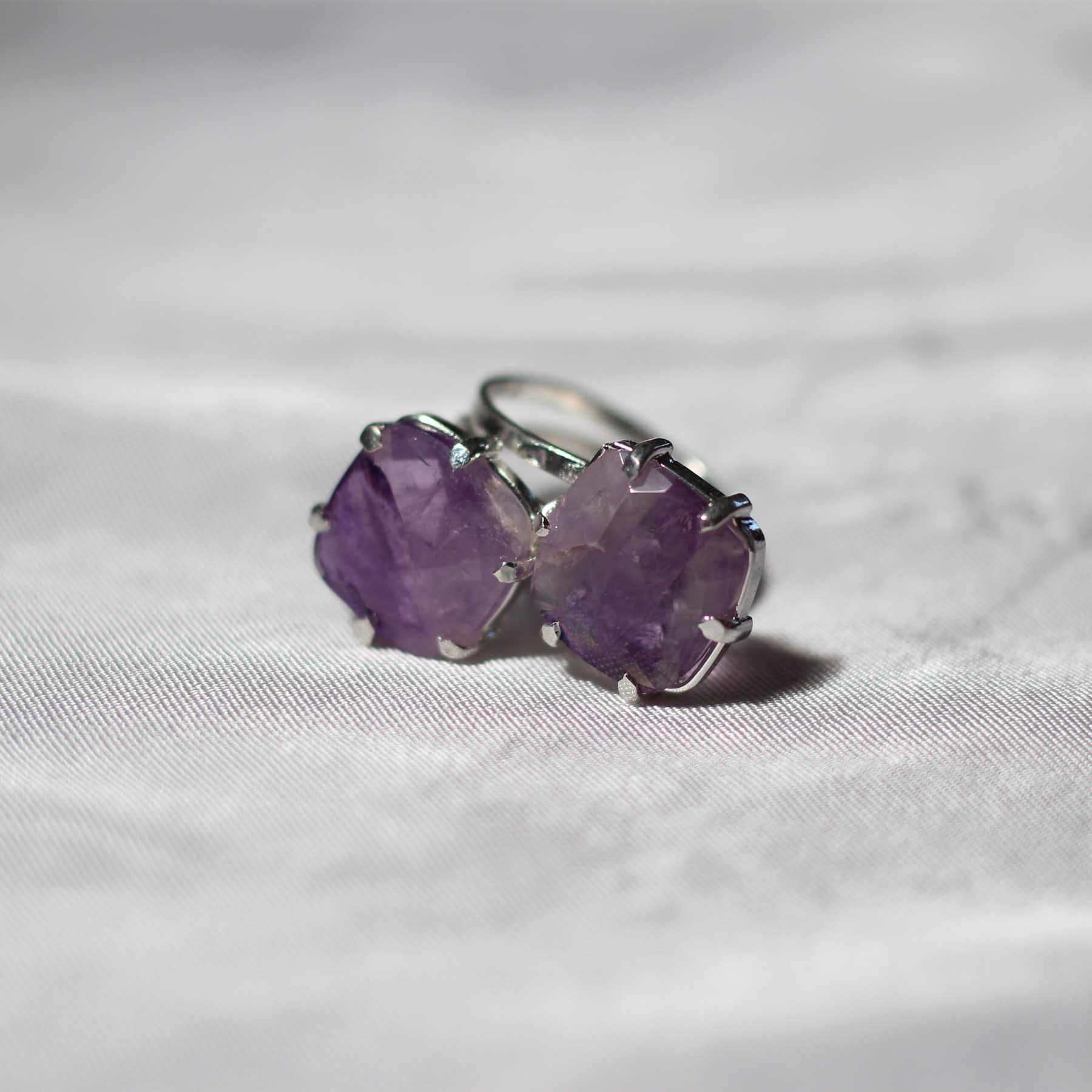 Prepletata se dva očarljiva ametista, ki izžarevata eleganco in umirjenost. Ametist je kristal spokojnosti in preobrazbe. Naj vas njegova pomirjujoča energija preplavi, pomiri um in dvigne duha. Okrasite se z eleganco ametista in povabite njegovo mistično privlačnost v svoje življenje.