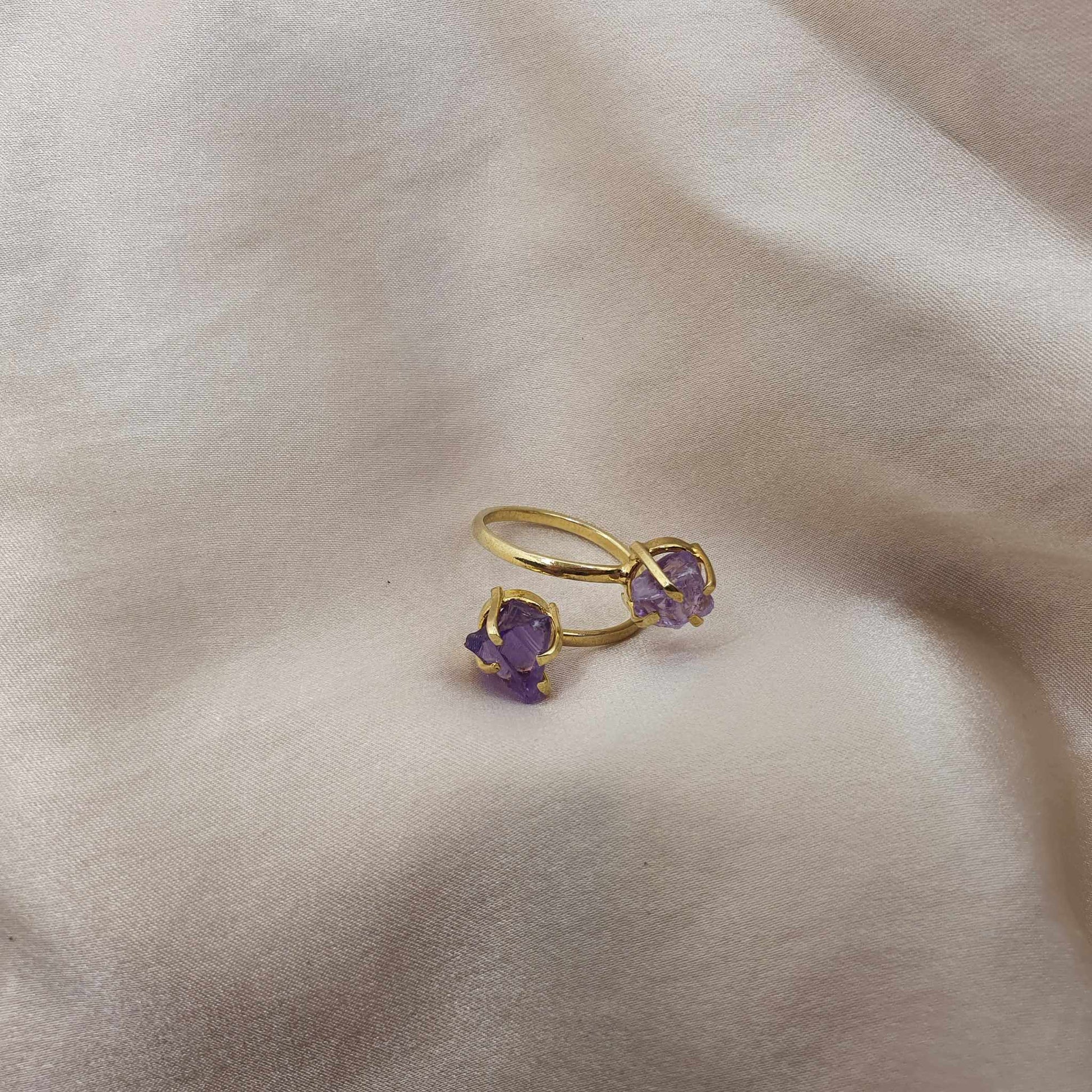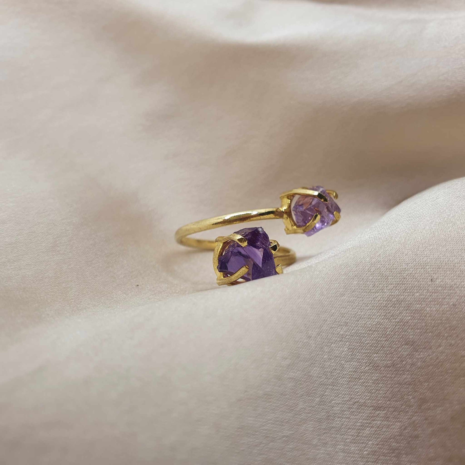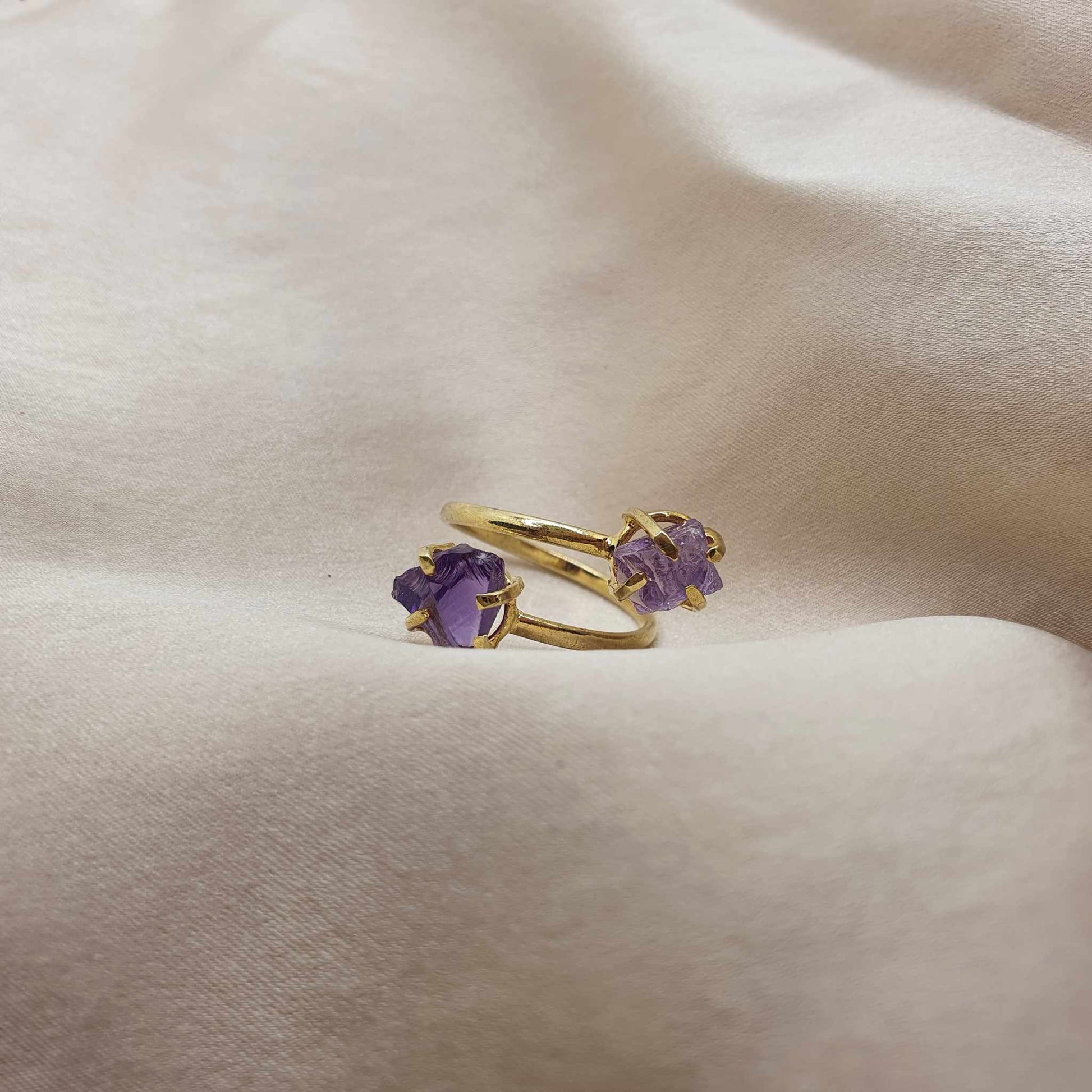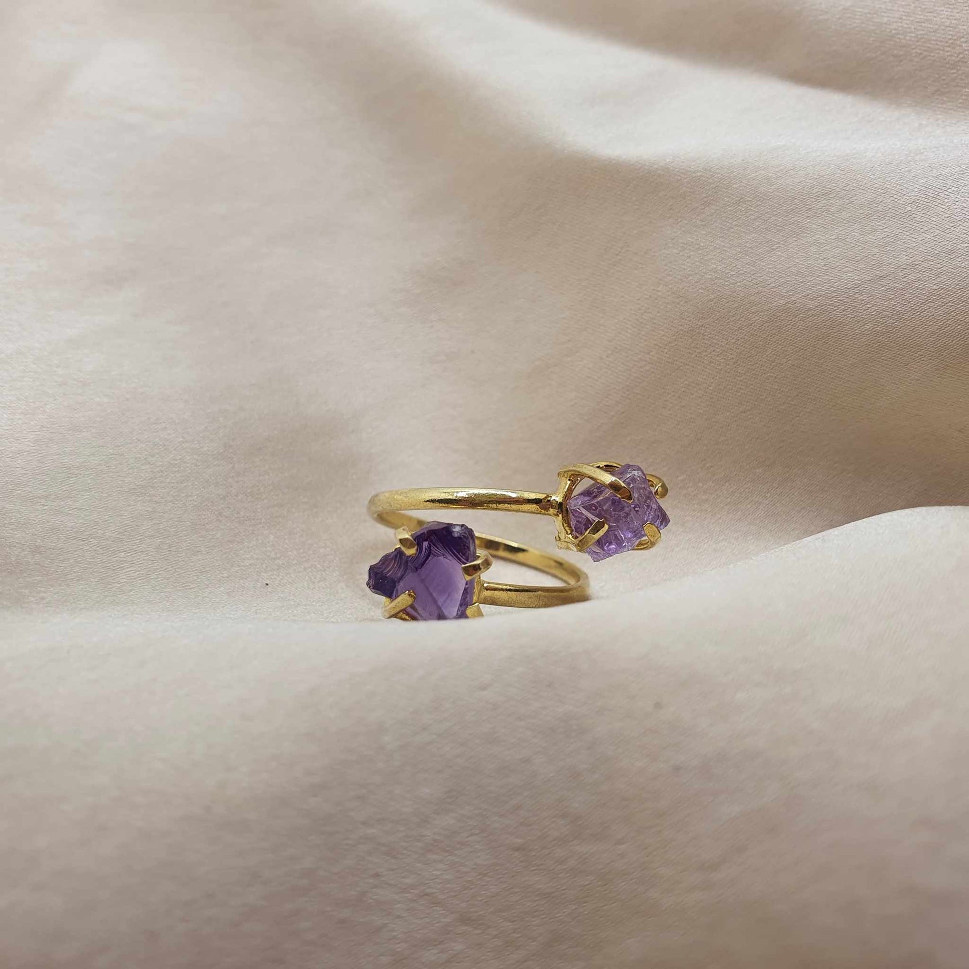 Ametist Kristal Duo Neobdelan - Prstan (Amethyst)