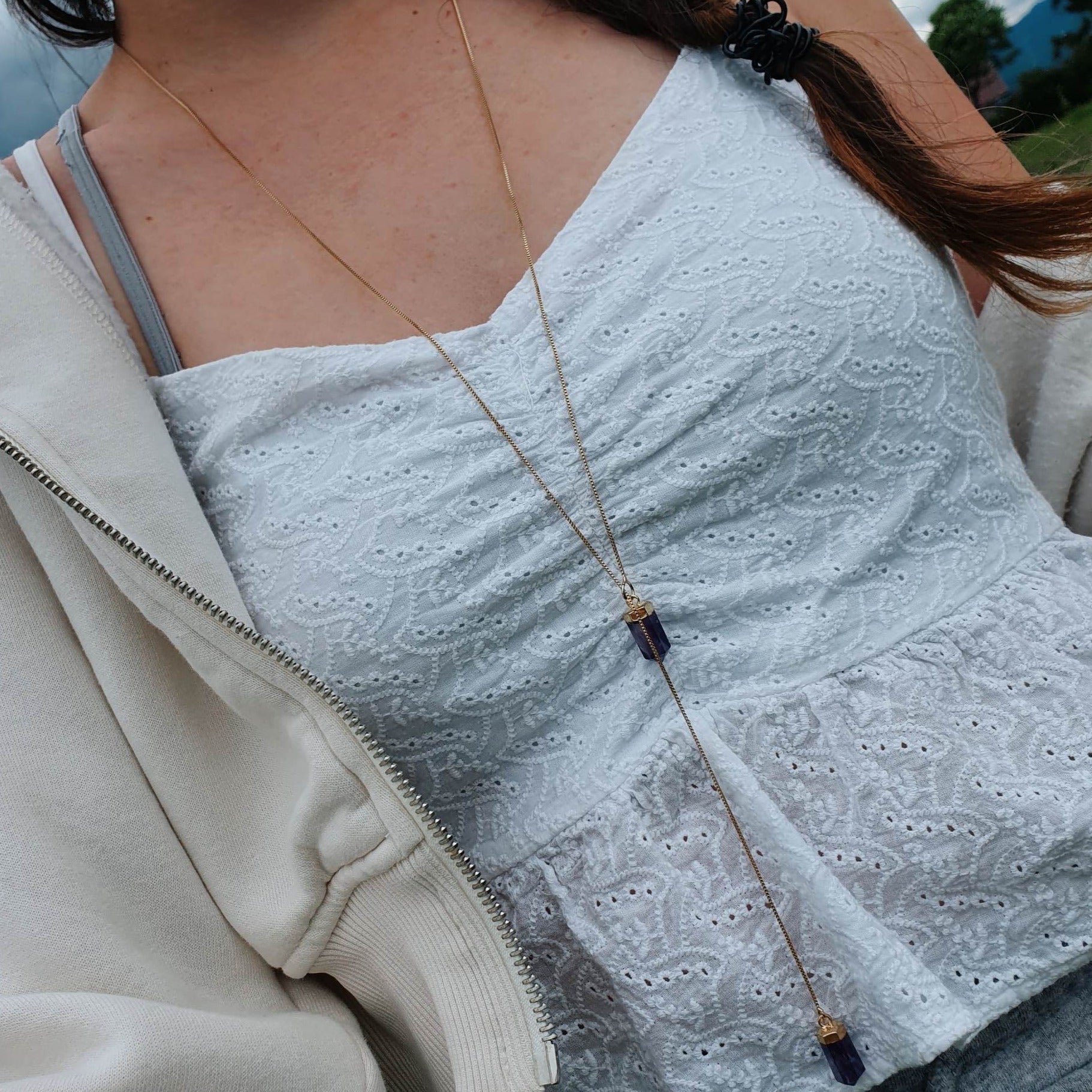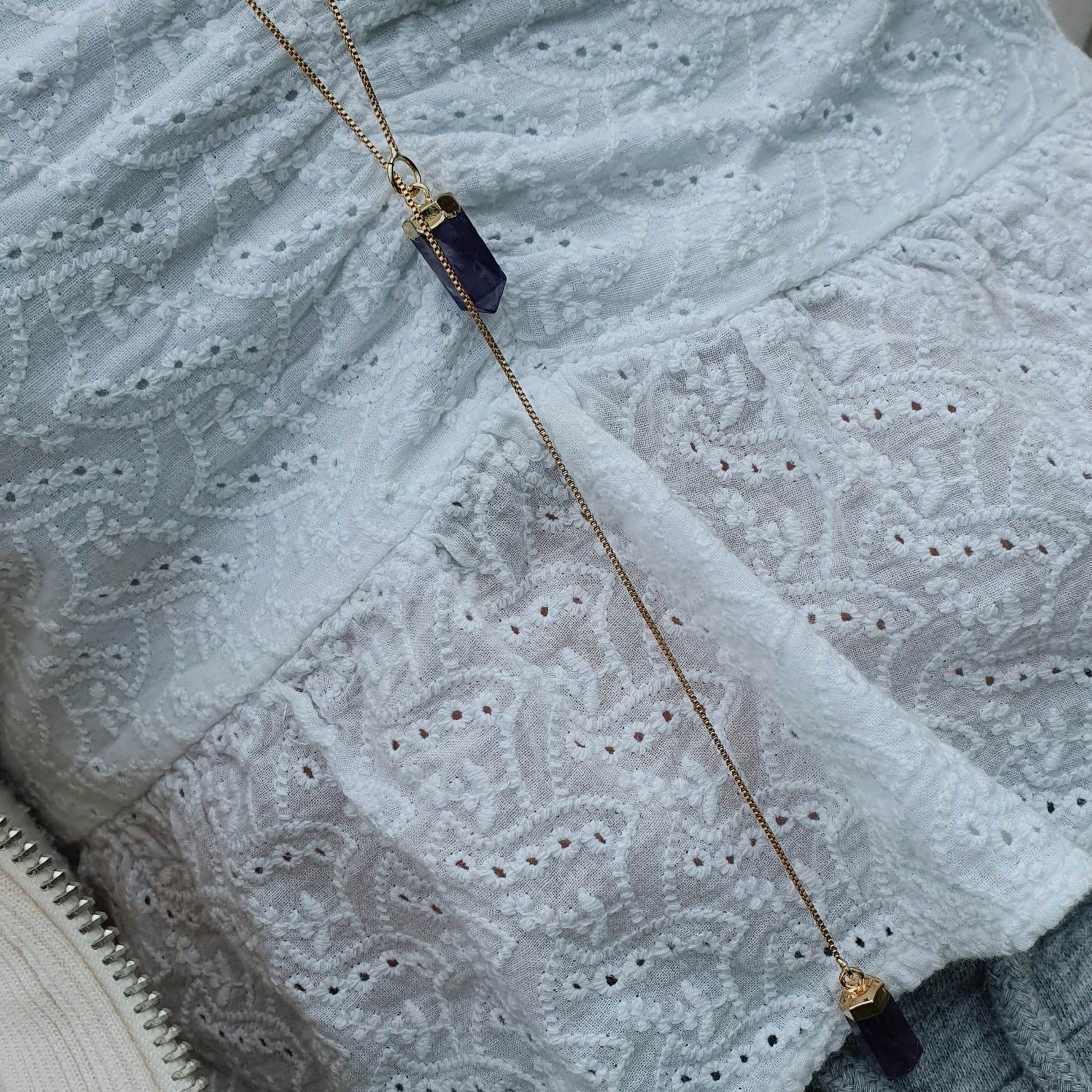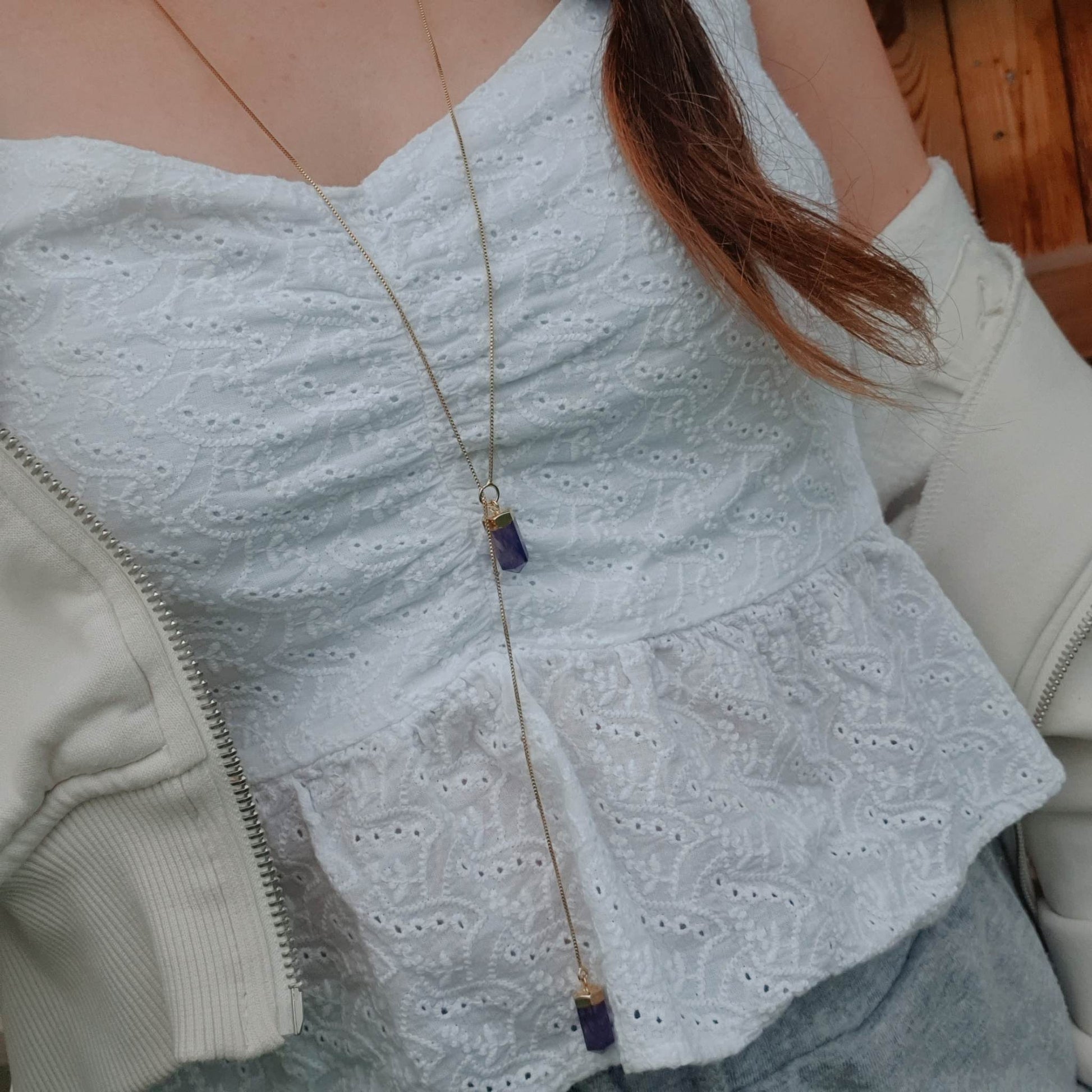 Ametist je simbol miru in duhovnosti, zato vam bo ta verižica pomagala ohranjati notranjo harmonijo in pozitivno energijo. Odkrijte čarobnost ametista na svojem vratu z našo čudovito verižico.