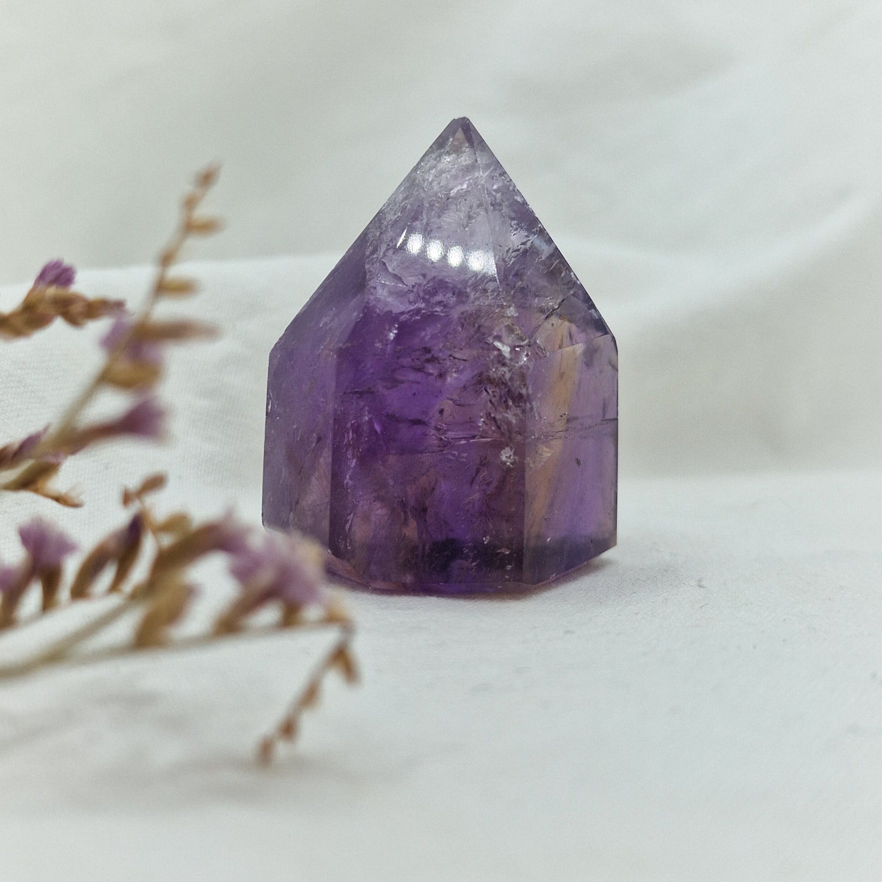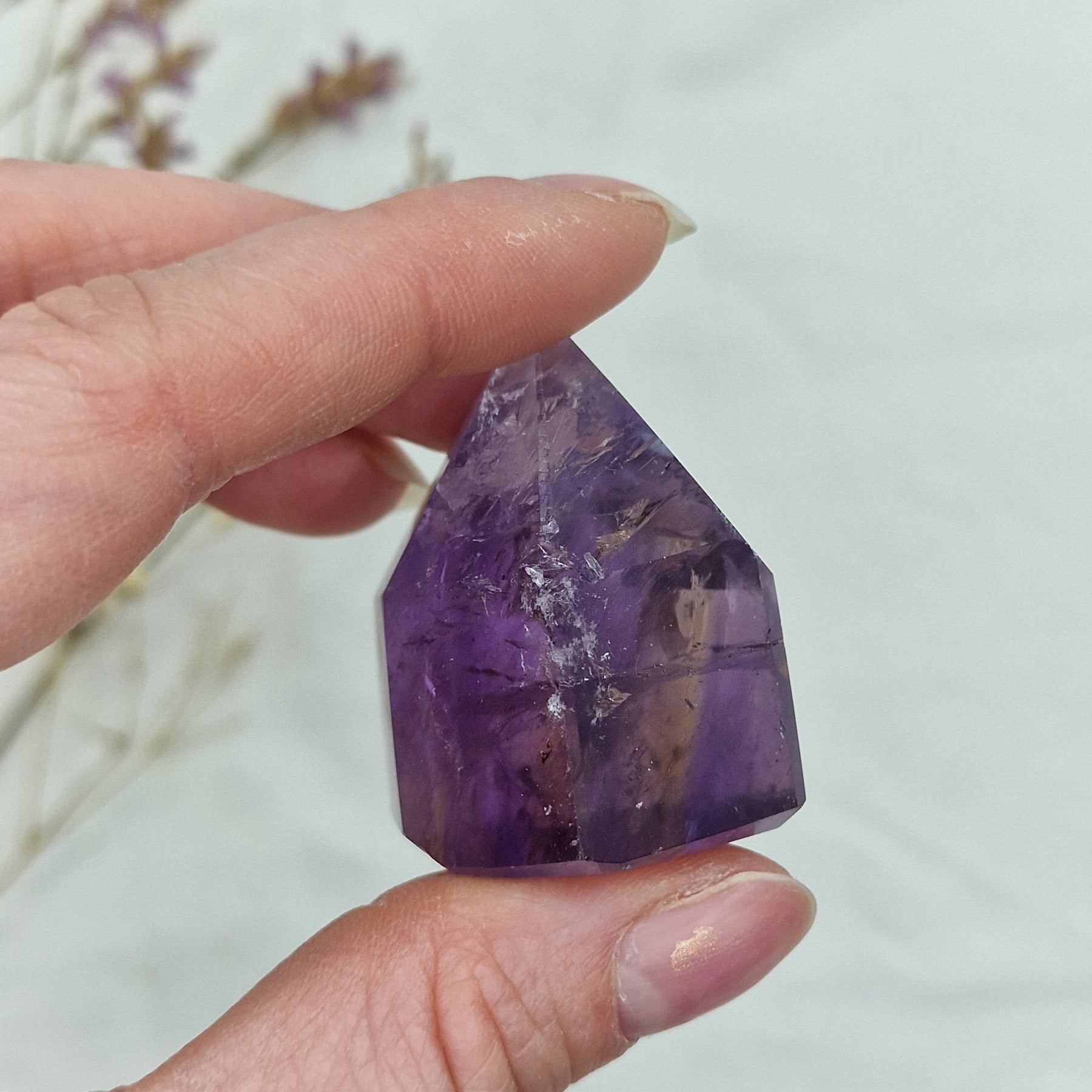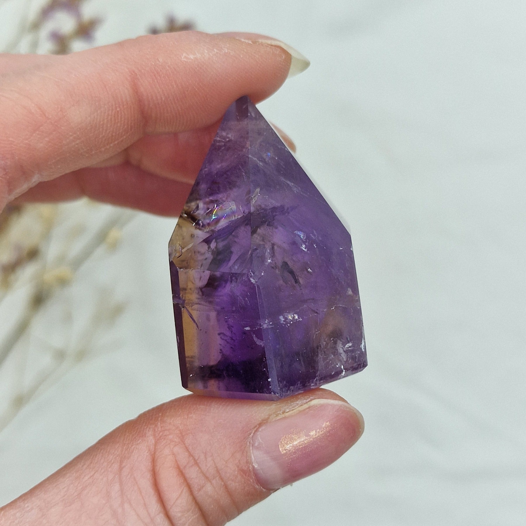 Mali ametrin z veliko citrina je očarljiv kristal, ki prevladuje z bogatimi zlatimi in rumenimi odtenki citrina, dopolnjen z nežnimi vijoličnimi poudarki ametista.