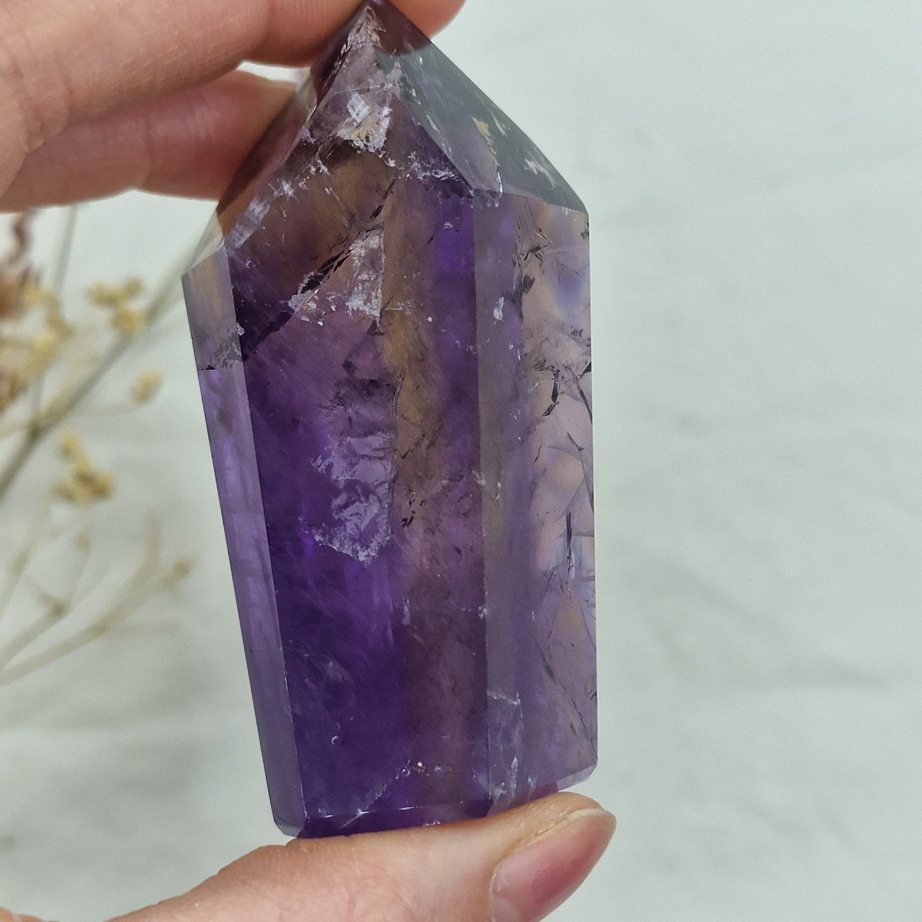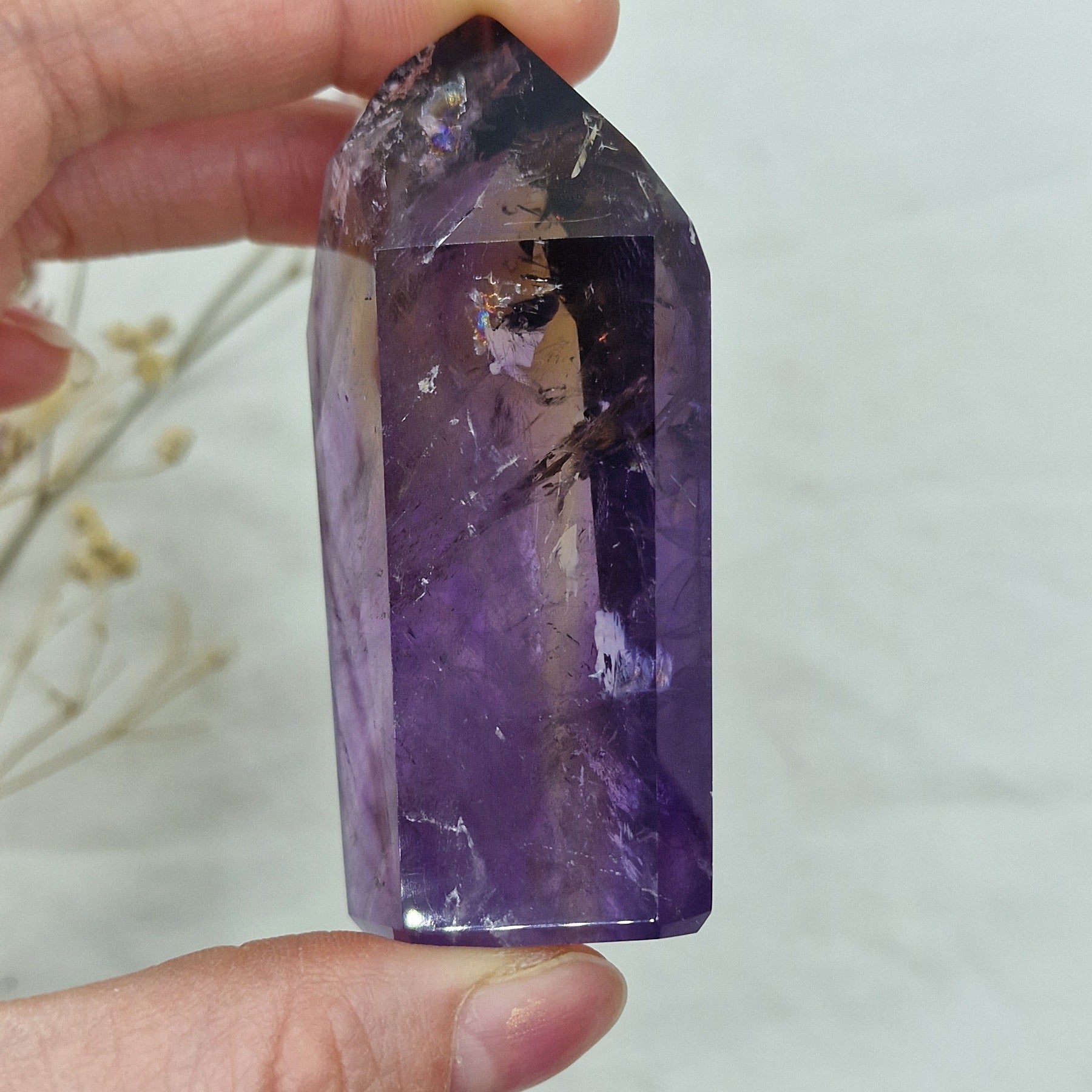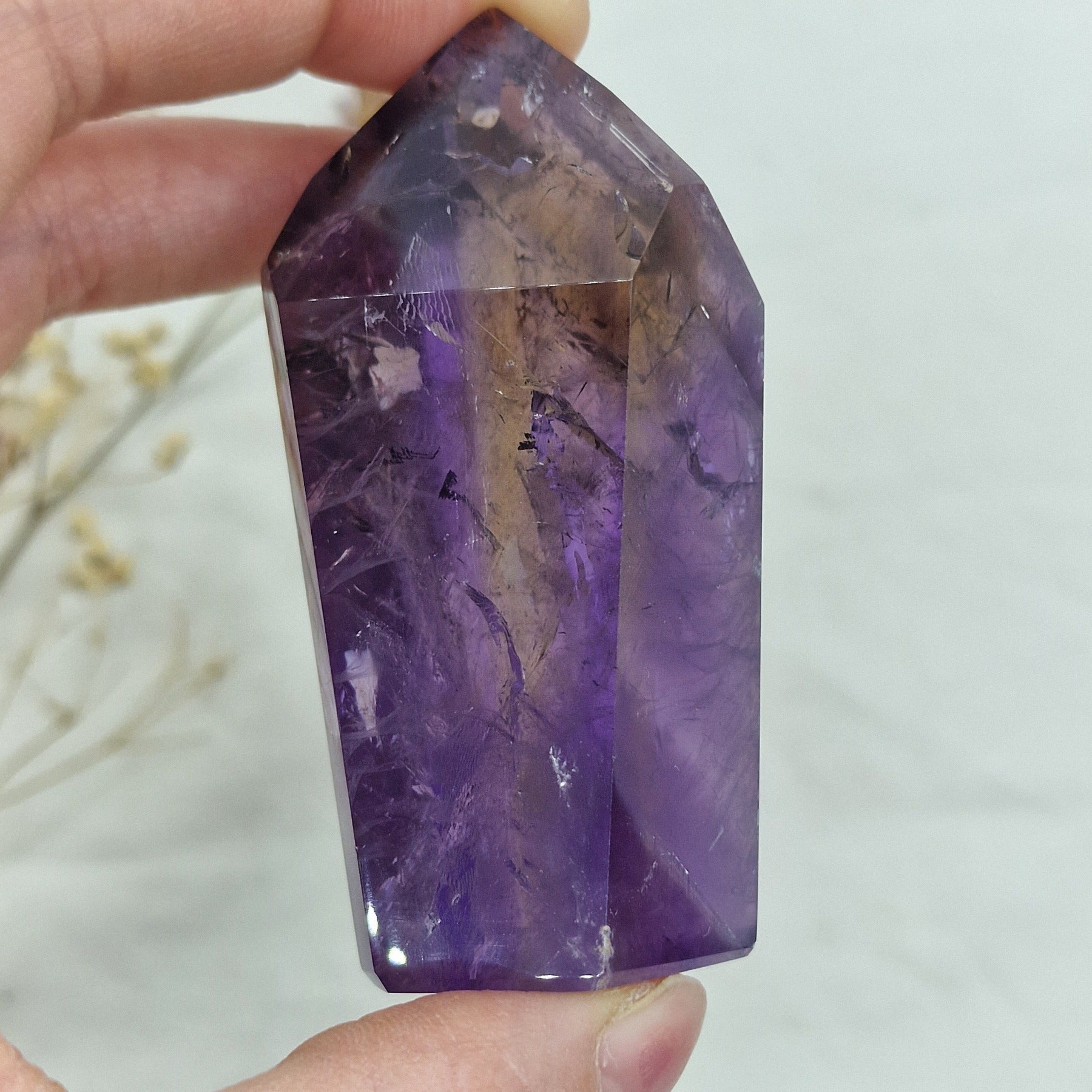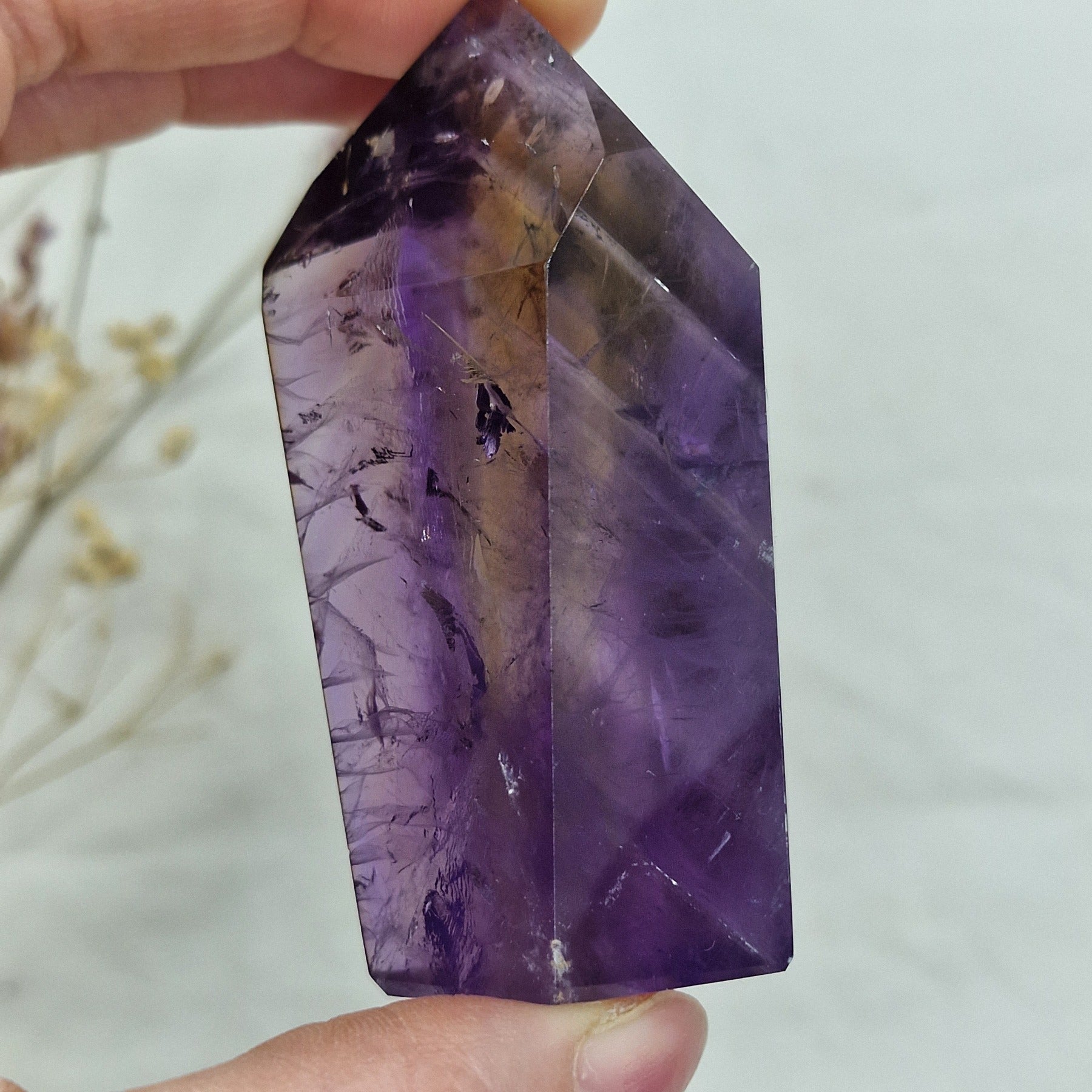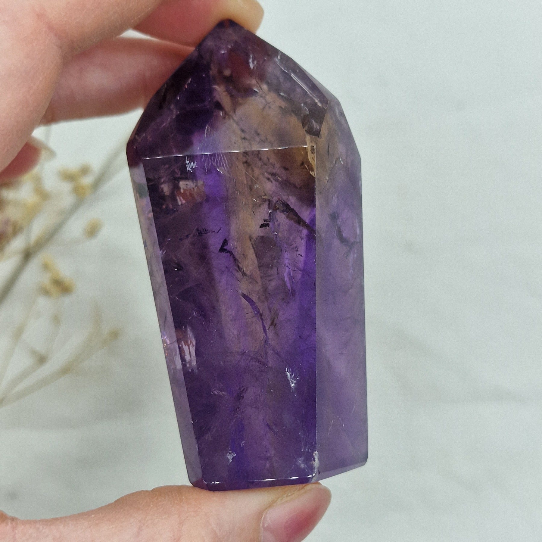 Ametrin z veliko citrina in fantomi je redek in privlačen kristal, ki združuje bogate zlate tone citrina s prosojnimi fantomskimi plastmi. Idealno za zbiratelje, ljubitelje kristalov in tiste, ki iščejo energijsko močne kristale