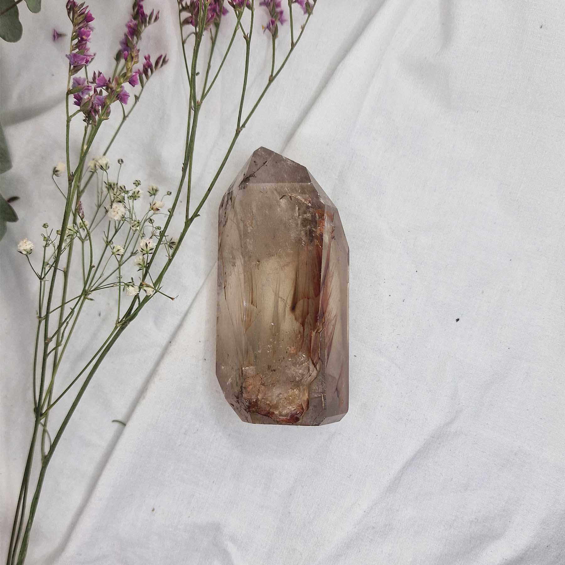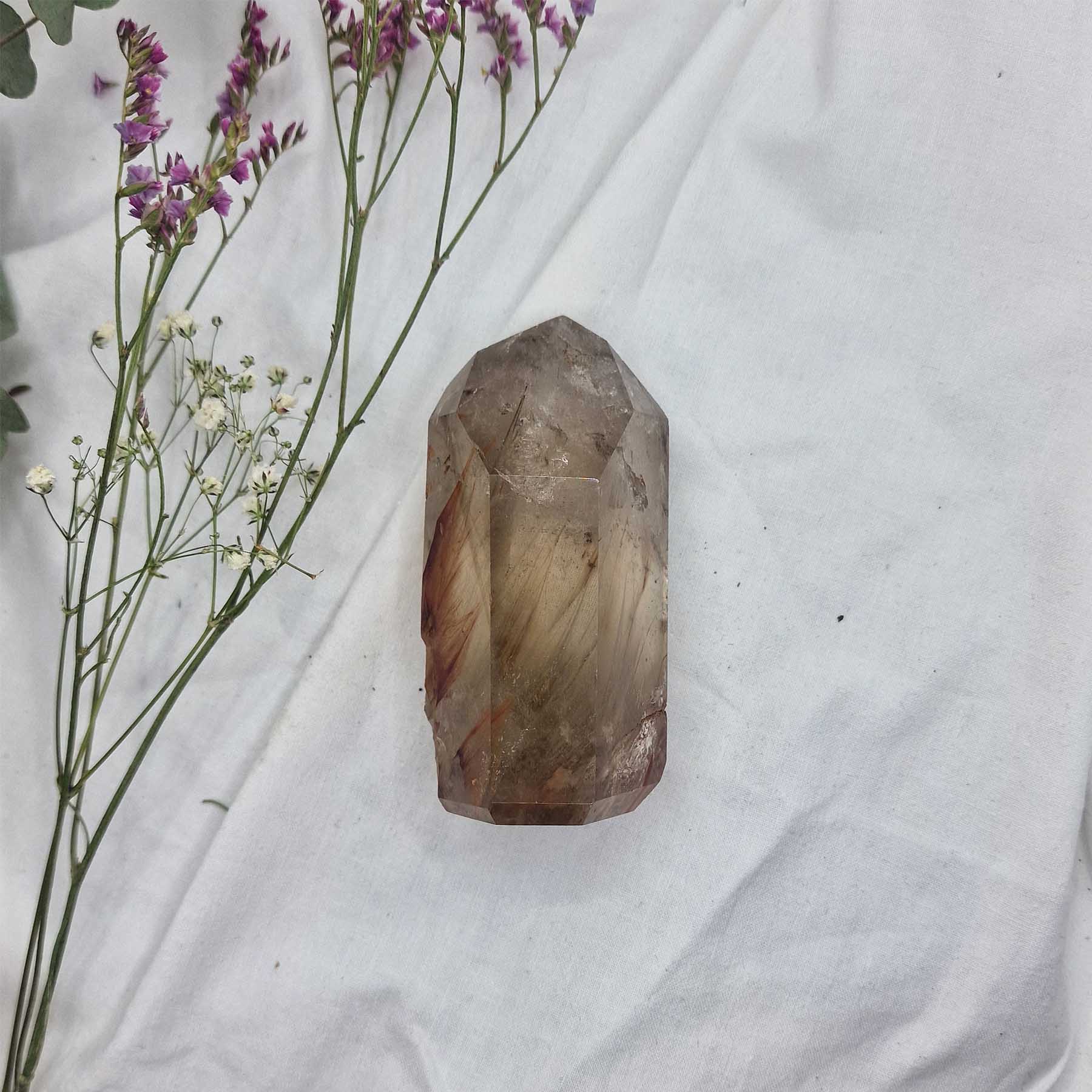 Kot že ime pove, ta dragi kamen privlači moč angelov. Ti kristali nastanejo, ko se rast kristala prekine, nato pa ta kasneje nadaljuje svojo rast. Lahko vam pomaga rešiti nerešena vprašanja vaše preteklosti in izboljšati vaše sedanje življenje. Prav tako lahko osvobodi vaše misli krivde, negativnosti in obtoževanja preteklosti ter vam pomaga napredovati.