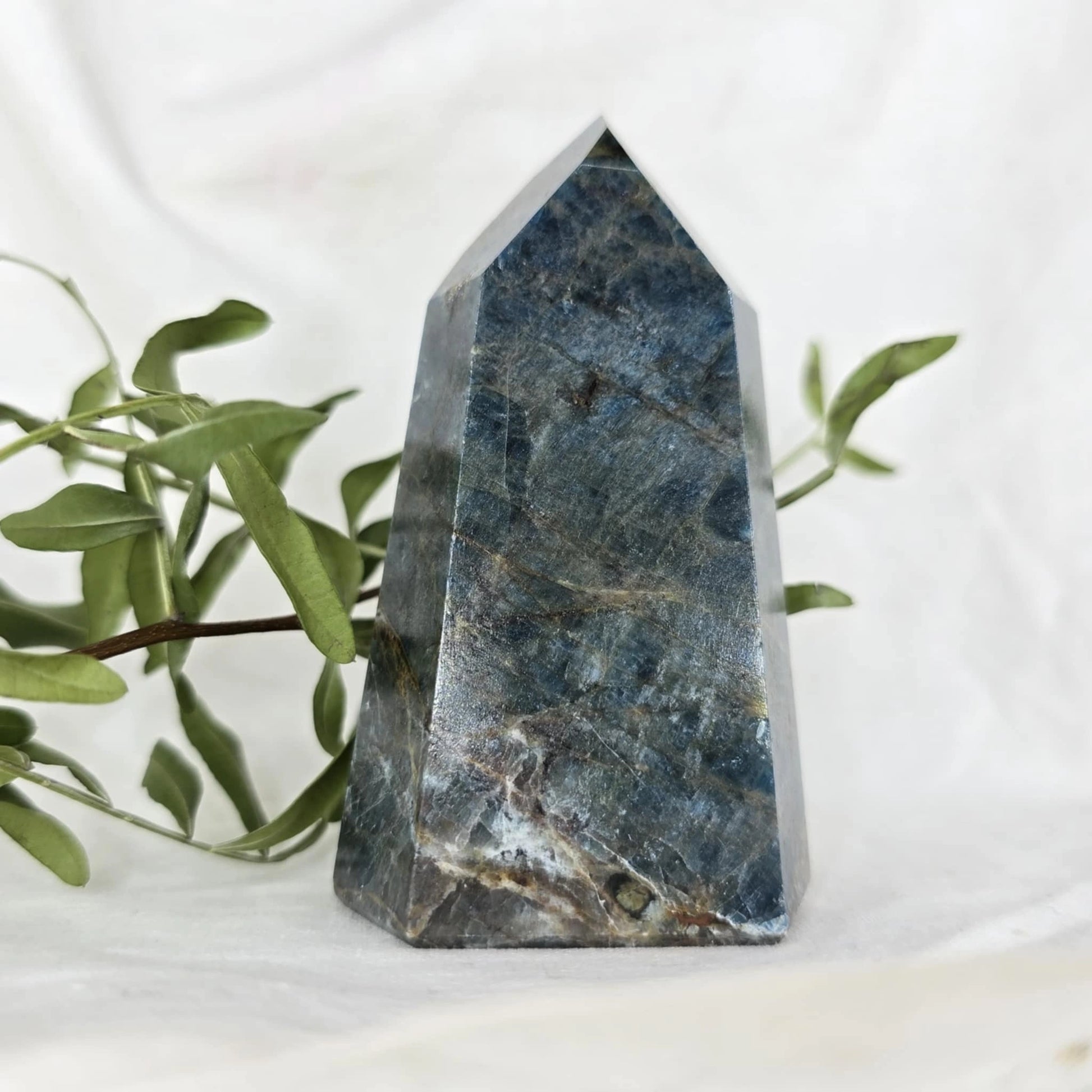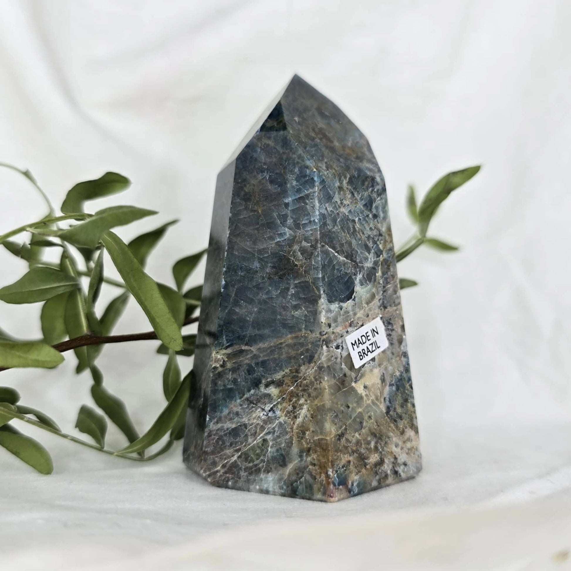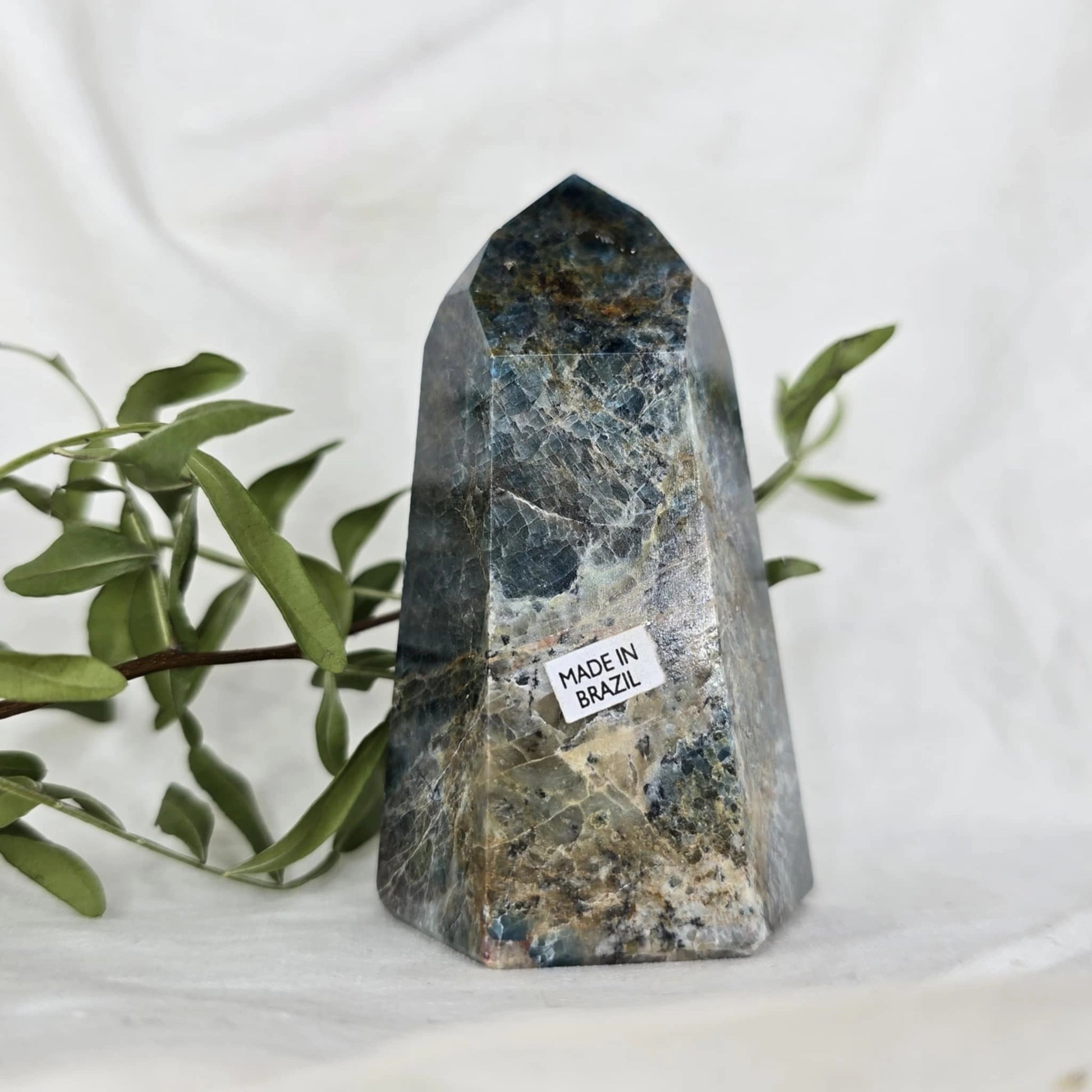 Apatit pogosto vsebuje naravne razpoke znotraj večjih kosov, iz katerih se nato izrežejo različne oblike, kot je špica. Te razpoke so posledica krhkosti apatita in se običajno odkrijejo šele med rezanjem. Pomembno je, da te razpoke niso poškodbe, ki bi nastale kasneje, temveč so del naravne strukture kristala, kar pomeni, da so popolnoma naravne in ne vplivajo na kakovost ali energijo kristala. Razpoke so le del njegove edinstvene lepote in naravne formacije.