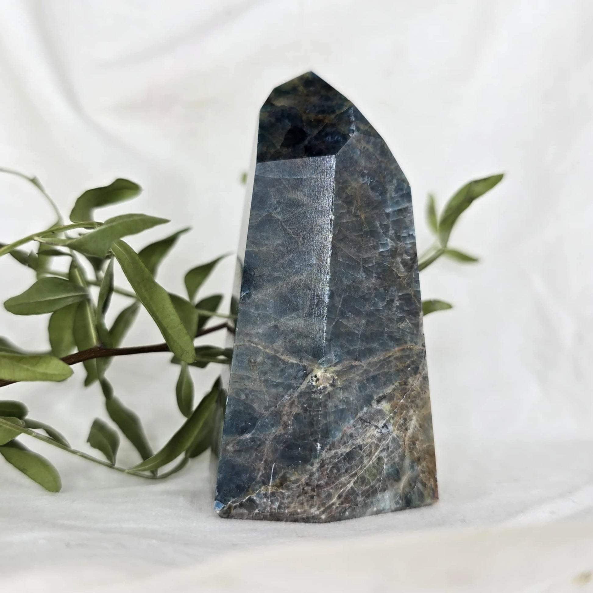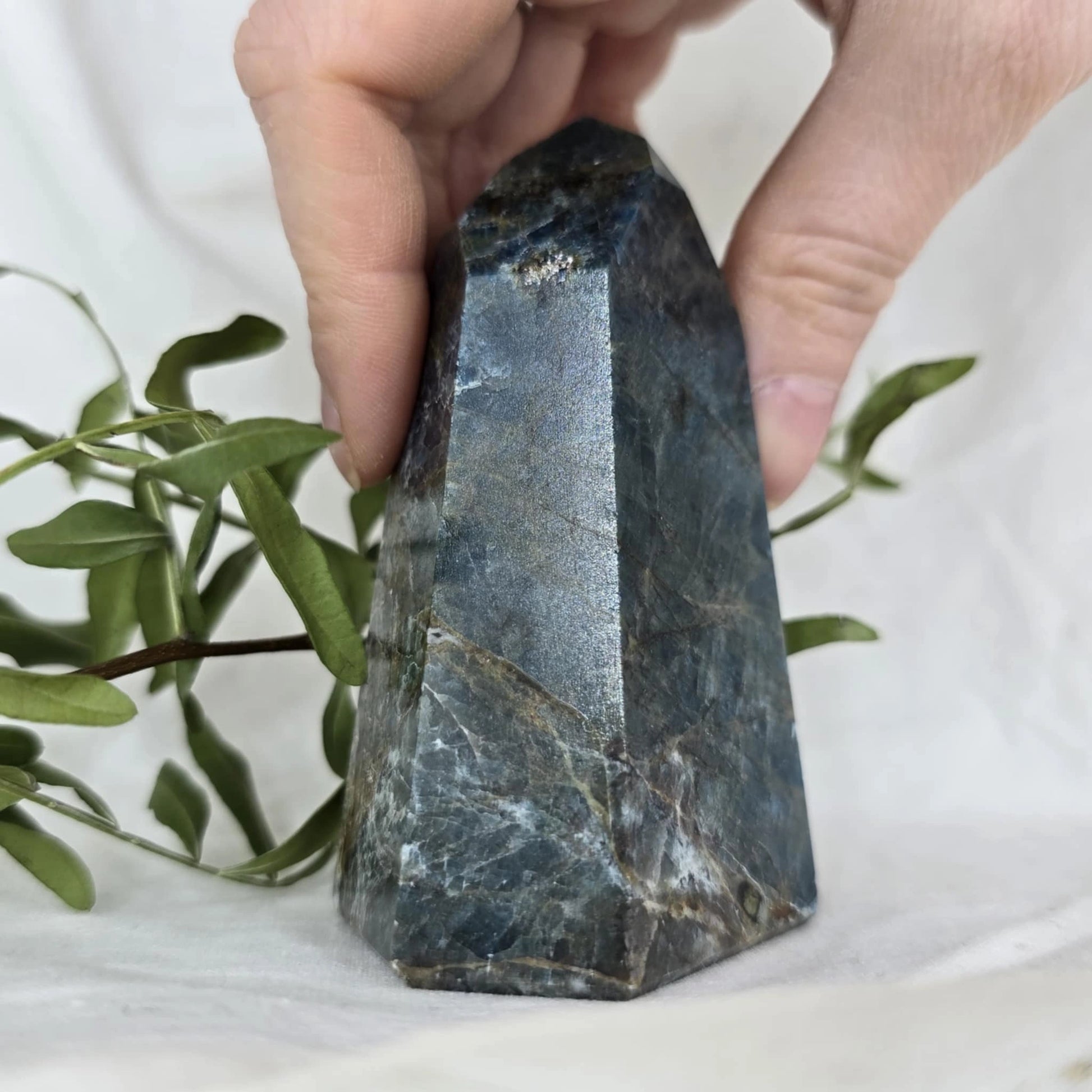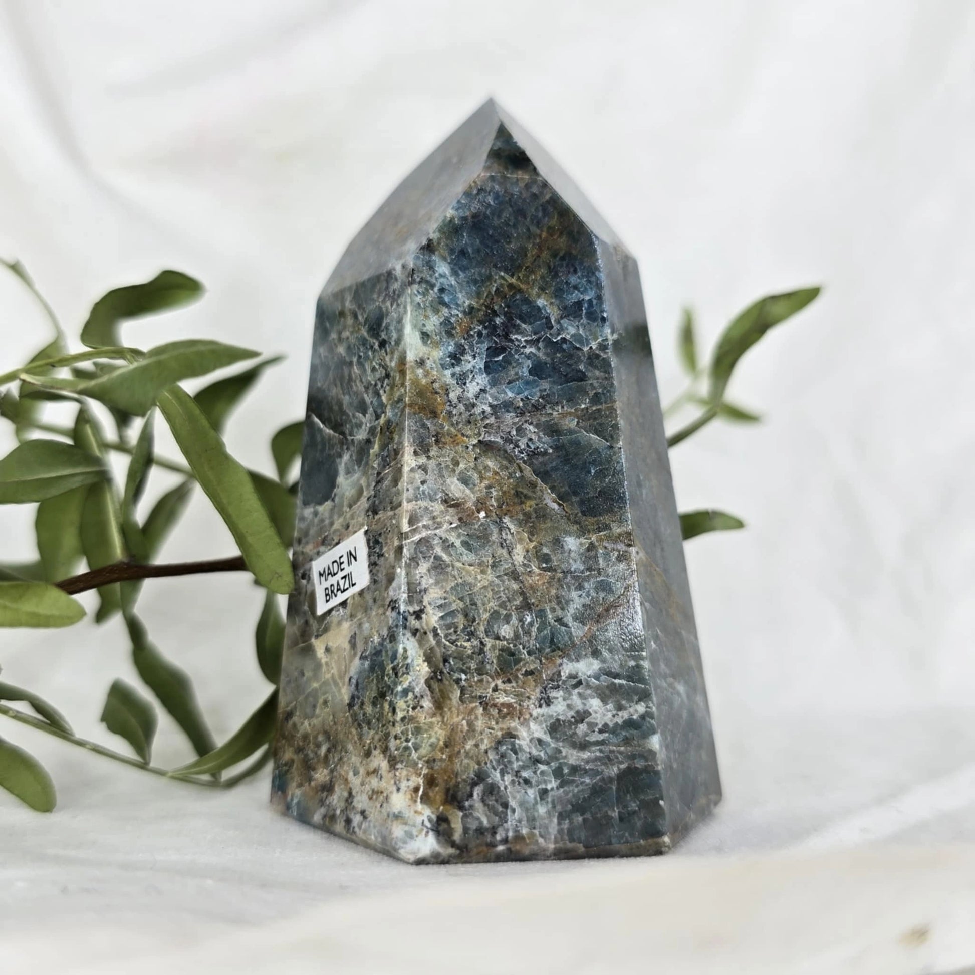 Apatit pogosto vsebuje naravne razpoke znotraj večjih kosov, iz katerih se nato izrežejo različne oblike, kot je špica. Te razpoke so posledica krhkosti apatita in se običajno odkrijejo šele med rezanjem. Pomembno je, da te razpoke niso poškodbe, ki bi nastale kasneje, temveč so del naravne strukture kristala, kar pomeni, da so popolnoma naravne in ne vplivajo na kakovost ali energijo kristala. Razpoke so le del njegove edinstvene lepote in naravne formacije.