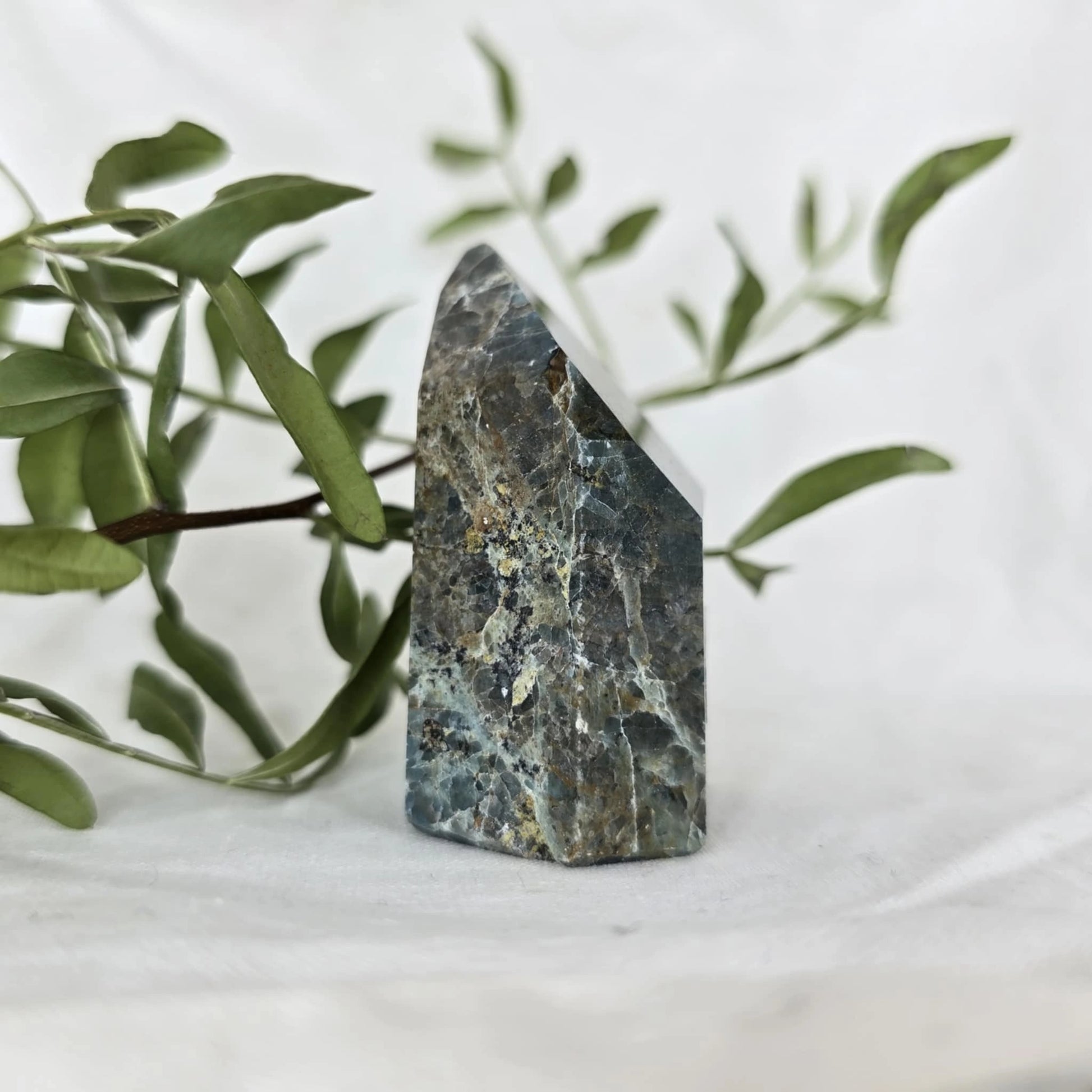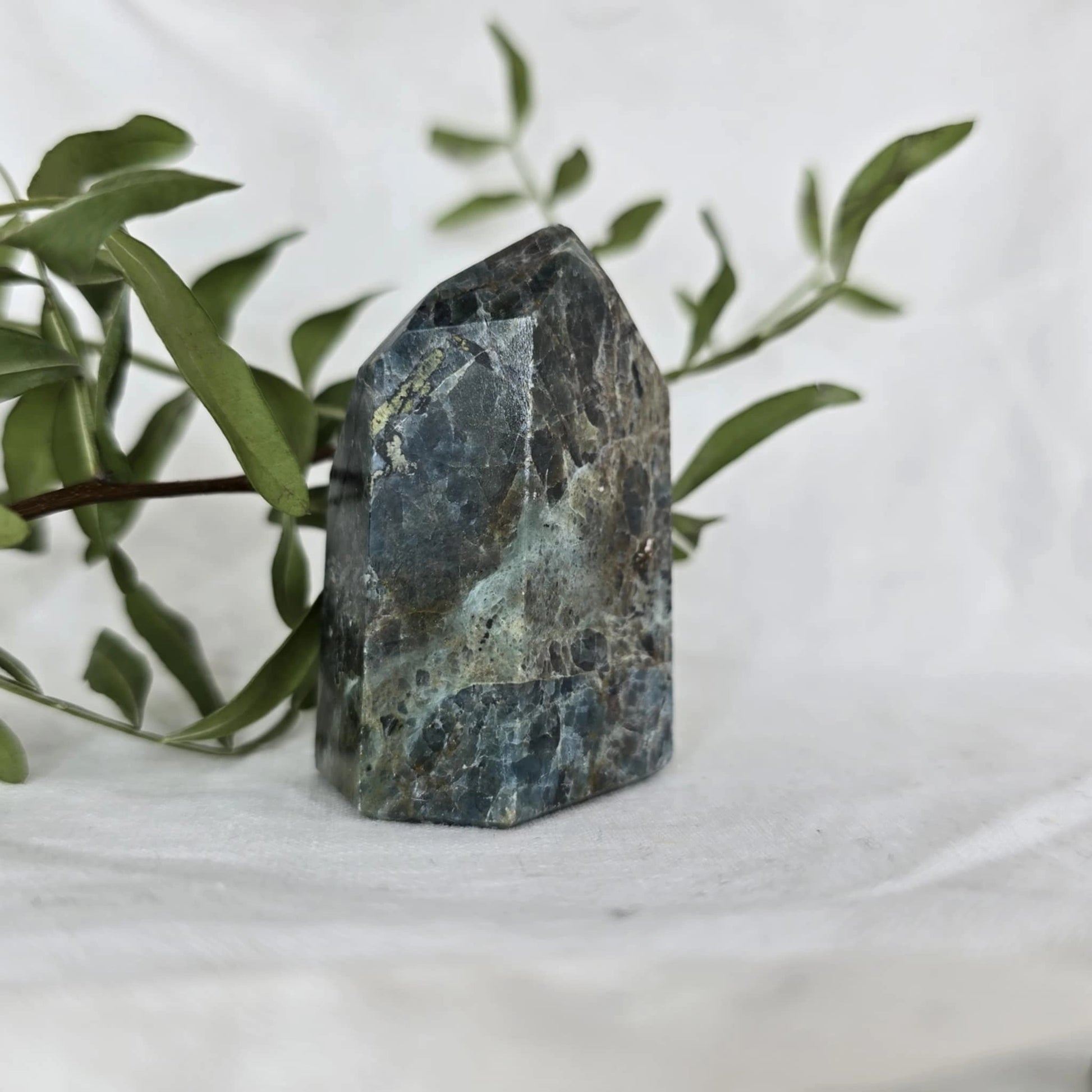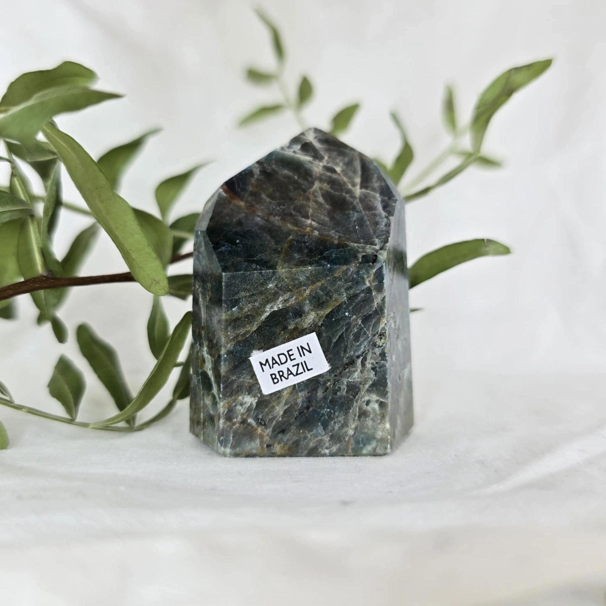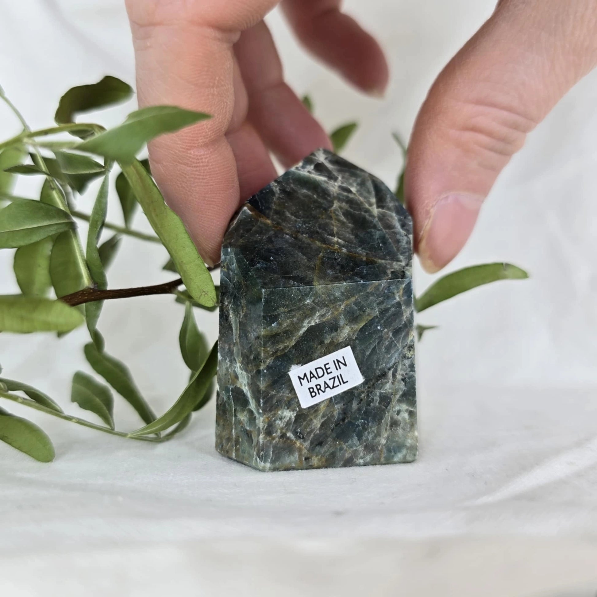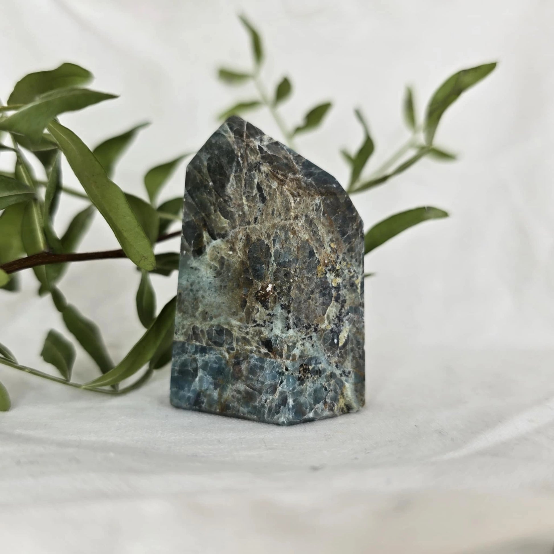 Apatit pogosto vsebuje naravne razpoke znotraj večjih kosov, iz katerih se nato izrežejo različne oblike, kot je špica. Te razpoke so posledica krhkosti apatita in se običajno odkrijejo šele med rezanjem. Pomembno je, da te razpoke niso poškodbe, ki bi nastale kasneje, temveč so del naravne strukture kristala, kar pomeni, da so popolnoma naravne in ne vplivajo na kakovost ali energijo kristala. Razpoke so le del njegove edinstvene lepote in naravne formacije.