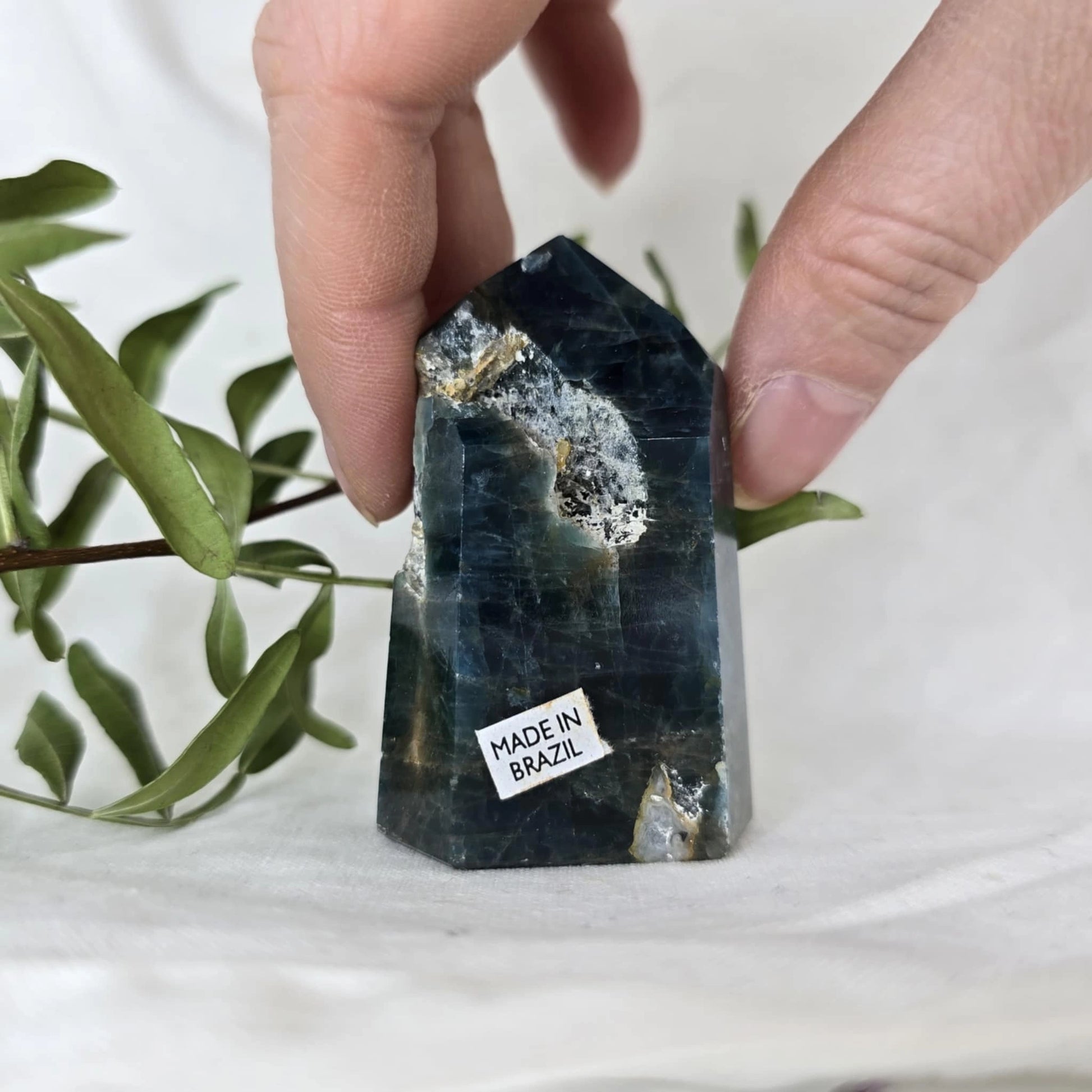 Apatit pogosto vsebuje naravne razpoke znotraj večjih kosov, iz katerih se nato izrežejo različne oblike, kot je špica. Te razpoke so posledica krhkosti apatita in se običajno odkrijejo šele med rezanjem. Pomembno je, da te razpoke niso poškodbe, ki bi nastale kasneje, temveč so del naravne strukture kristala, kar pomeni, da so popolnoma naravne in ne vplivajo na kakovost ali energijo kristala. Razpoke so le del njegove edinstvene lepote in naravne formacije.