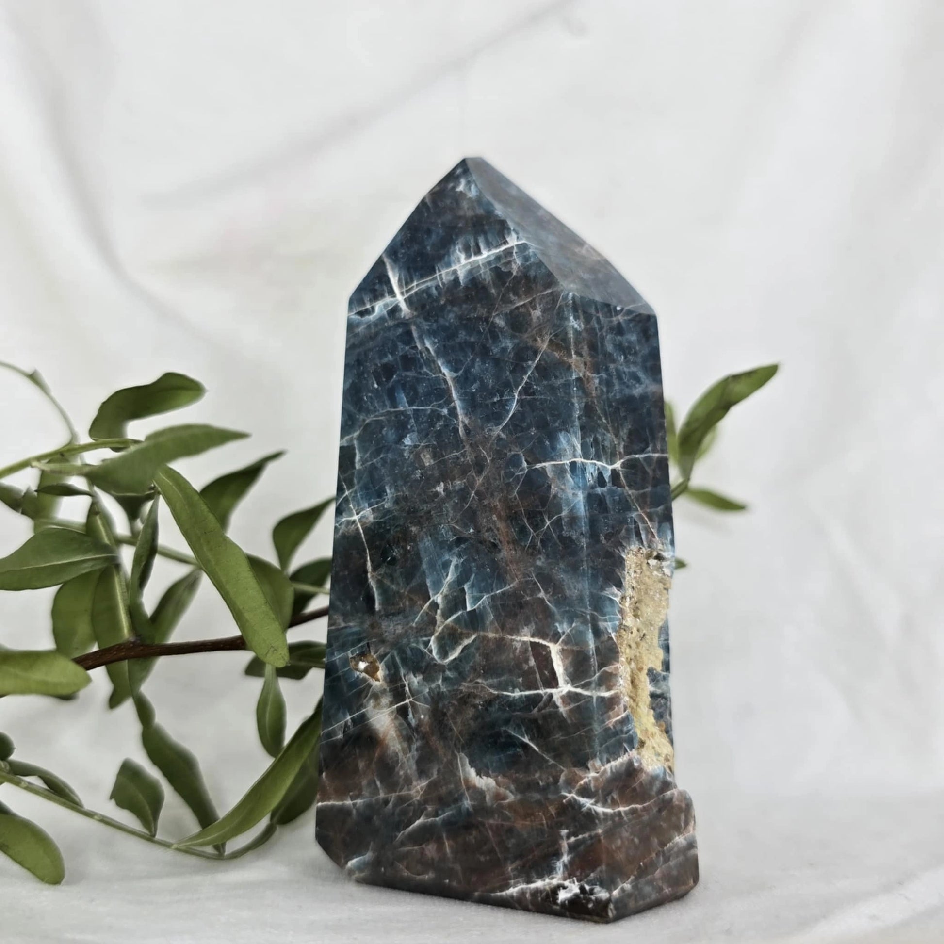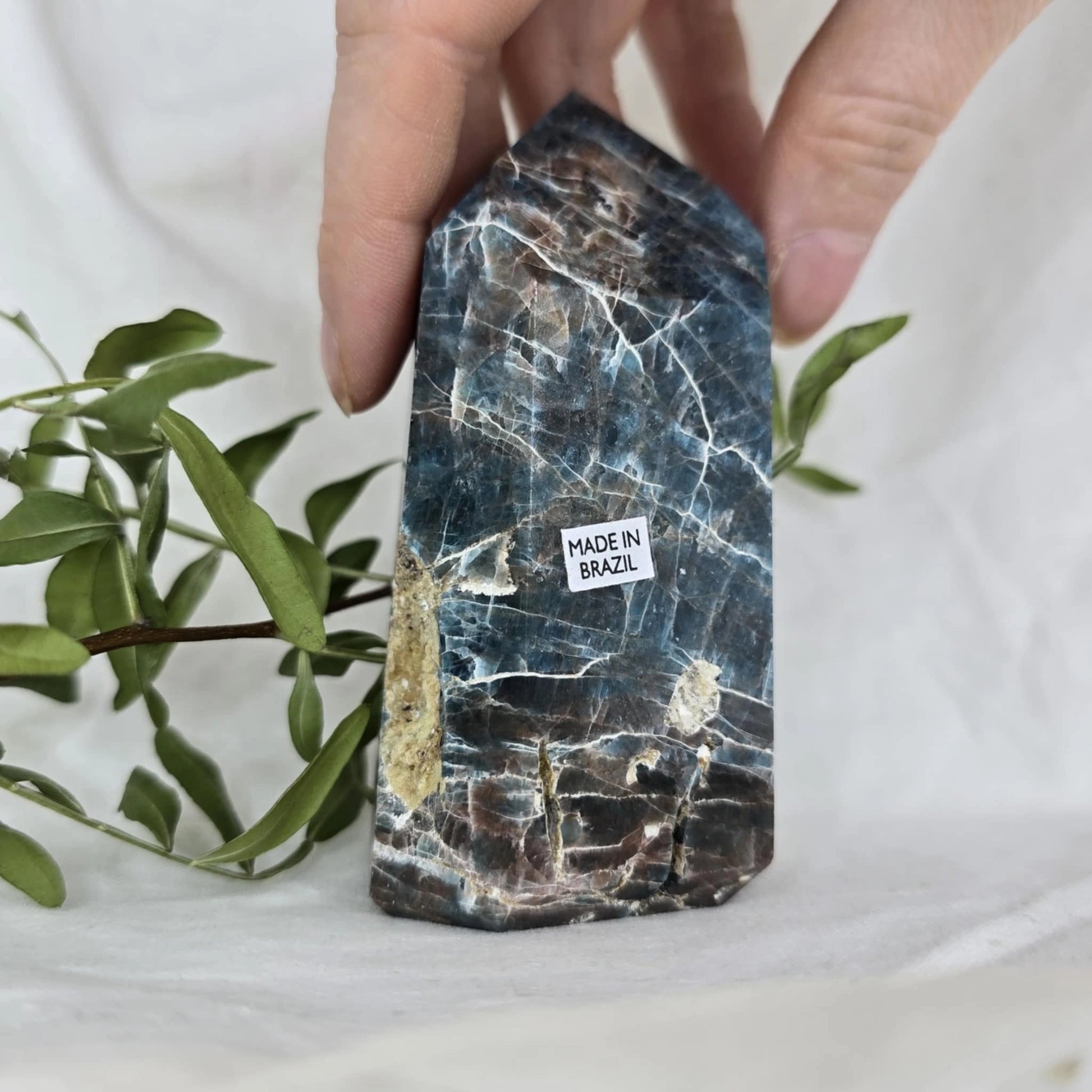 Apatit pogosto vsebuje naravne razpoke znotraj večjih kosov, iz katerih se nato izrežejo različne oblike, kot je špica. Te razpoke so posledica krhkosti apatita in se običajno odkrijejo šele med rezanjem. Pomembno je, da te razpoke niso poškodbe, ki bi nastale kasneje, temveč so del naravne strukture kristala, kar pomeni, da so popolnoma naravne in ne vplivajo na kakovost ali energijo kristala. Razpoke so le del njegove edinstvene lepote in naravne formacije.