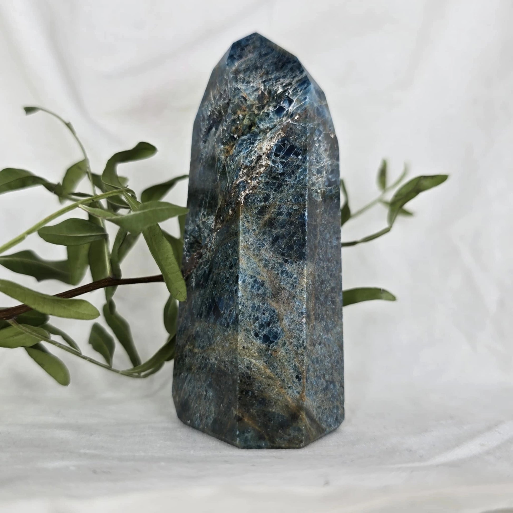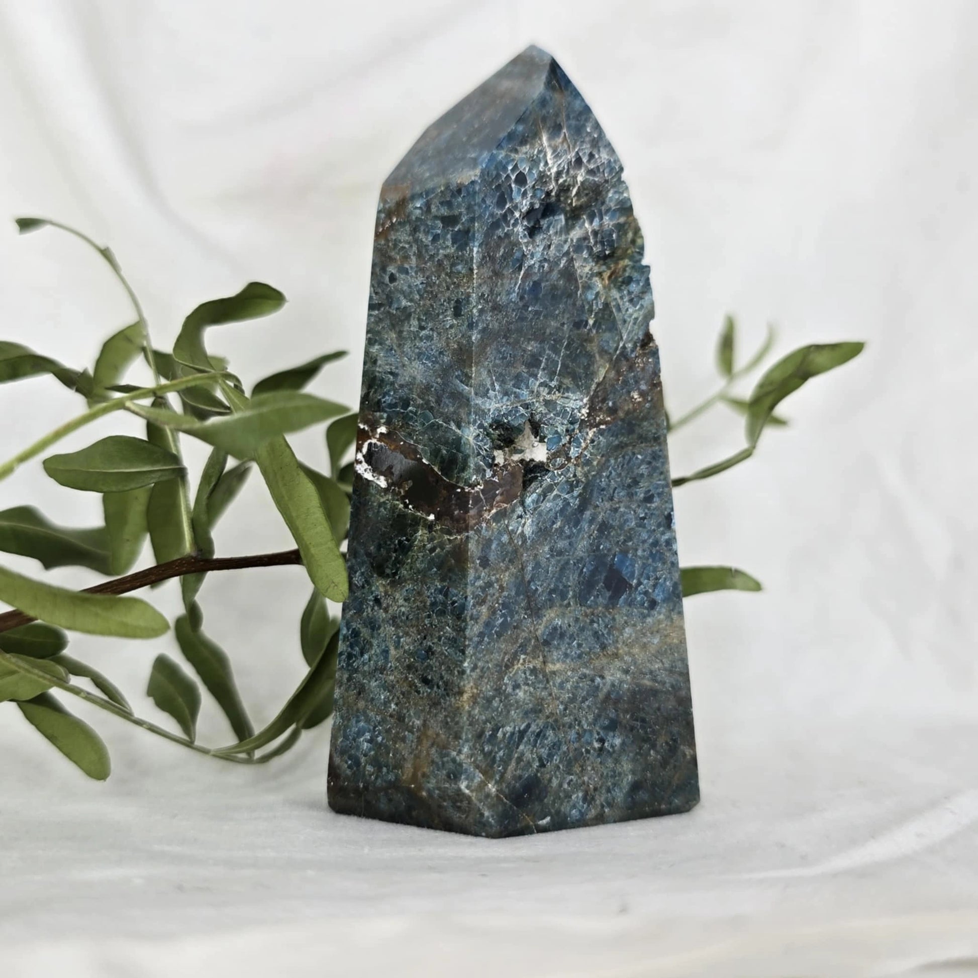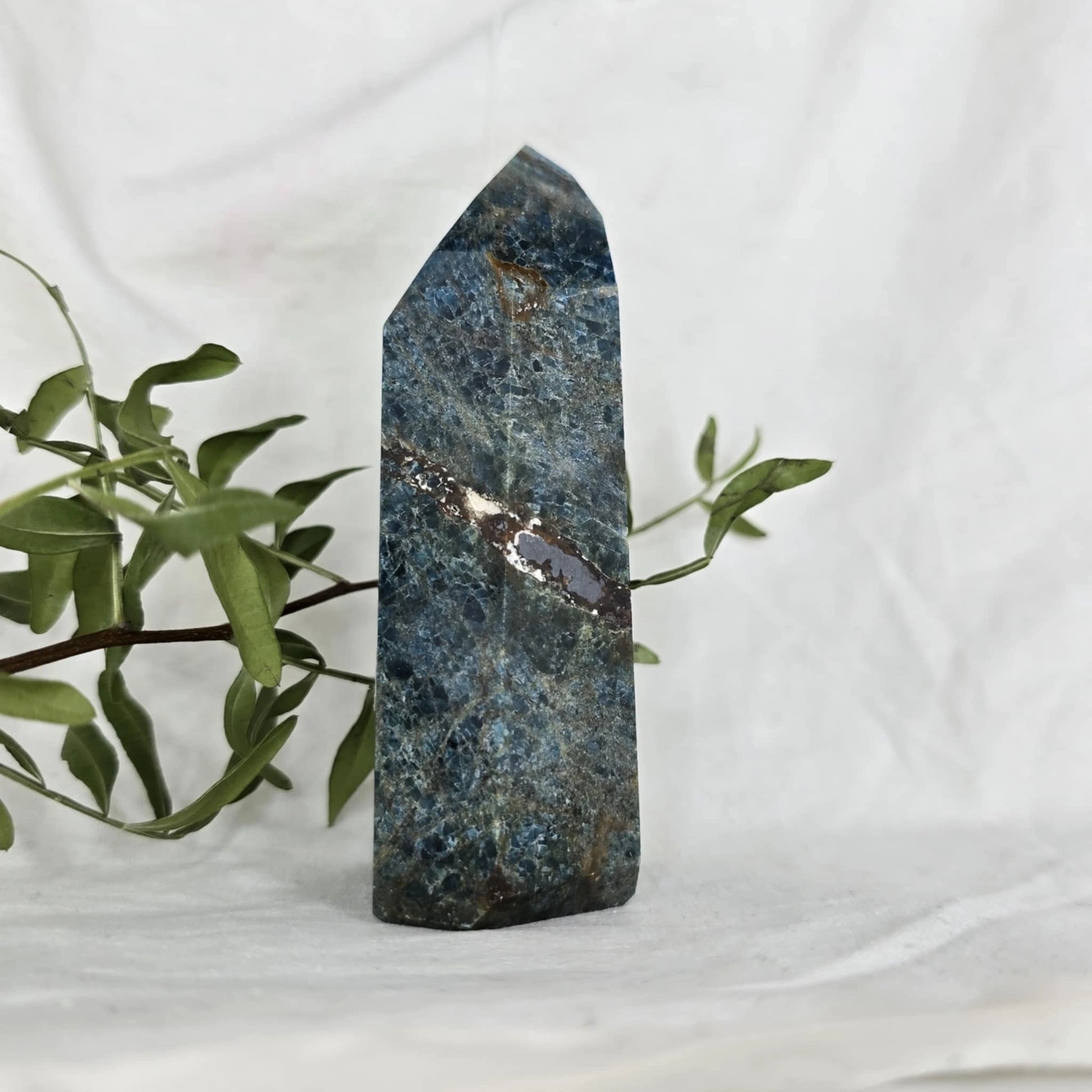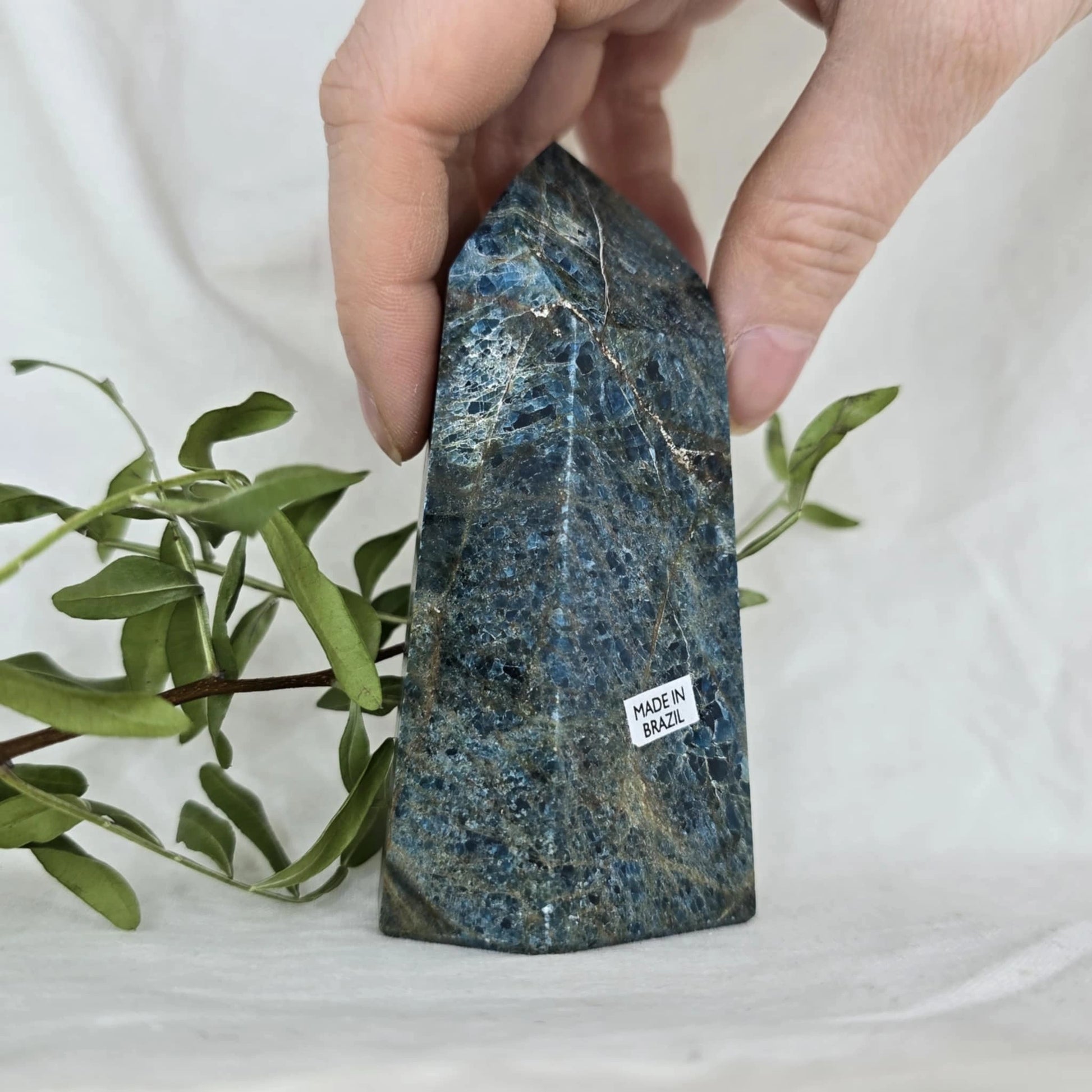 Apatit pogosto vsebuje naravne razpoke znotraj večjih kosov, iz katerih se nato izrežejo različne oblike, kot je špica. Te razpoke so posledica krhkosti apatita in se običajno odkrijejo šele med rezanjem. Pomembno je, da te razpoke niso poškodbe, ki bi nastale kasneje, temveč so del naravne strukture kristala, kar pomeni, da so popolnoma naravne in ne vplivajo na kakovost ali energijo kristala. Razpoke so le del njegove edinstvene lepote in naravne formacije.