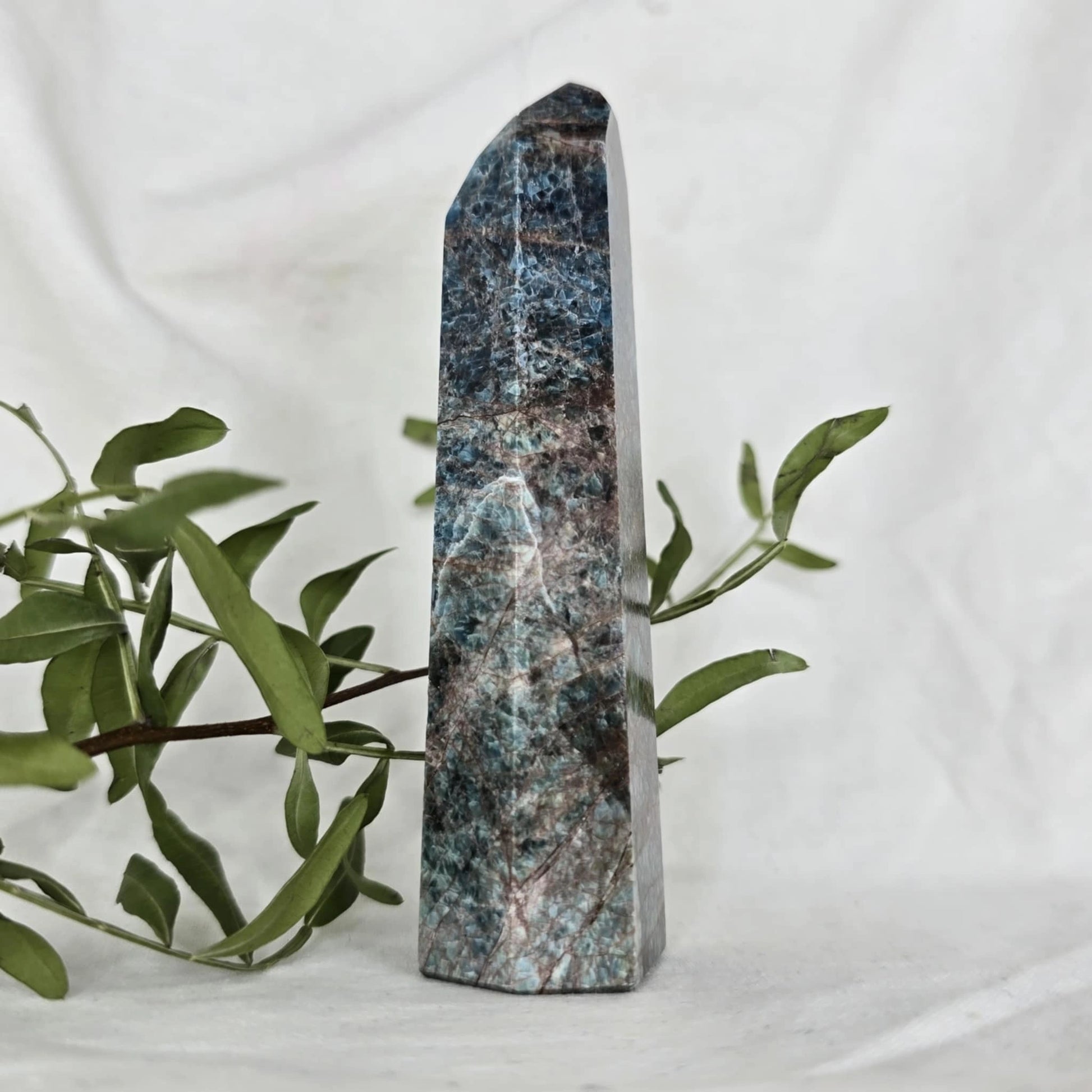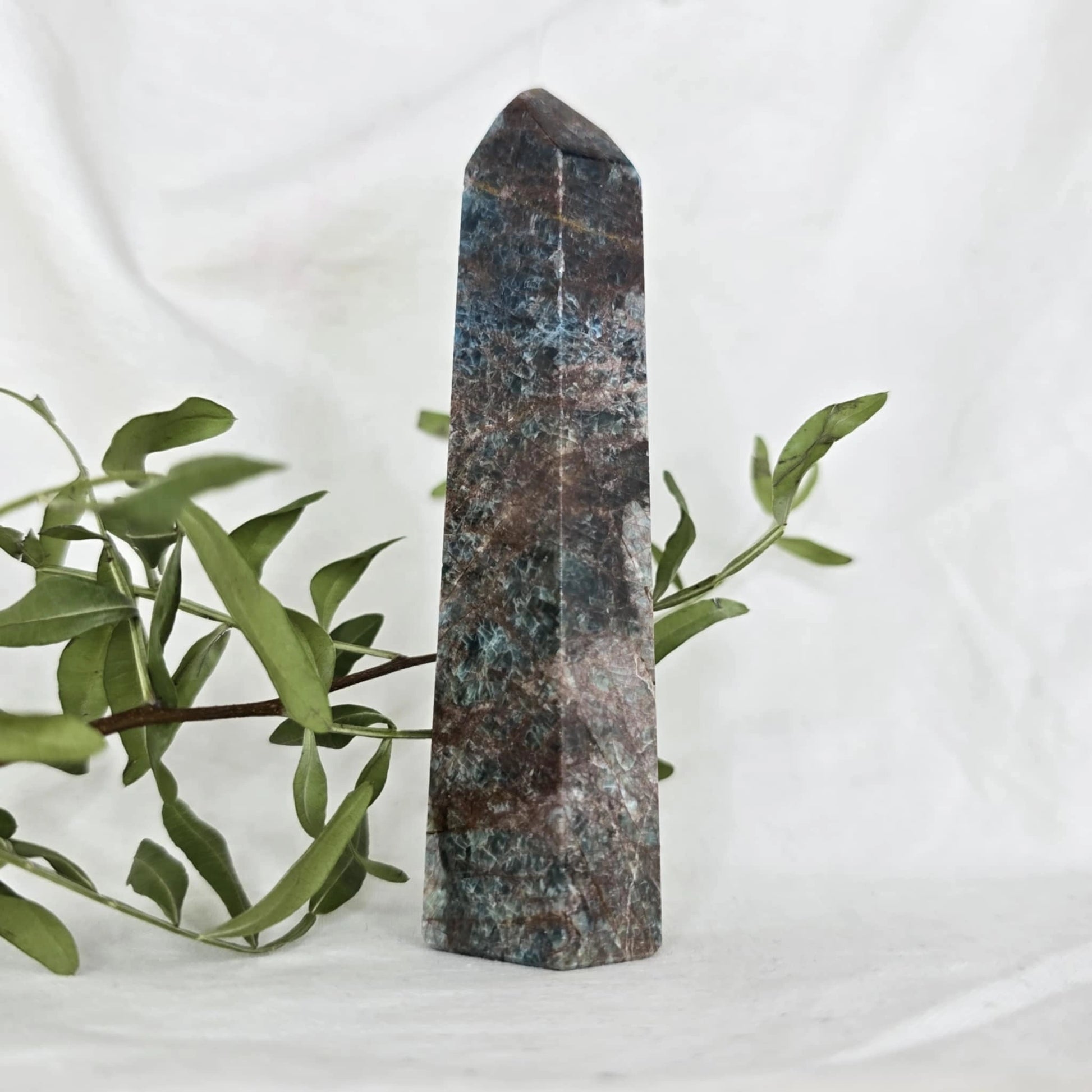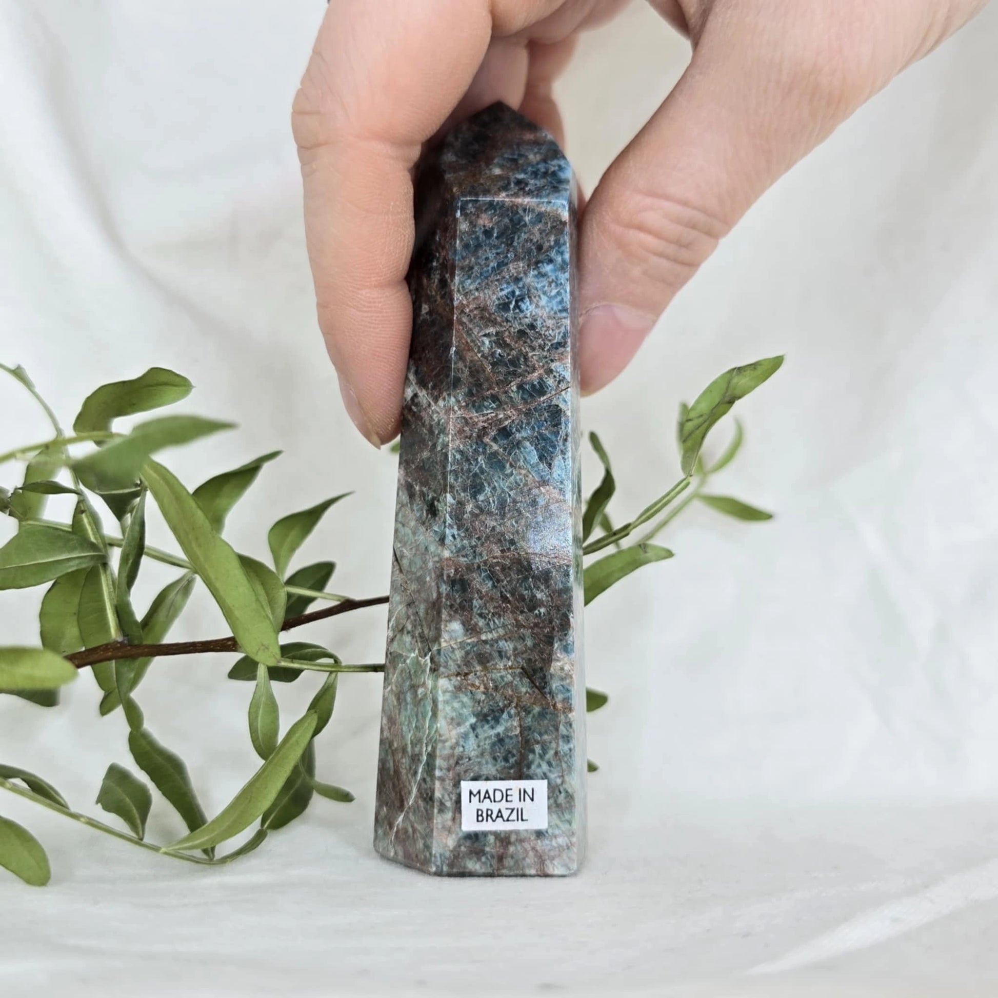 Apatit pogosto vsebuje naravne razpoke znotraj večjih kosov, iz katerih se nato izrežejo različne oblike, kot je špica. Te razpoke so posledica krhkosti apatita in se običajno odkrijejo šele med rezanjem. Pomembno je, da te razpoke niso poškodbe, ki bi nastale kasneje, temveč so del naravne strukture kristala, kar pomeni, da so popolnoma naravne in ne vplivajo na kakovost ali energijo kristala. Razpoke so le del njegove edinstvene lepote in naravne formacije.