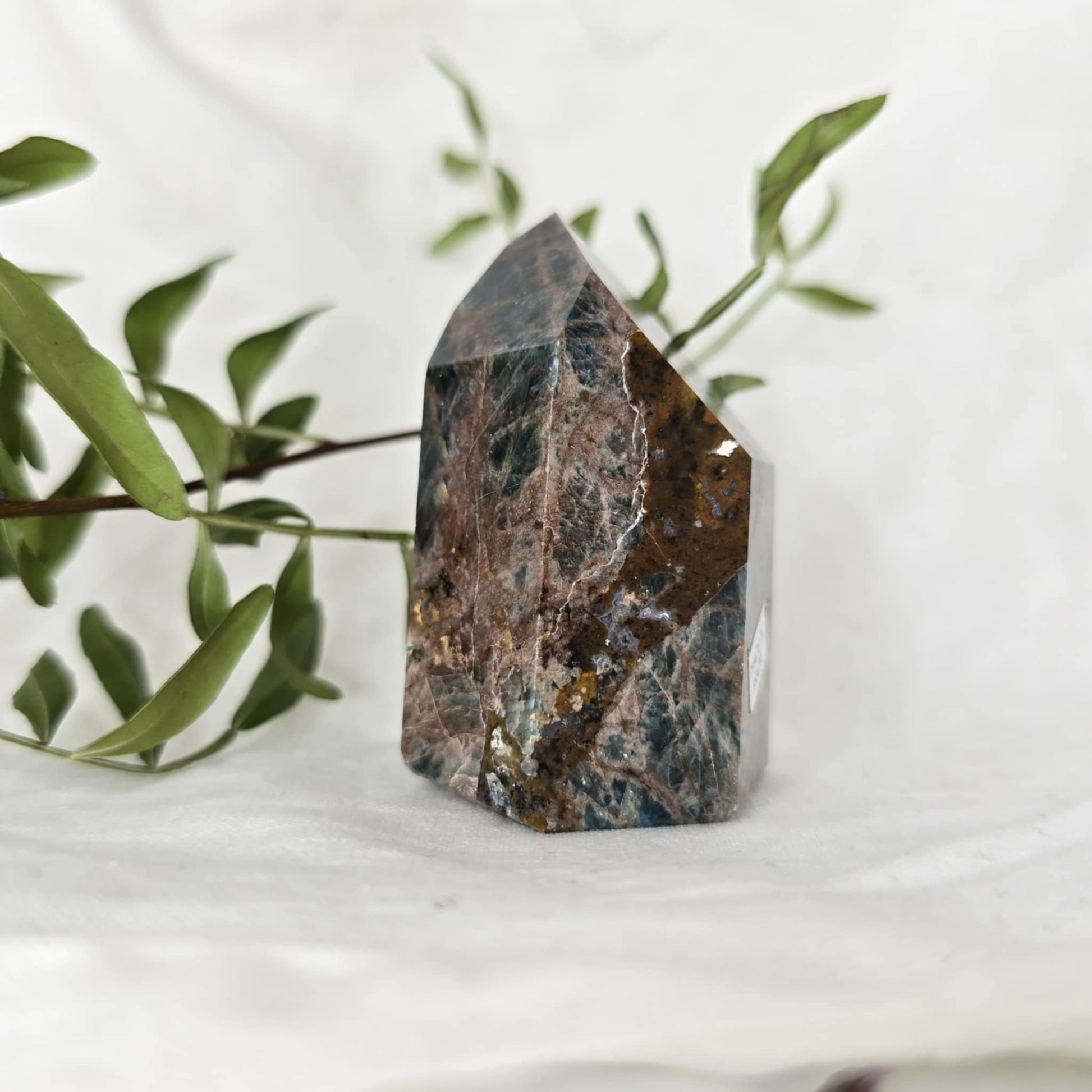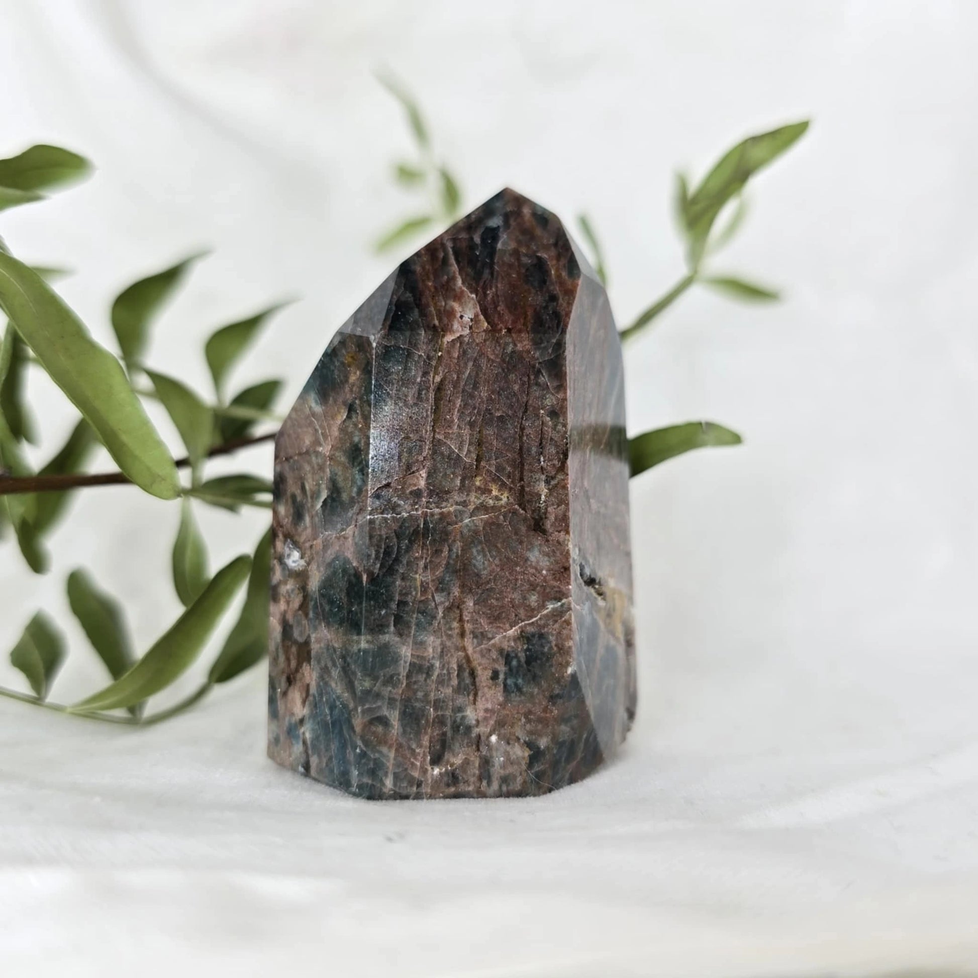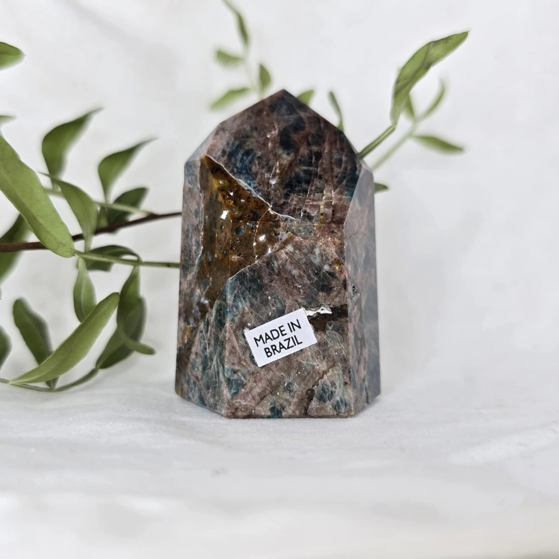 Apatit pogosto vsebuje naravne razpoke znotraj večjih kosov, iz katerih se nato izrežejo različne oblike, kot je špica. Te razpoke so posledica krhkosti apatita in se običajno odkrijejo šele med rezanjem. Pomembno je, da te razpoke niso poškodbe, ki bi nastale kasneje, temveč so del naravne strukture kristala, kar pomeni, da so popolnoma naravne in ne vplivajo na kakovost ali energijo kristala. Razpoke so le del njegove edinstvene lepote in naravne formacije.