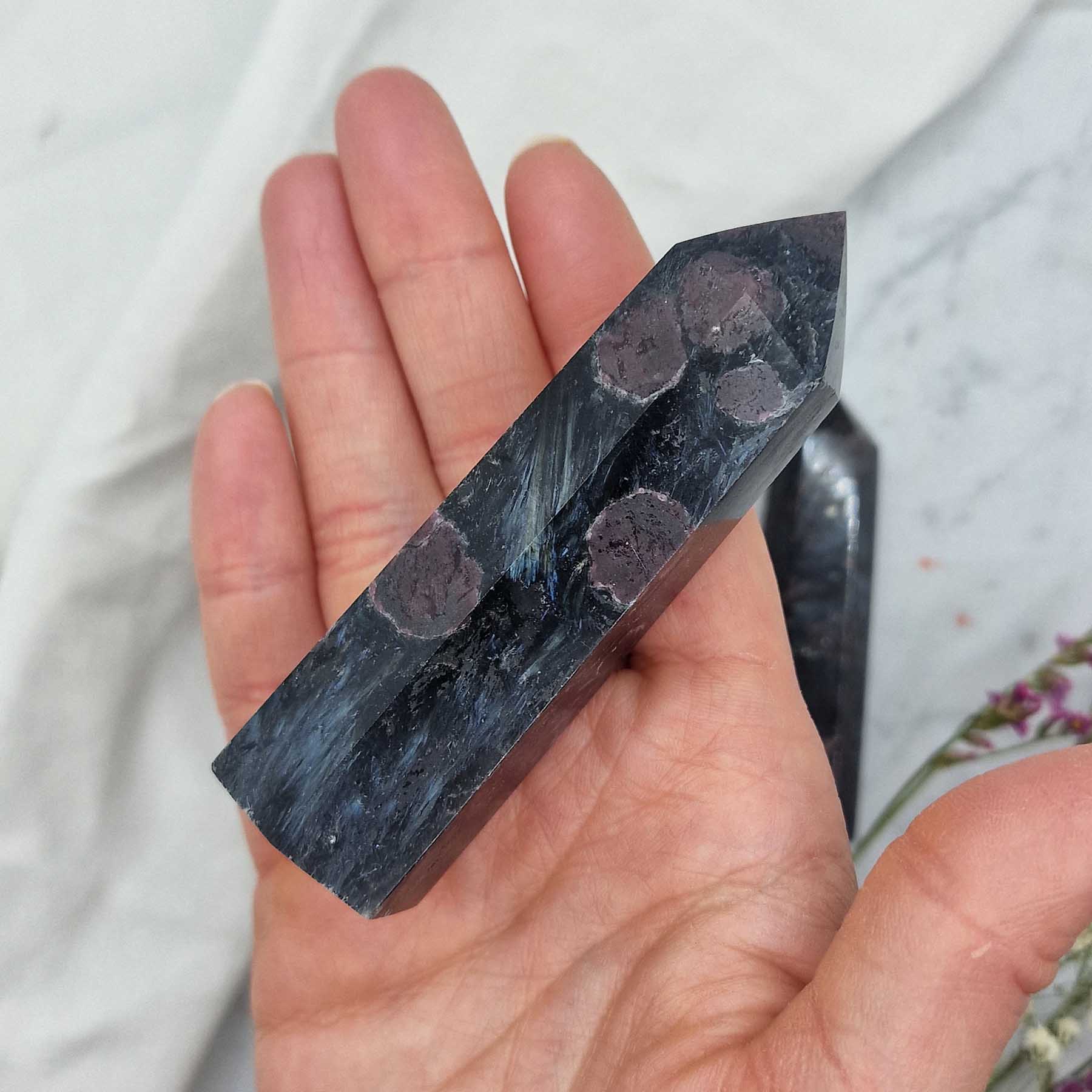 Arfvedsonit je močan manifestacijski kristal in z granatom le ta postaja še močnejši. Granat dodaja zaščito, pomirja in nežno ozemlji. Vaš duh potegne nazaj v središče in vam pomaga z lahkoto premagati vsak izziv.