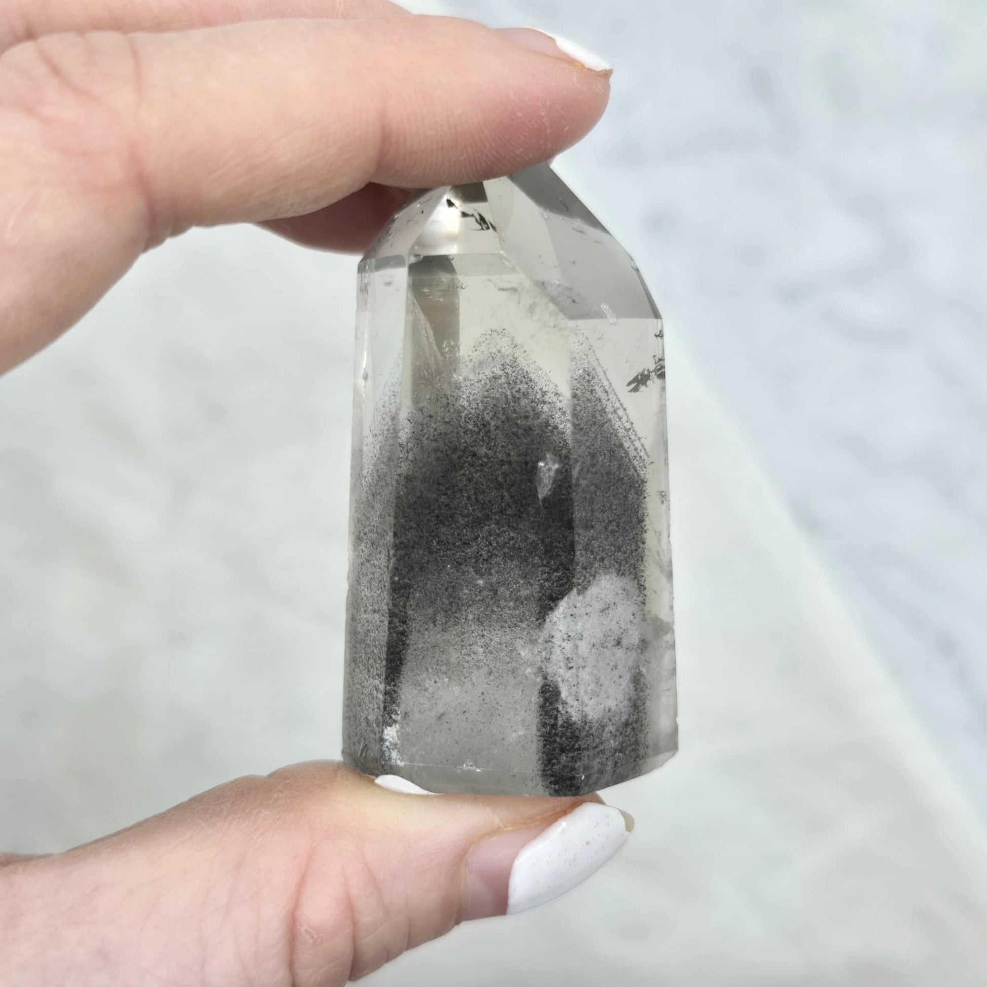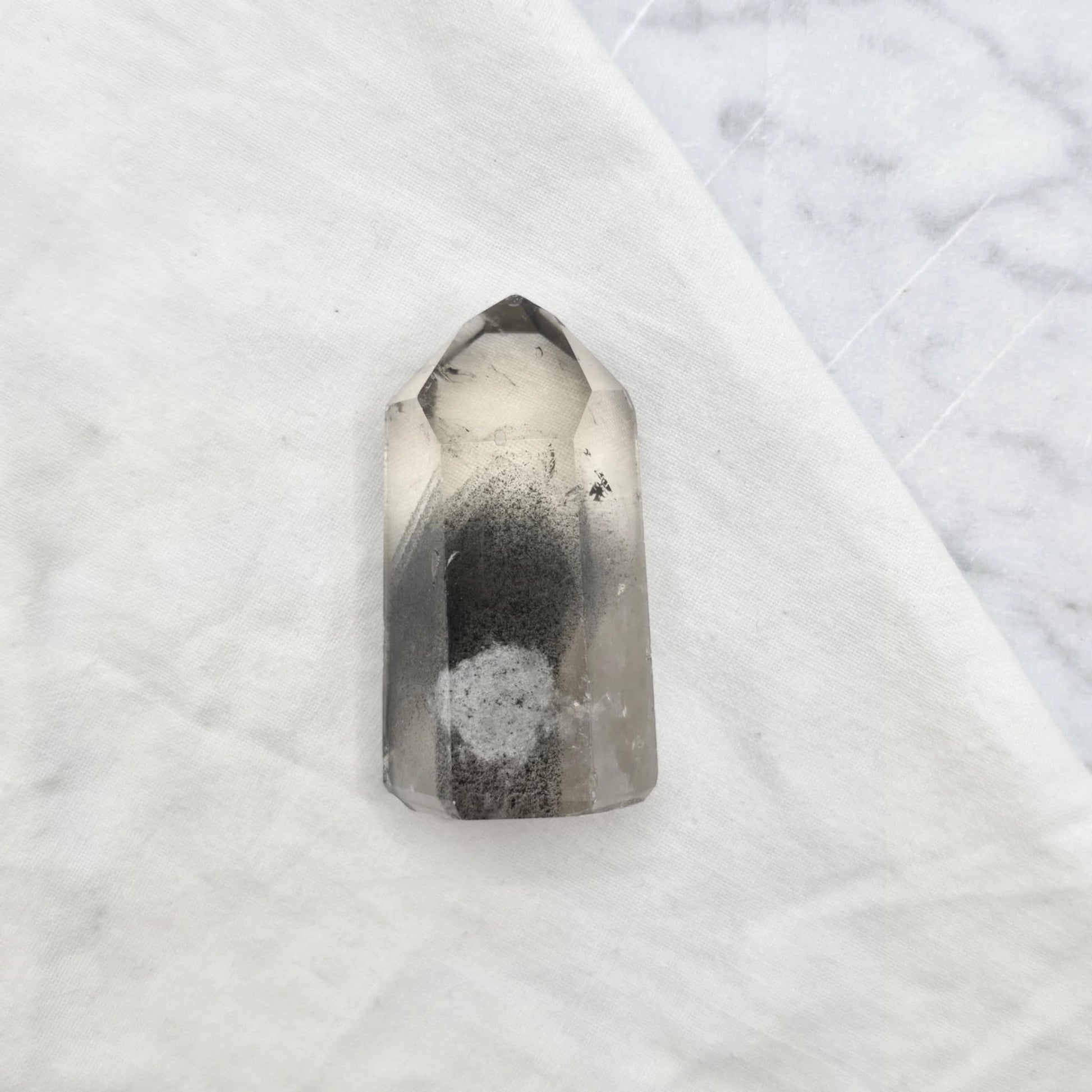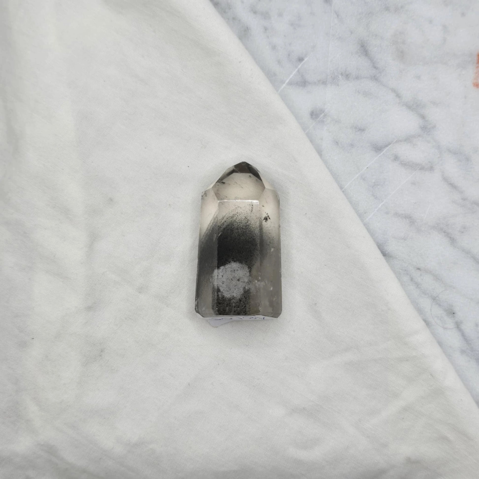Fantomski kremen je izjemen in mističen mineral, prepoznaven po svojih notranjih "sencah" ali oblikah, ki odražajo različne faze rasti kristala. Ta edinstvena lastnost ustvarja optični učinek, ki deluje kot okno v preteklost, simbolizira razvoj, preobrazbo in neskončne cikle življenja. Fantom kremen iz Brazilije je cenjen zaradi svoje močne duhovne energije in globokega simbolnega pomena.