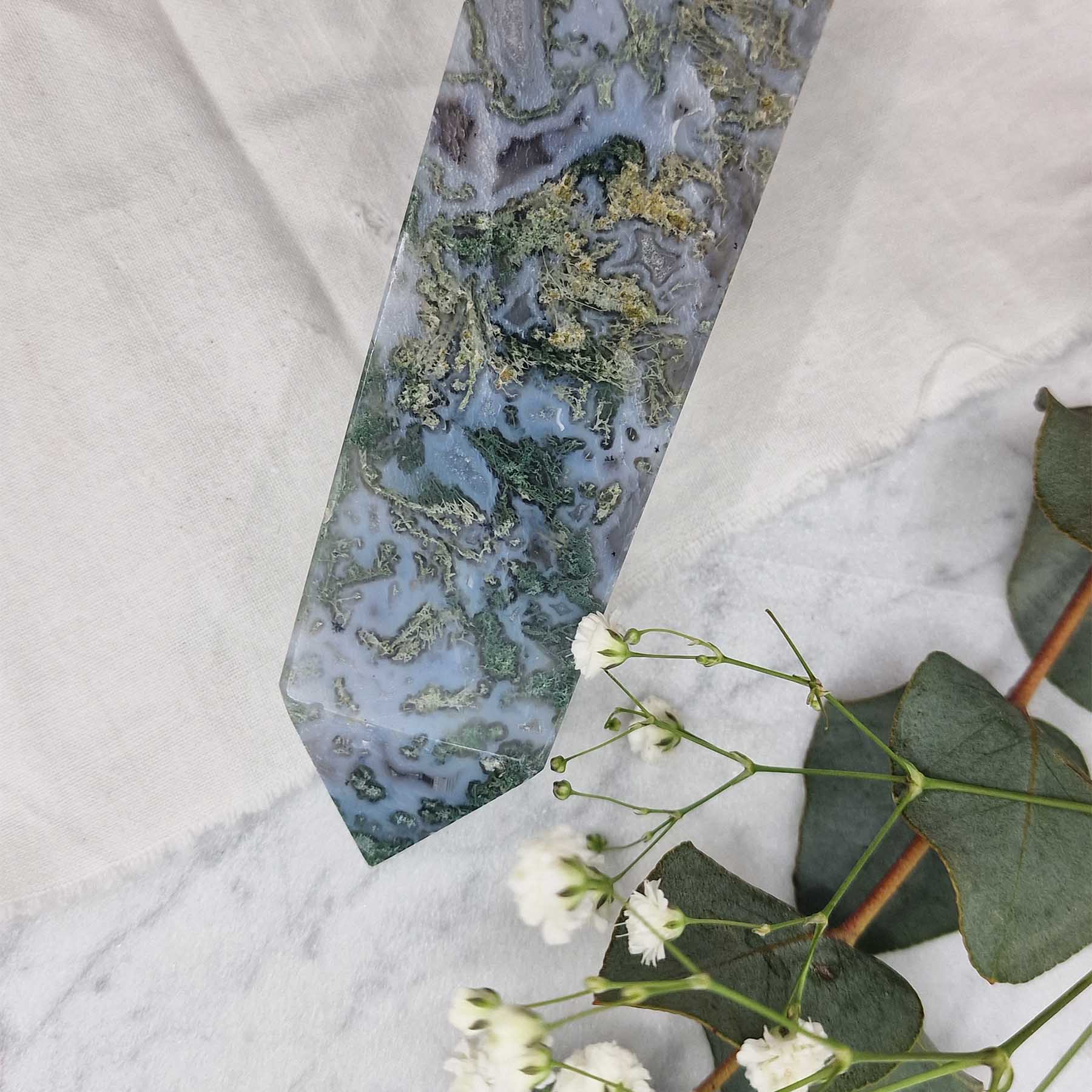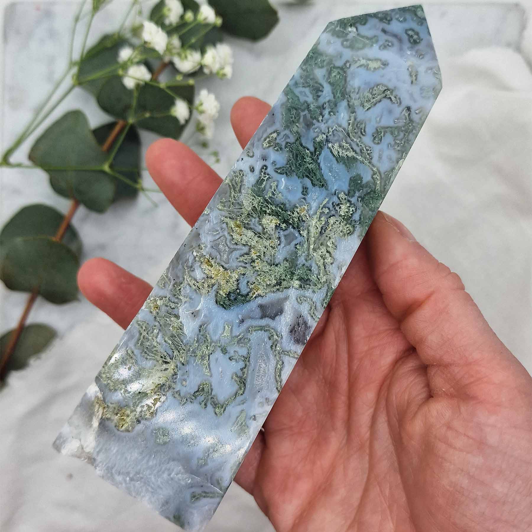 Mahovni ahat so zaradi njegove zdravilne lastnosti uporabljali kot talisman za srečo. Ko ga postavimo med rože se nam zdi kot da imajo še več cvetov kot poprej, ko ga imamo na delovnem mestu pa se nam zdi da posel cveti. Mahovit ahat nas popelje v narovo ne glede na to kje smo. Niti dva mahovna ahata nista ista, zato je vsak poseben in čaroben. Ko ga pogledate proti soncu vam ustvari nov svet, poln domišljije.