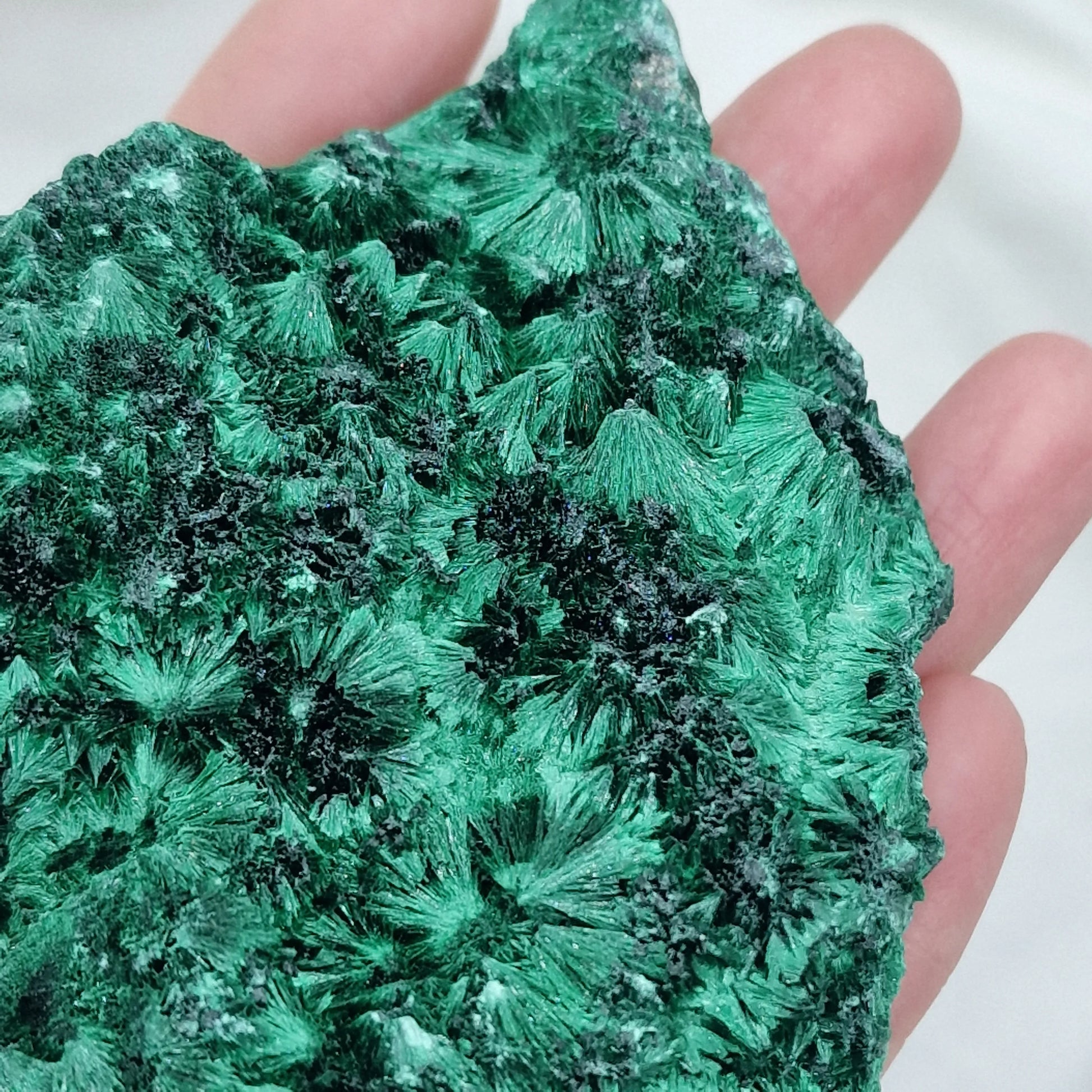 - Čiščenje: Malahit je izjemno močan za čiščenje energije, zmožen absorbirati negativne energije iz telesa in okolja.