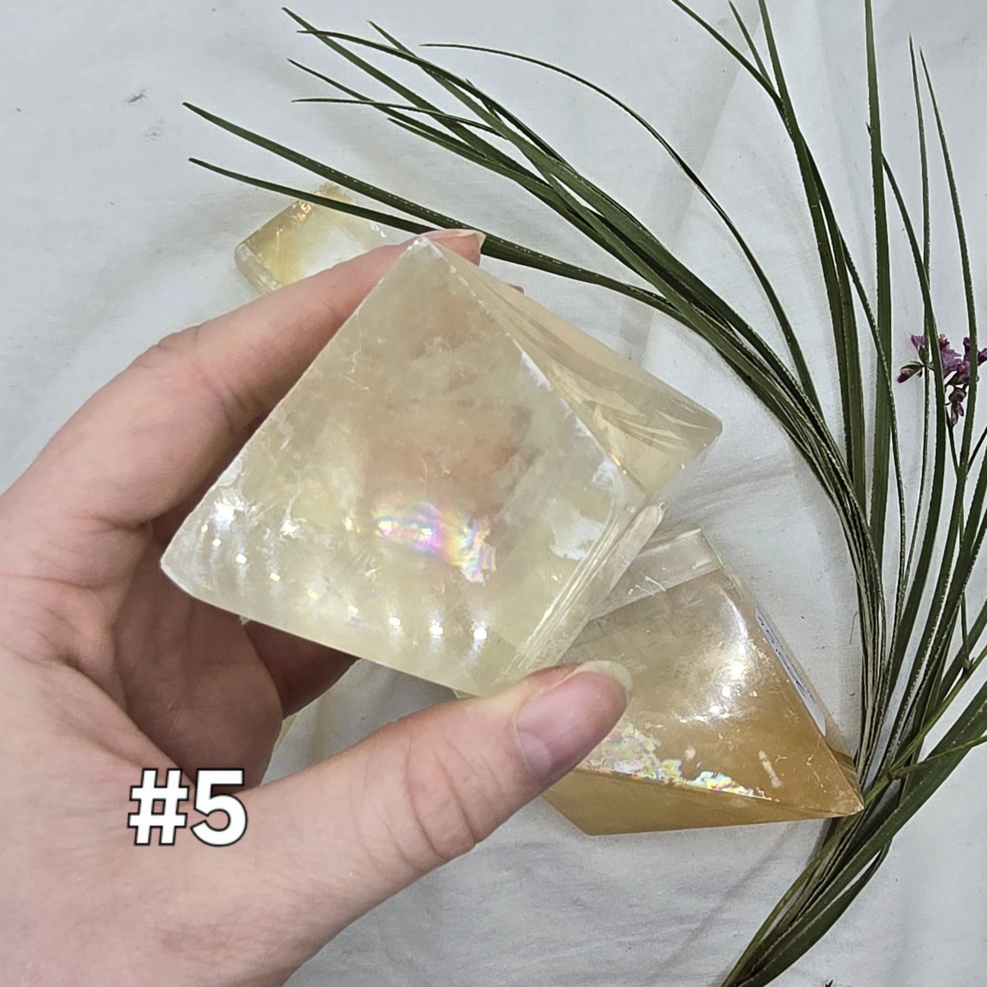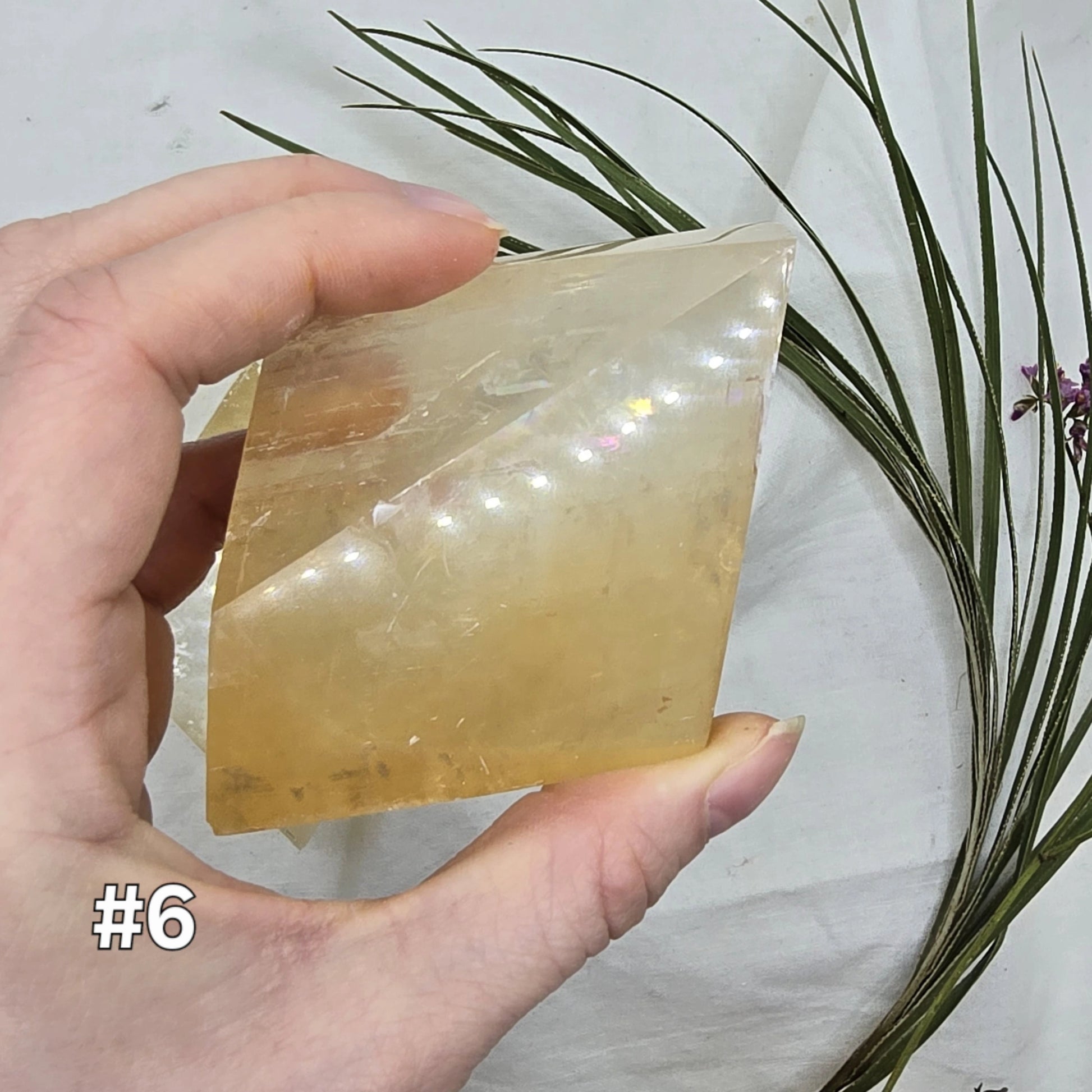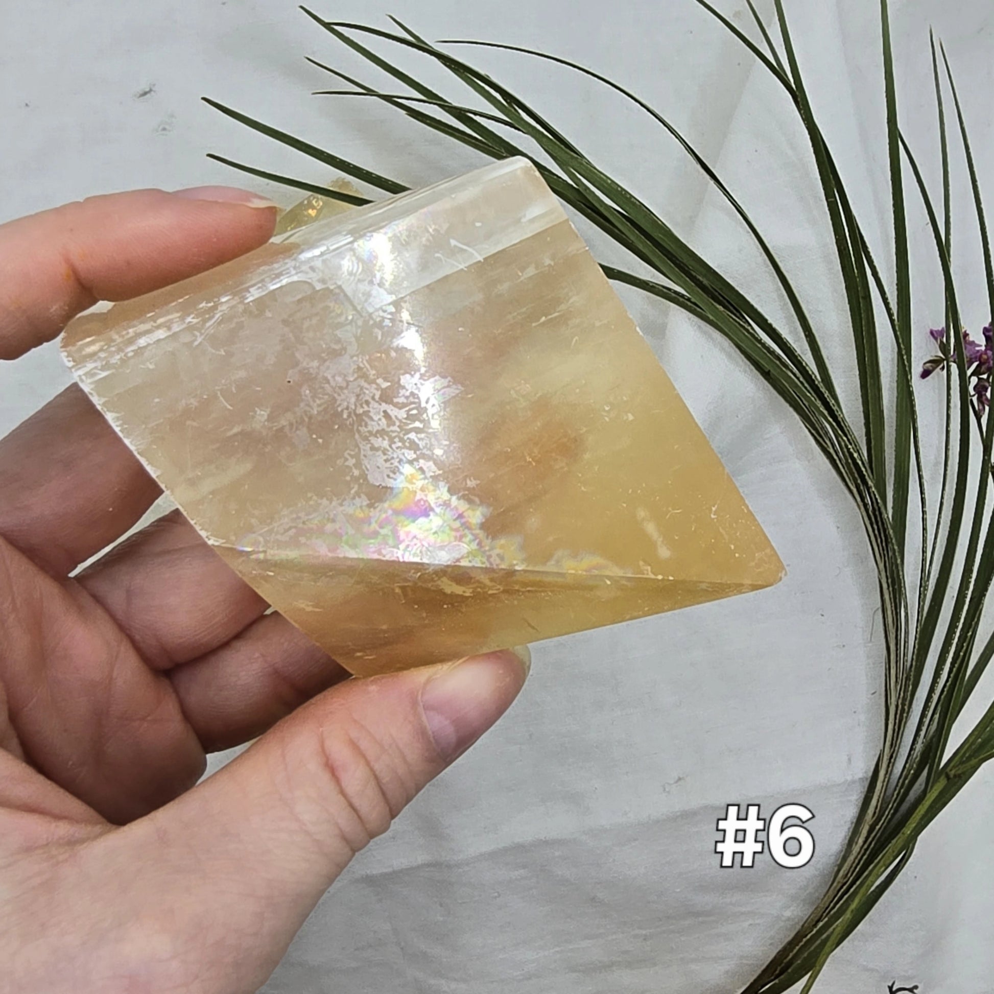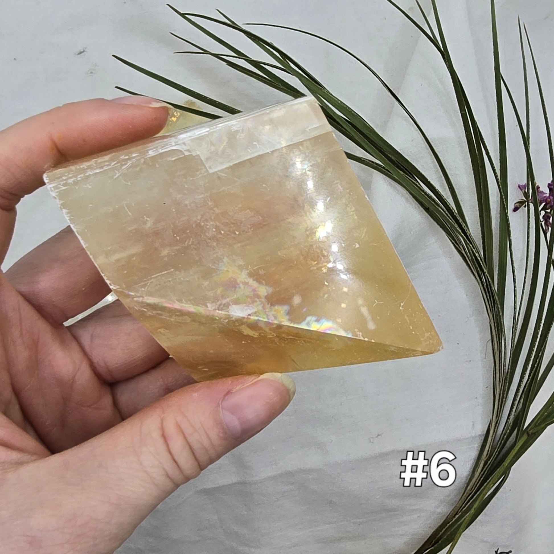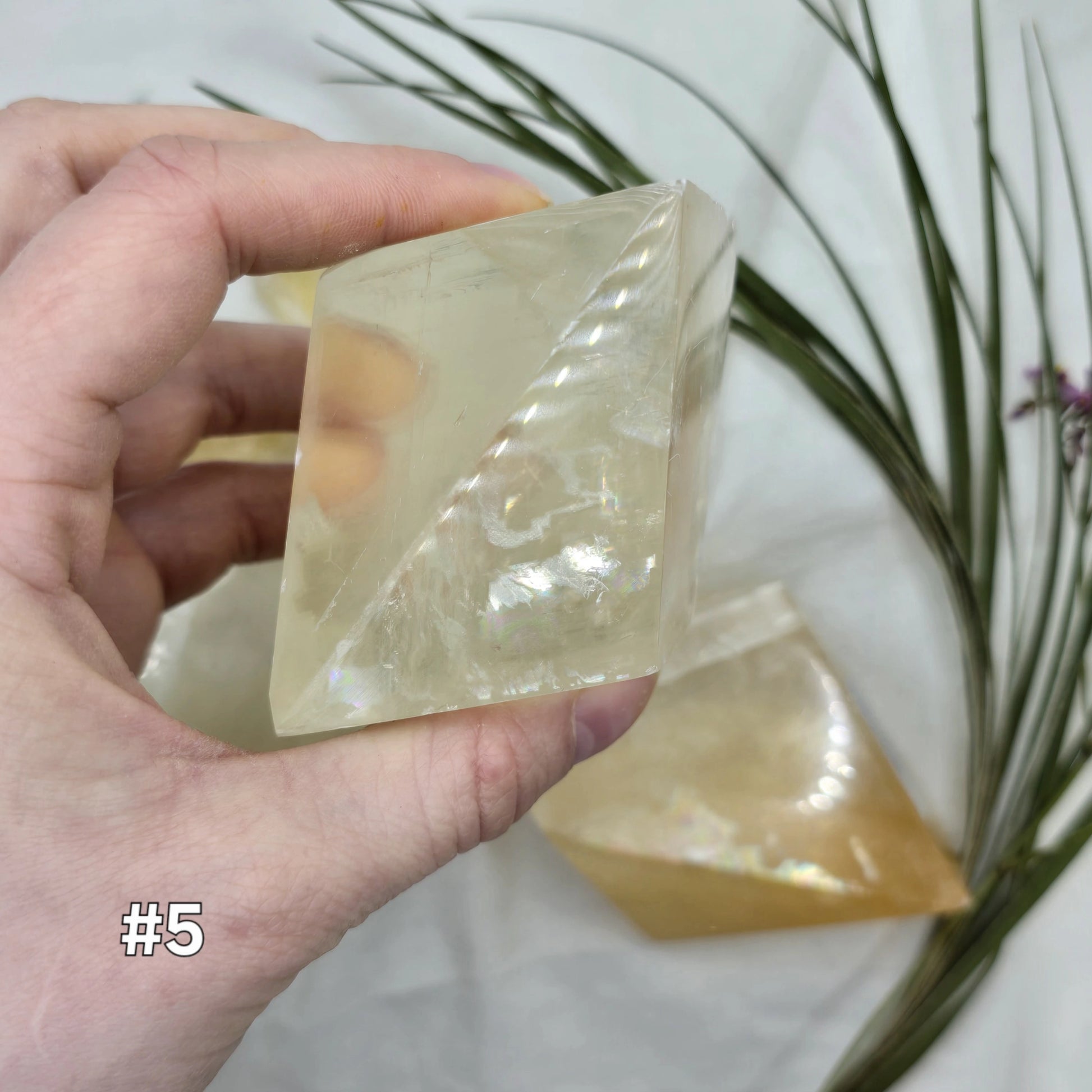 Medeni kalcit je edinstven kristal s svojo čisto, prosojno zlato barvo, ki spominja na tekoči med. Ta kristal ni le vizualno osupljiv, temveč tudi energijsko močan. Zaradi svojih optičnih lastnosti lahko lomni učinki svetlobe ustvarijo čarobne vizualne vzorce, kar dodaja občutek globine in čarobnosti. Medeni kalcit je idealen za vse, ki želijo izboljšati svojo osredotočenost, premagati ovire in pritegniti svetlobo ter pozitivnost v svoje življenje.