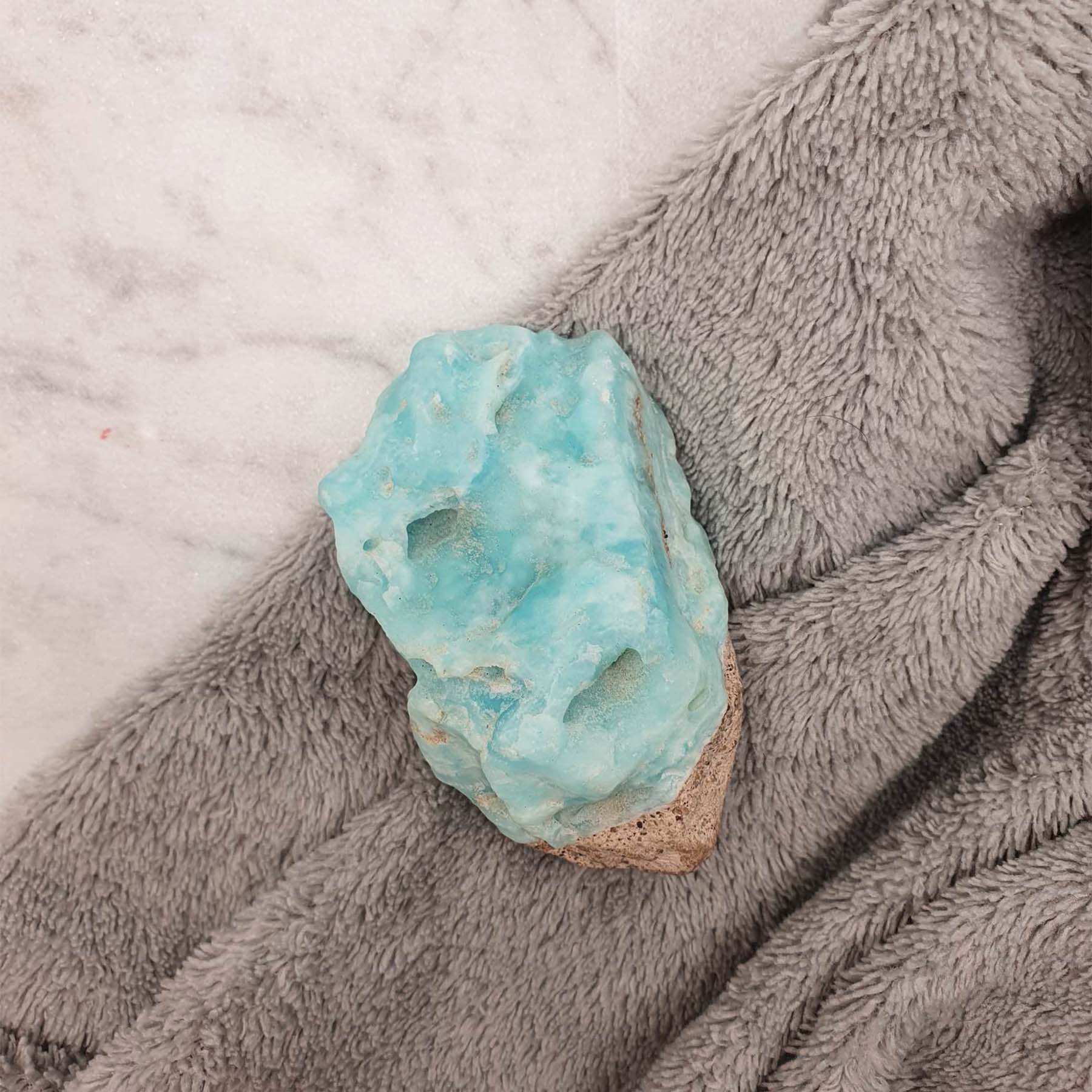 Modri aragonit odlično deluje na grleno čakro. Pomaga sporočiti čustveno bolečino in boj, s katerim se nočemo soočiti. Ta kamen nas spodbuja, da glasno izrazimo svoja čustva, ko smo v času nelagodja. Vsekakor to ni agresiven vokalizirajoči kamen in je tu izključno zato, da pomaga pri vokalizaciji čustvene bolečine.