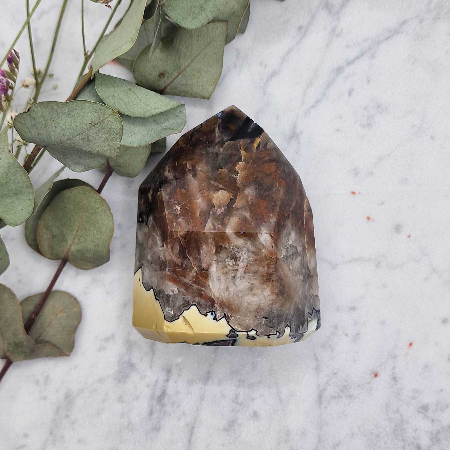 Mozaik Kalcedon Kremen tako združuje naravno lepoto, geološko kompleksnost in globok duhovni pomen, zaradi česar je cenjen kot dragocen dodatek v mineralnih zbirkah in kot vir inspiracije v meditativnih ter duhovnih praksah.