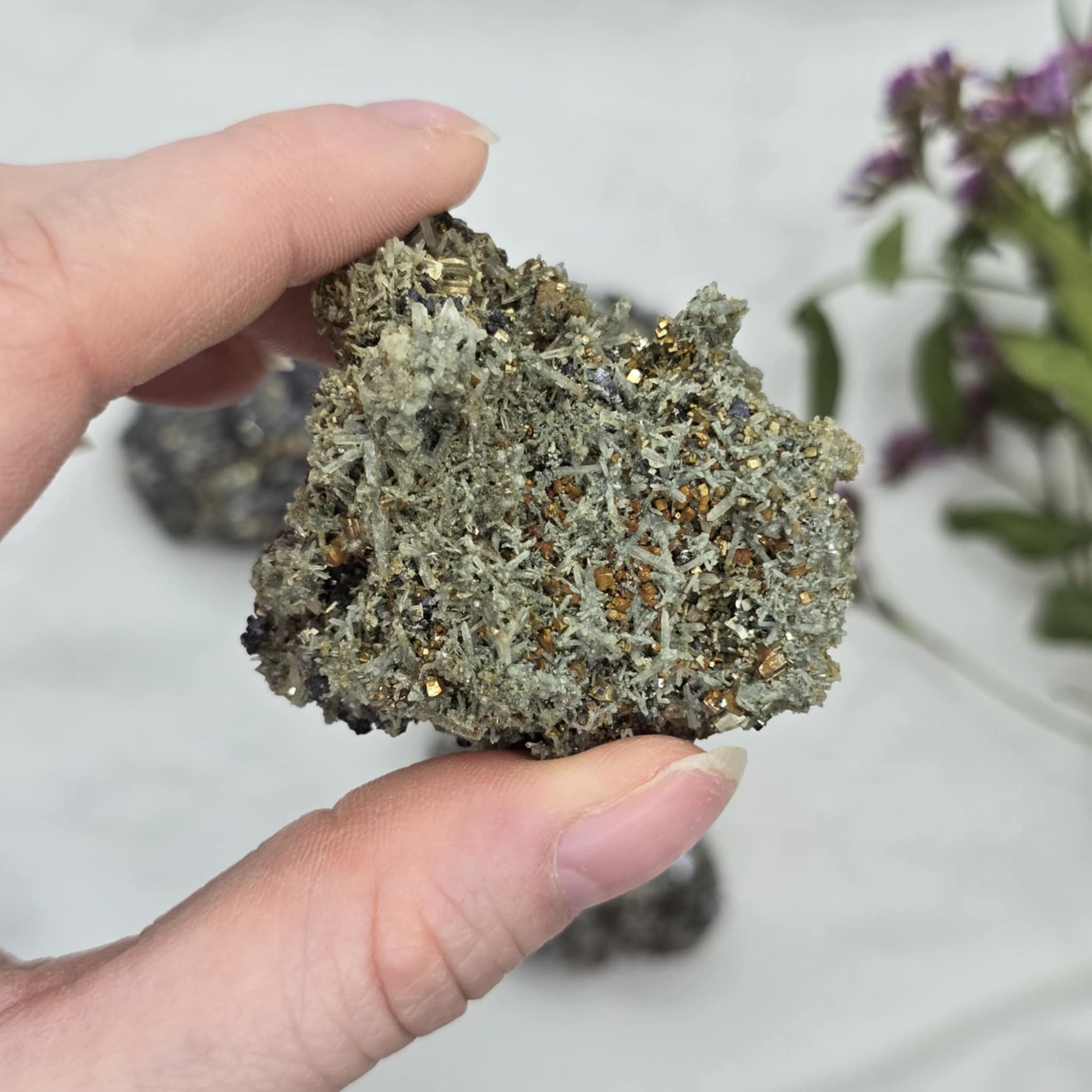 Pirit, znan tudi kot "kamen norca" zaradi svoje kovinske sijajnosti in močne prisotnosti, je izjemen kristal, ki izžareva energijo moči, zaščite in motivacije. Rastišče pirit iz Bolgarije je cenjeno zaradi svoje kakovosti, briljantne zlate barve in močne energetske prisotnosti, ki ustvarja stabilno in zaščiteno okolje. Pritrditev v energijsko polje prinaša ravnovesje in zaščito, obenem pa pomaga pri spodbujanju samozavesti in osebne moči.