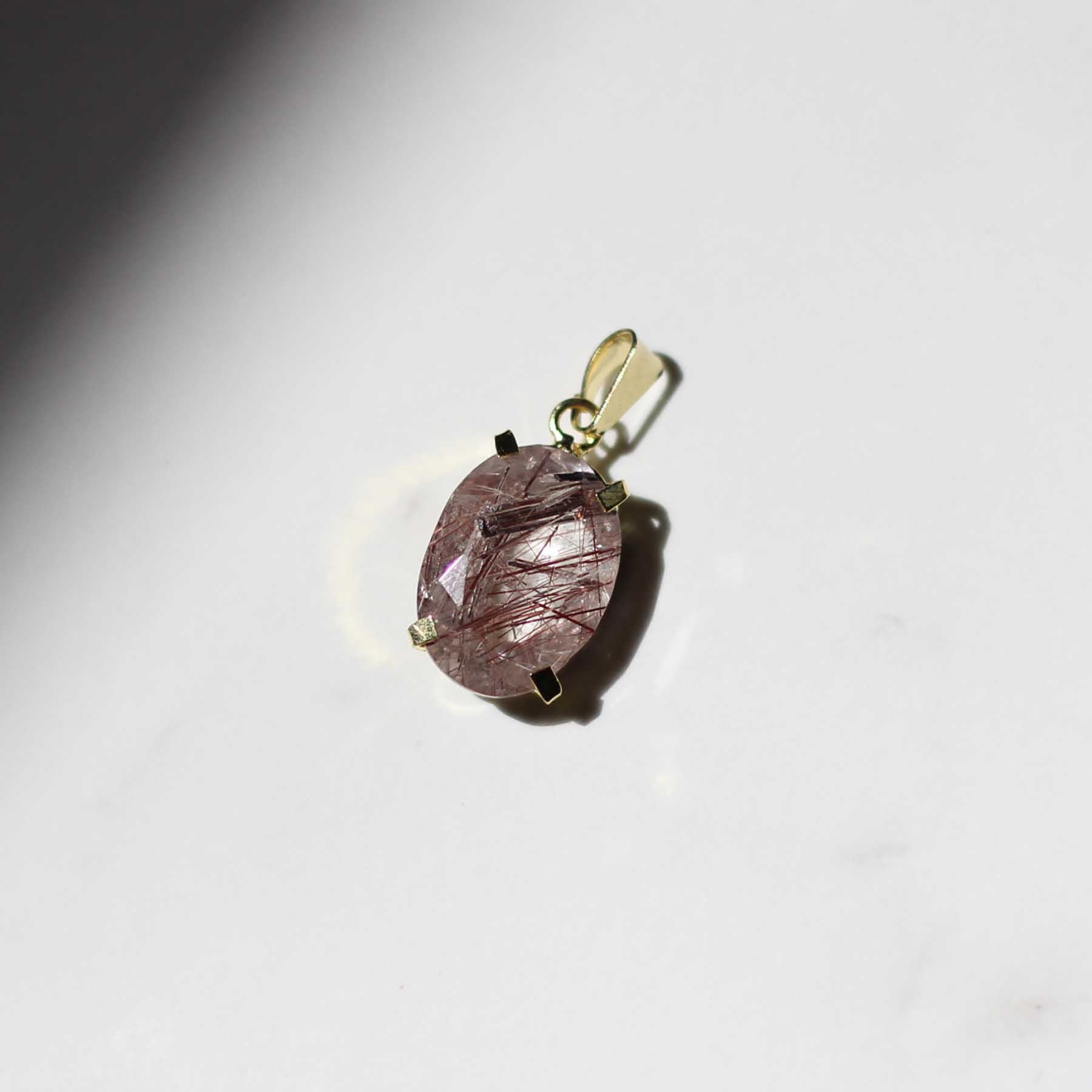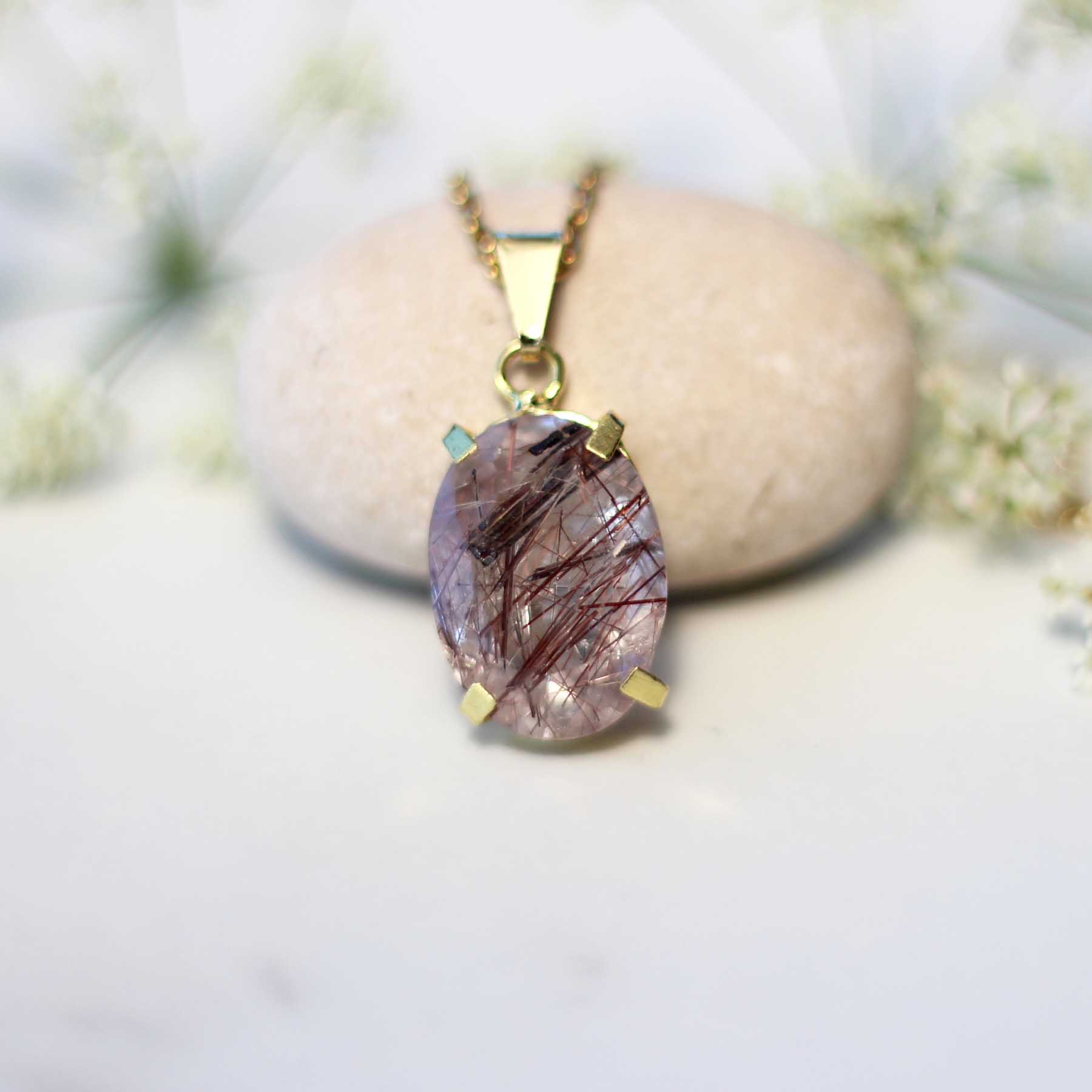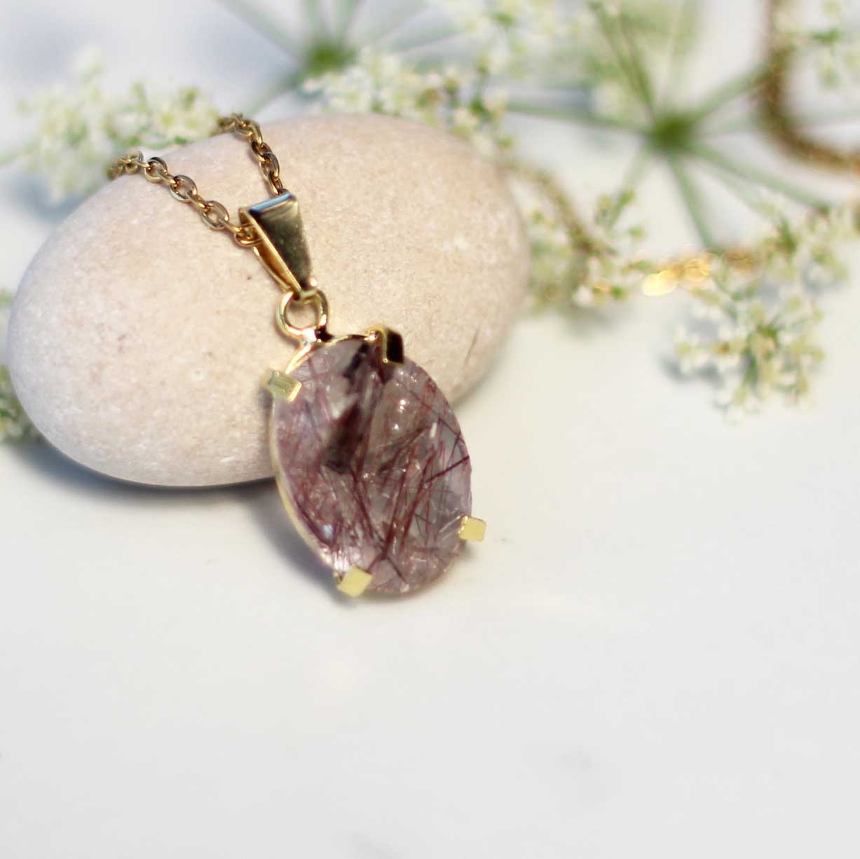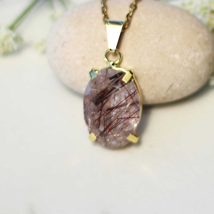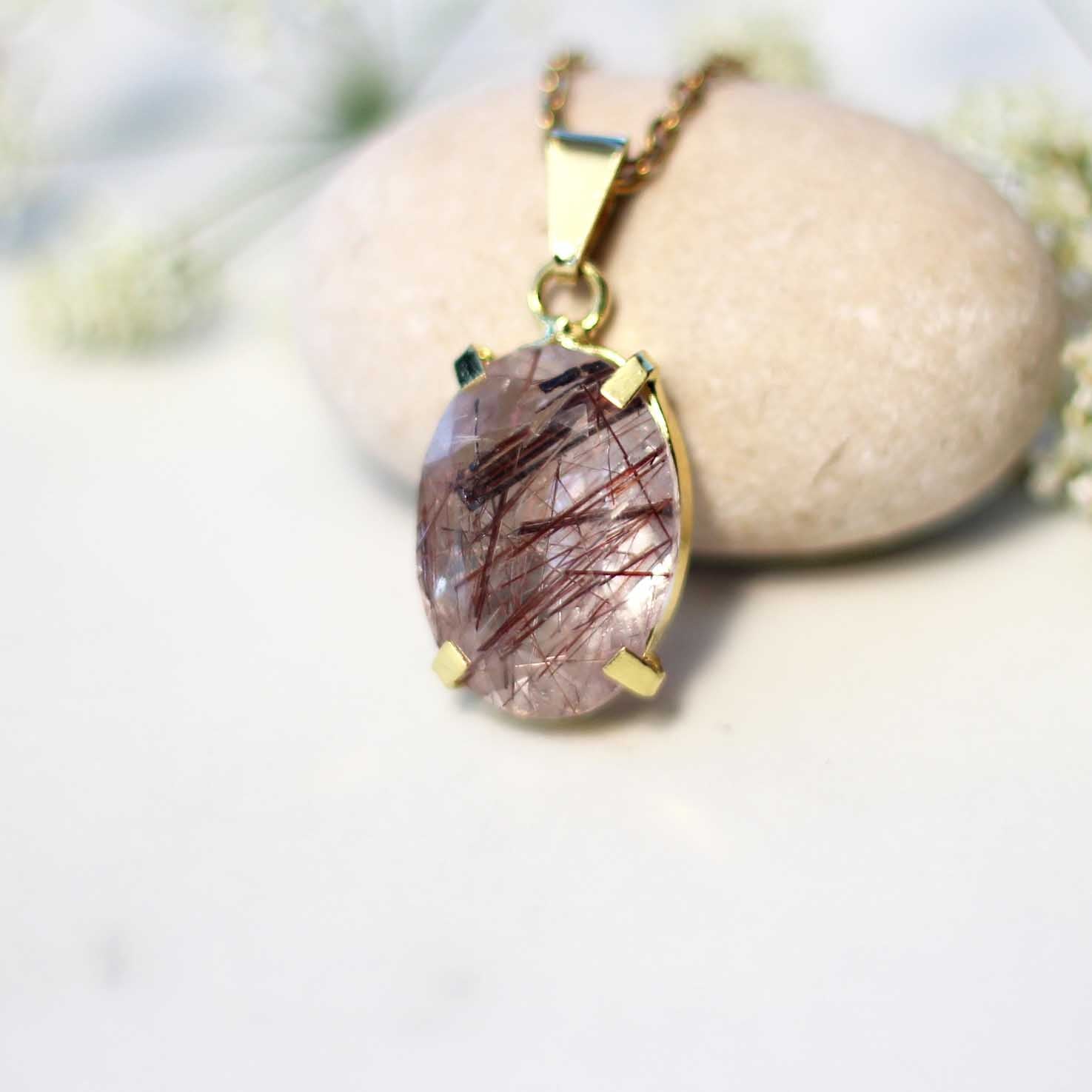 Rdeči Rutil Inclusion - Brušen Oval Verižica (Red Rutile)