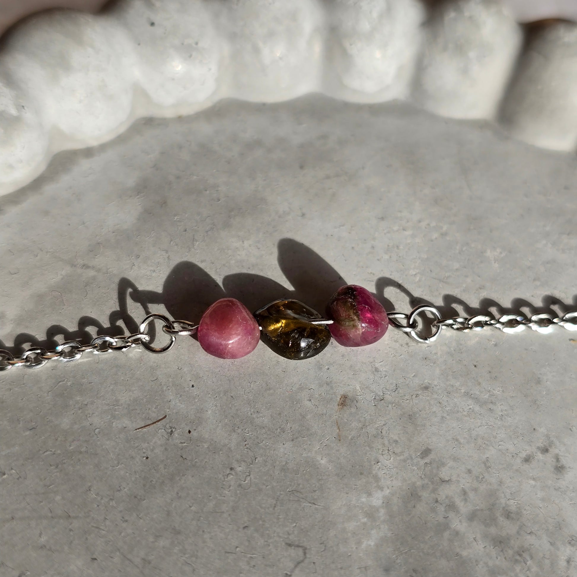 Zeleni turmalin se povezuje z vitalnostjo, obnovo in stikom z naravo, medtem ko roza turmalin simbolizira nežnost, ljubezen in čustveno zdravljenje. Skupaj ustvarjata harmonično energijo, ki podpira ravnovesje med dajanjem in sprejemanjem ljubezni.