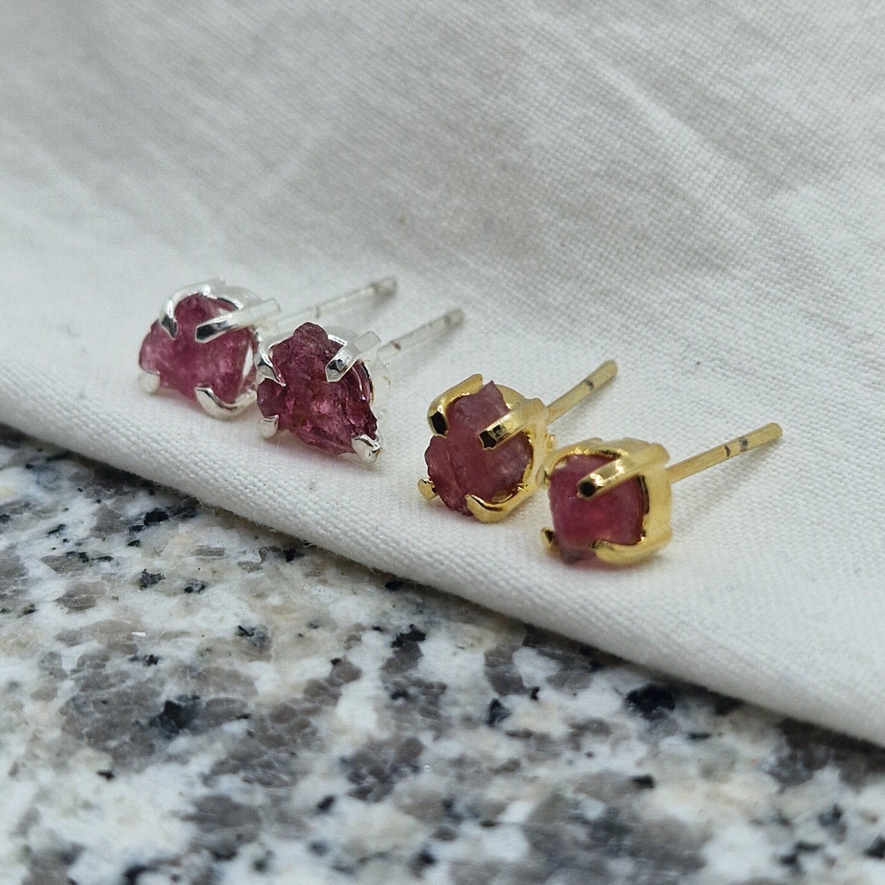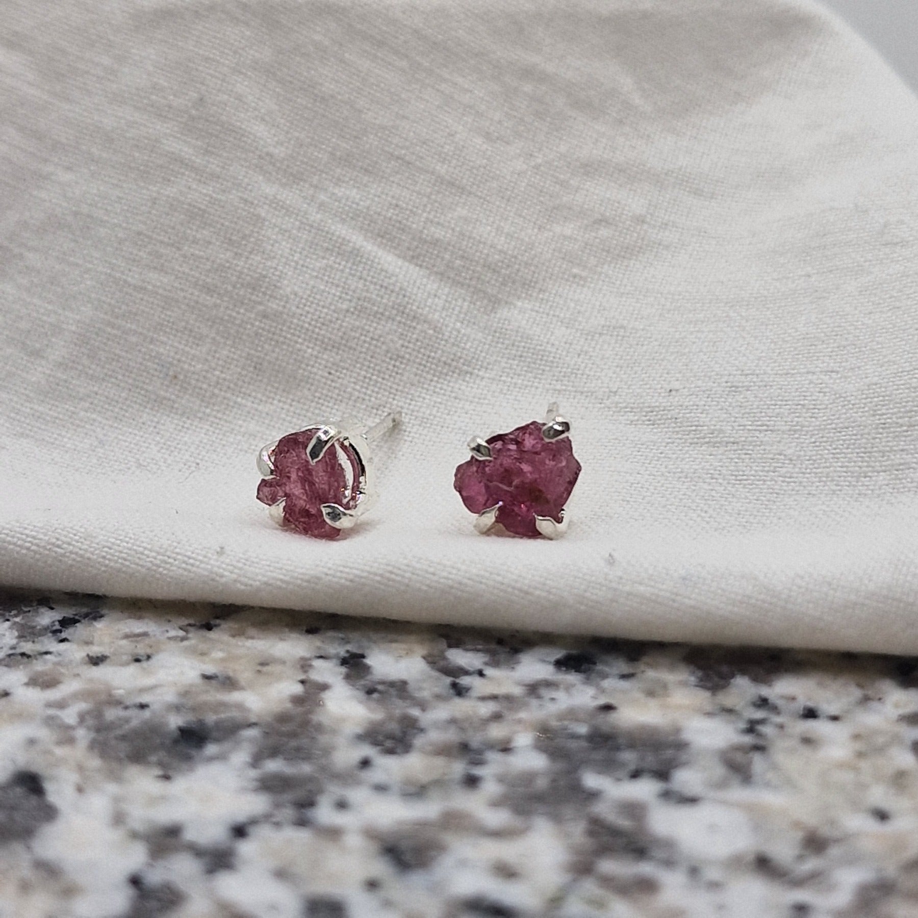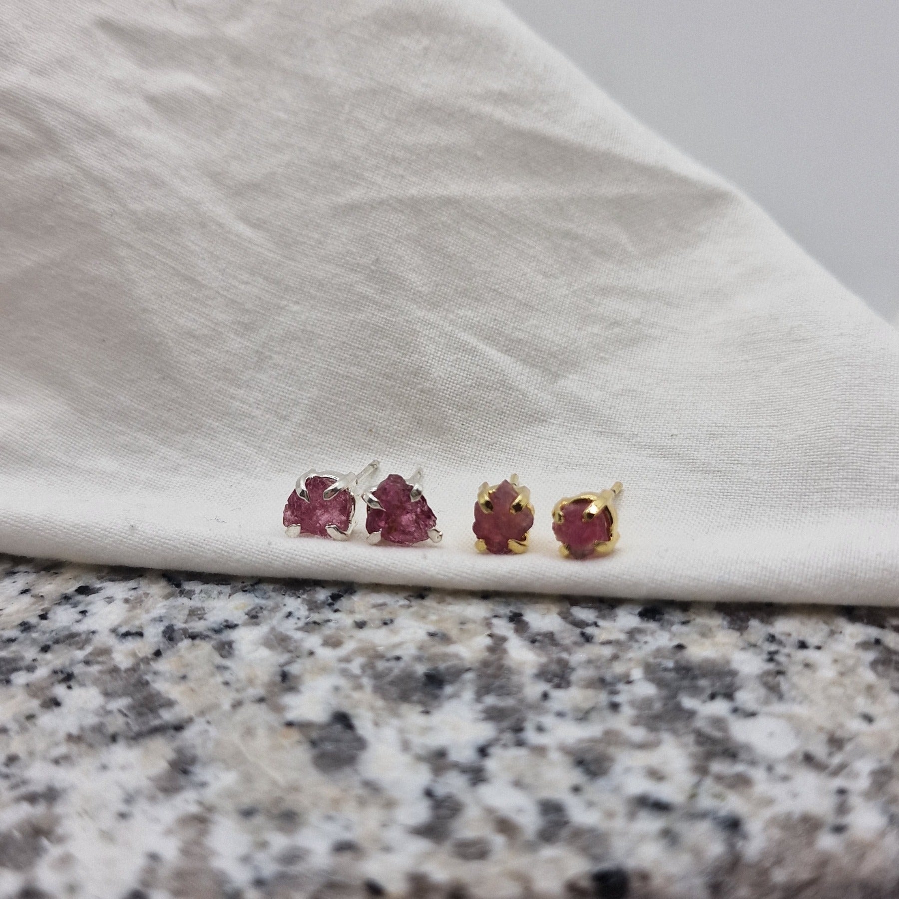 Roza Turmalin - Mini Surovi Uhani (Pink Tourmaline)