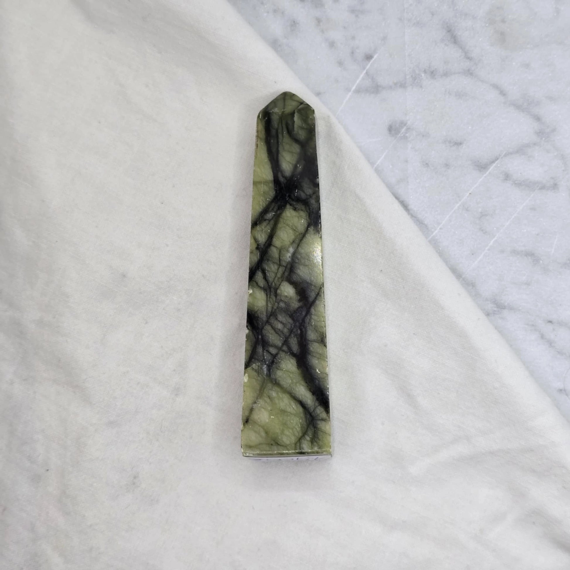 Serpentin Pajkovo Mrežo je osupljiv mineral, znan po svojih prepoznavnih vzorcih, ki spominjajo na prepleteno pajkovo mrežo. Ta unikatni kamen združuje zemeljske tone z mističnimi vzorci, kar poudarja njegovo naravno lepoto in edinstvenost. Serpentin Pajkovo Mrežo je cenjen zaradi svoje zaščitne in pomirjujoče energije, zaradi česar je idealen za vsakodnevno uporabo kot energijska podpora ali dekorativni kos.