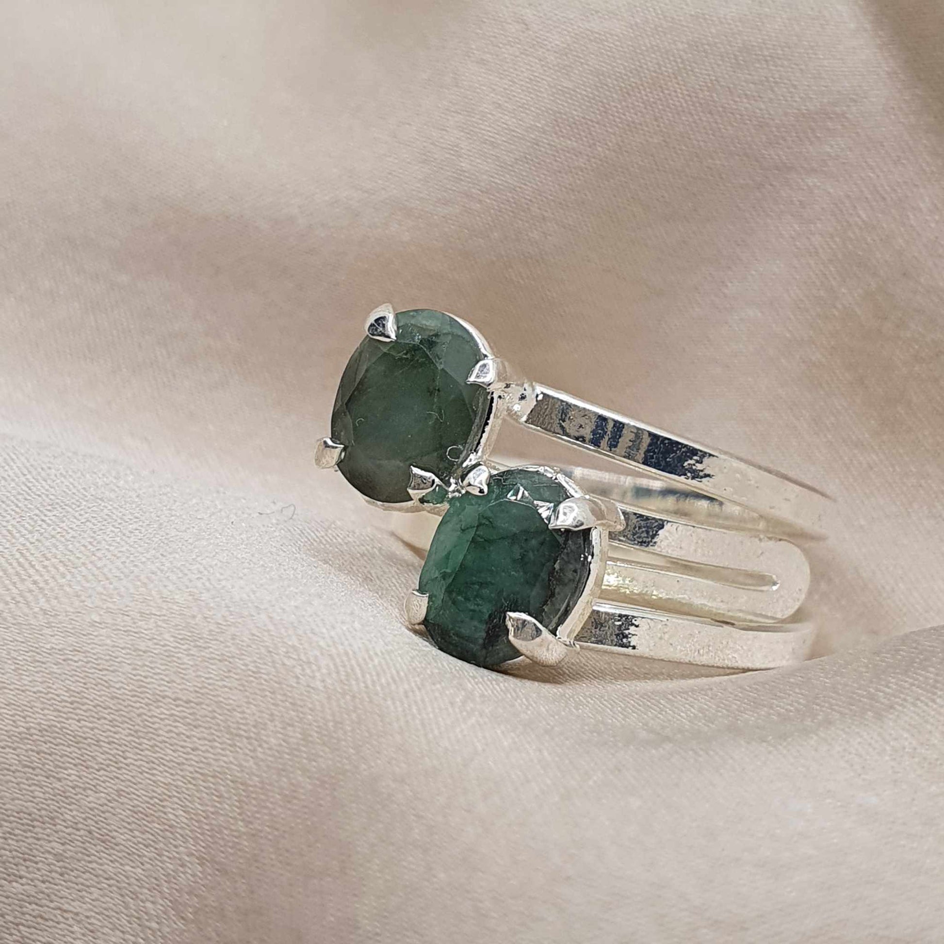 Smaragd - Dragi Kamen Dvojni Oval Prstan (Emerald)