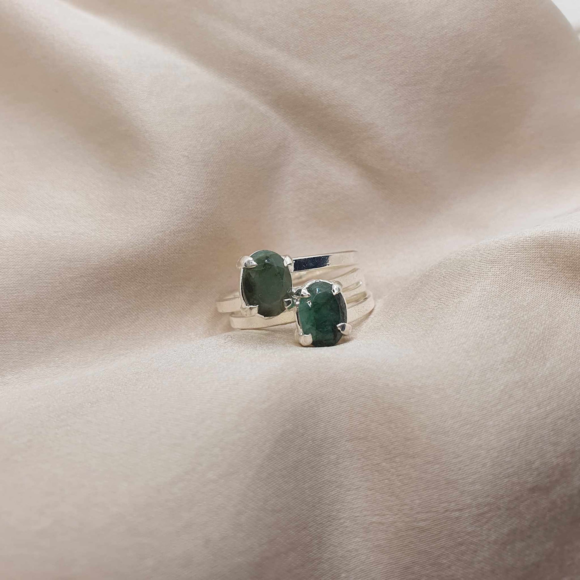 Smaragd - Dragi Kamen Dvojni Oval Prstan