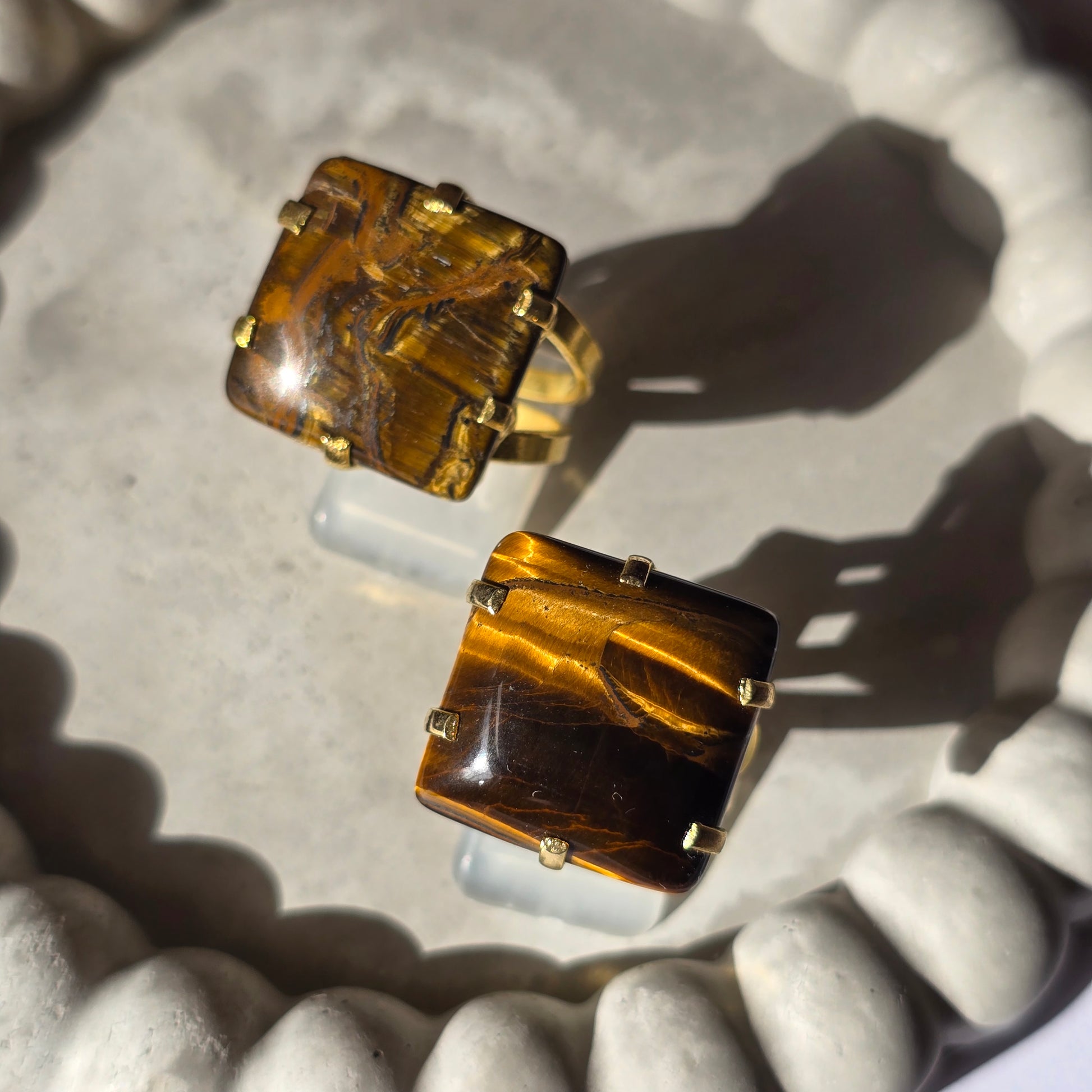Tigrovo oko, s svojimi globokimi zlatimi in rjavimi odtenki, je resnično čudež narave. Ta kamen, ki simbolizira pogum, jasnost in moč, je kot nalašč za vse, ki si želijo okrepiti svojo notranjo moč ali izboljšati svoje odločitvene procese. Njegova sposobnost, da prinaša mirnost uma in spodbuja fokus, ga dela izjemno cenjenega za izdelavo nakita, ki ne le da je lep na pogled, ampak služi kot opomnik na naše globlje sposobnosti in neomajno voljo.