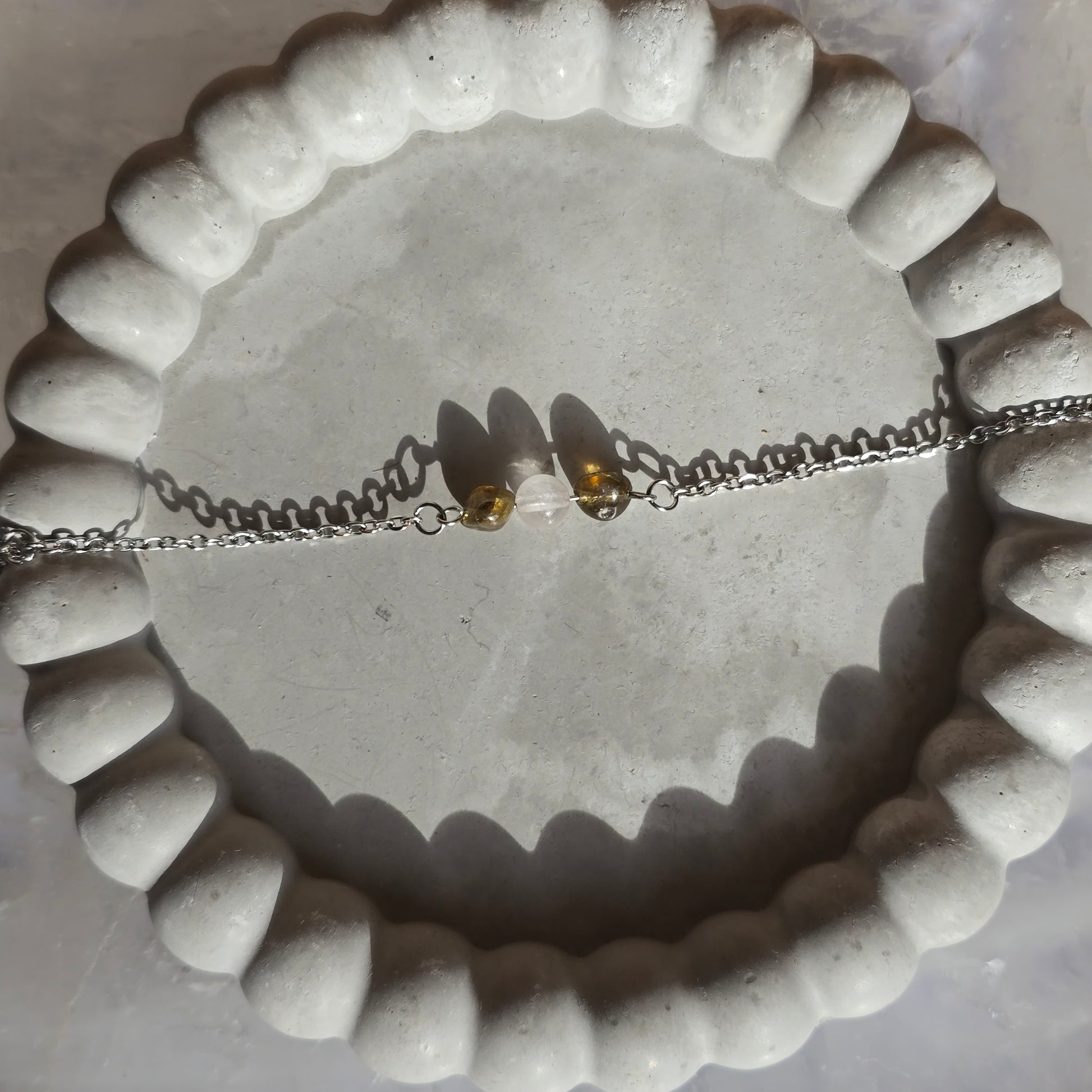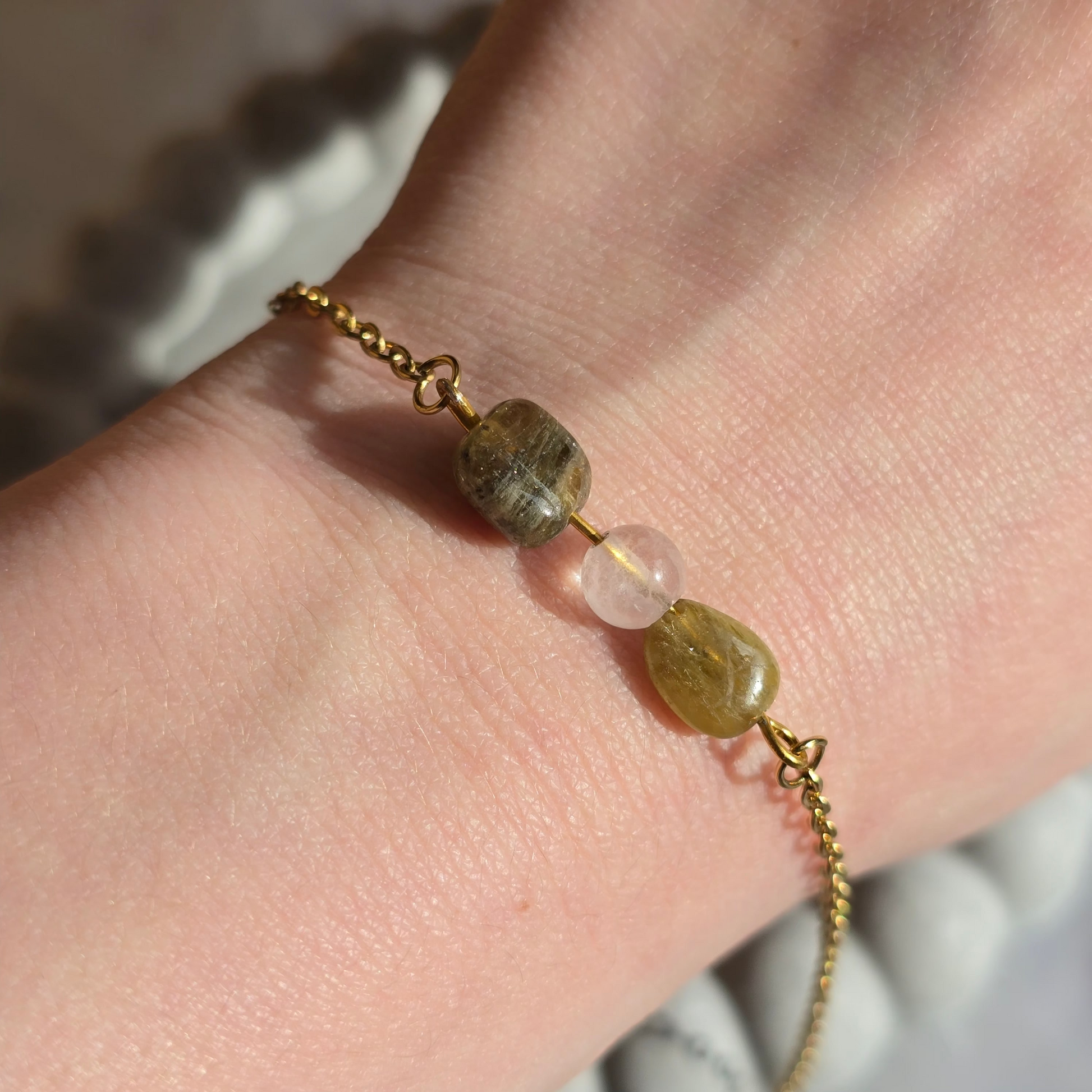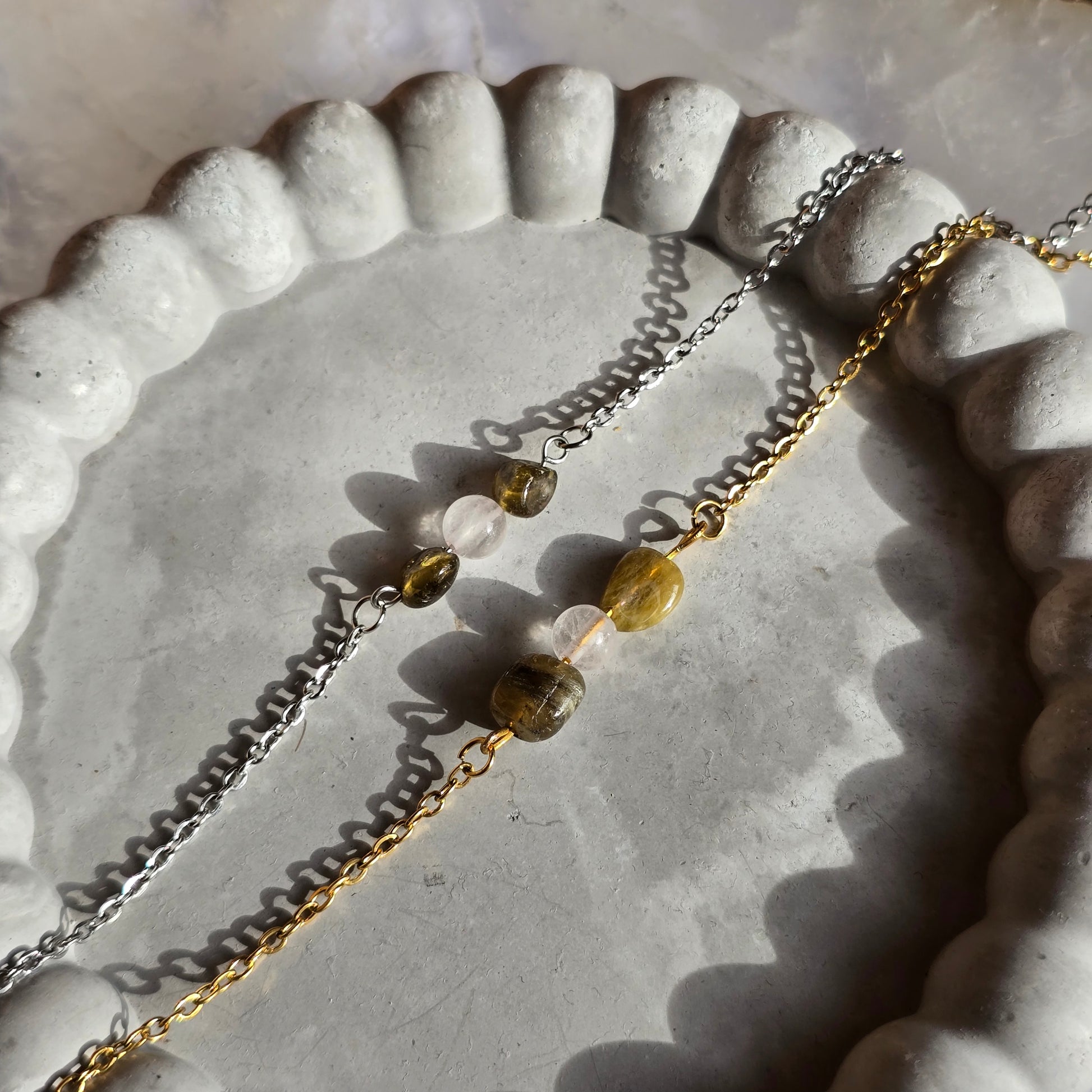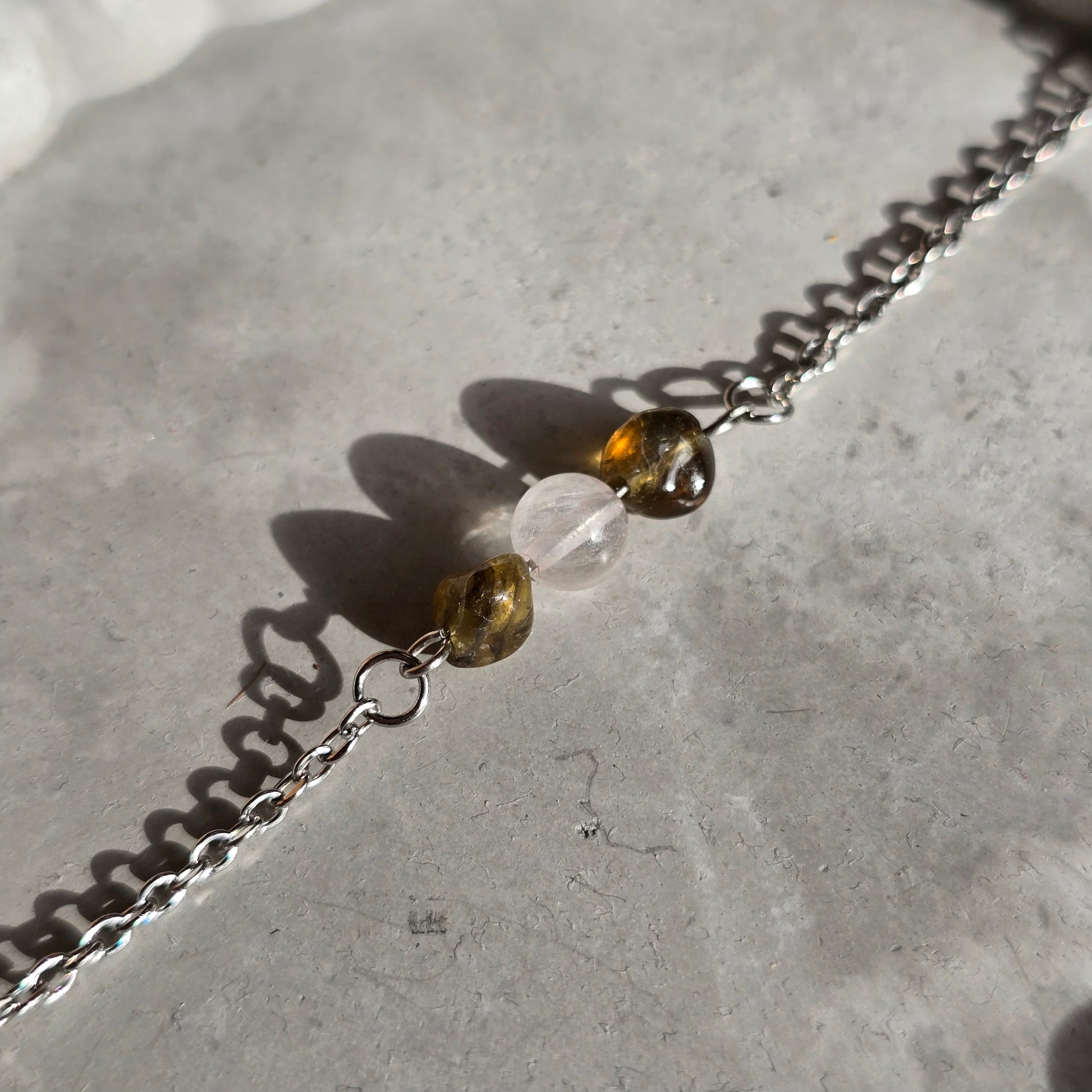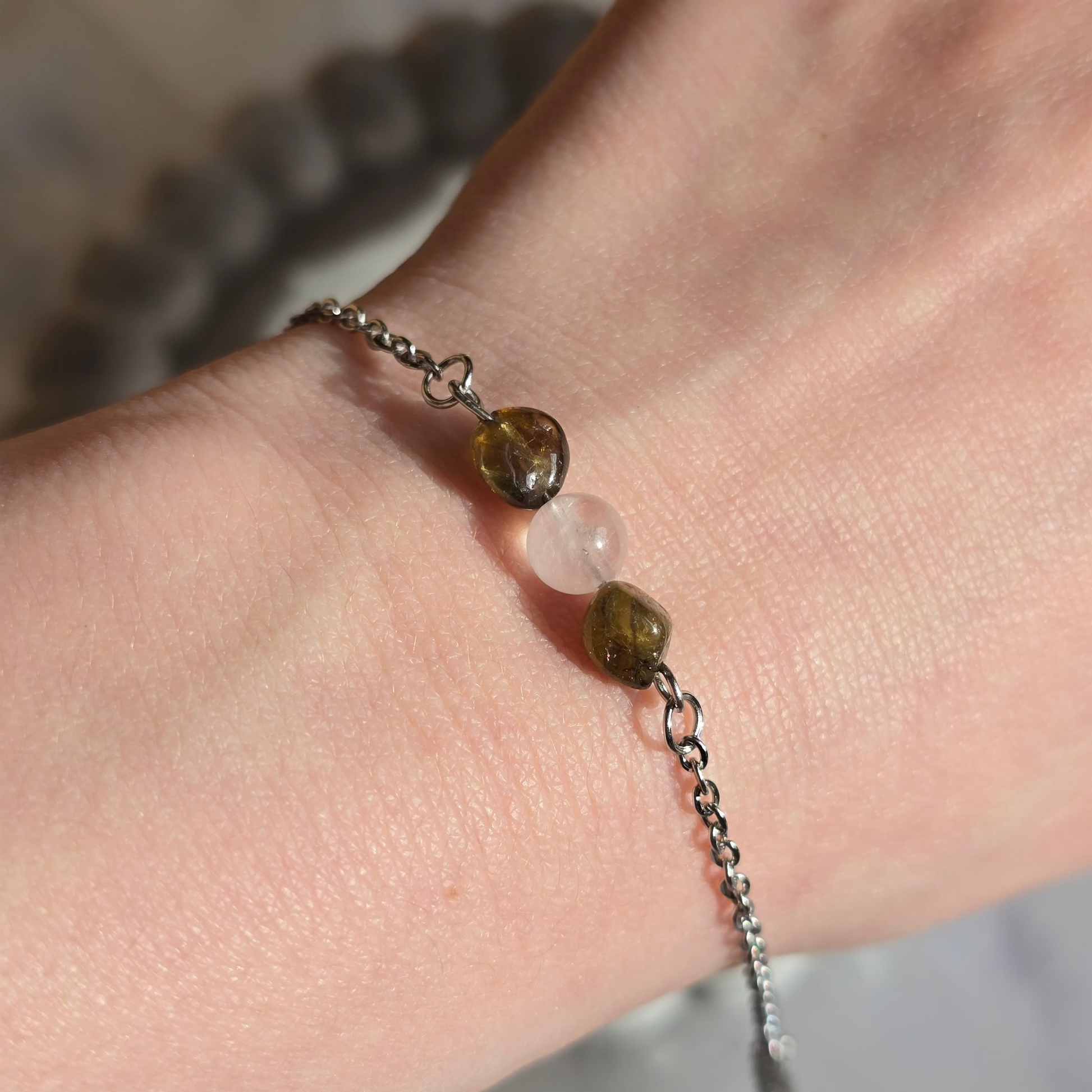 Kombinacija roževca in zelenega turmalina združuje nežno energijo ljubezni z energijo rasti in ravnovesja. Ta harmonična povezava simbolizira odprto srce, notranji mir ter povezanost z naravo in samim seboj.