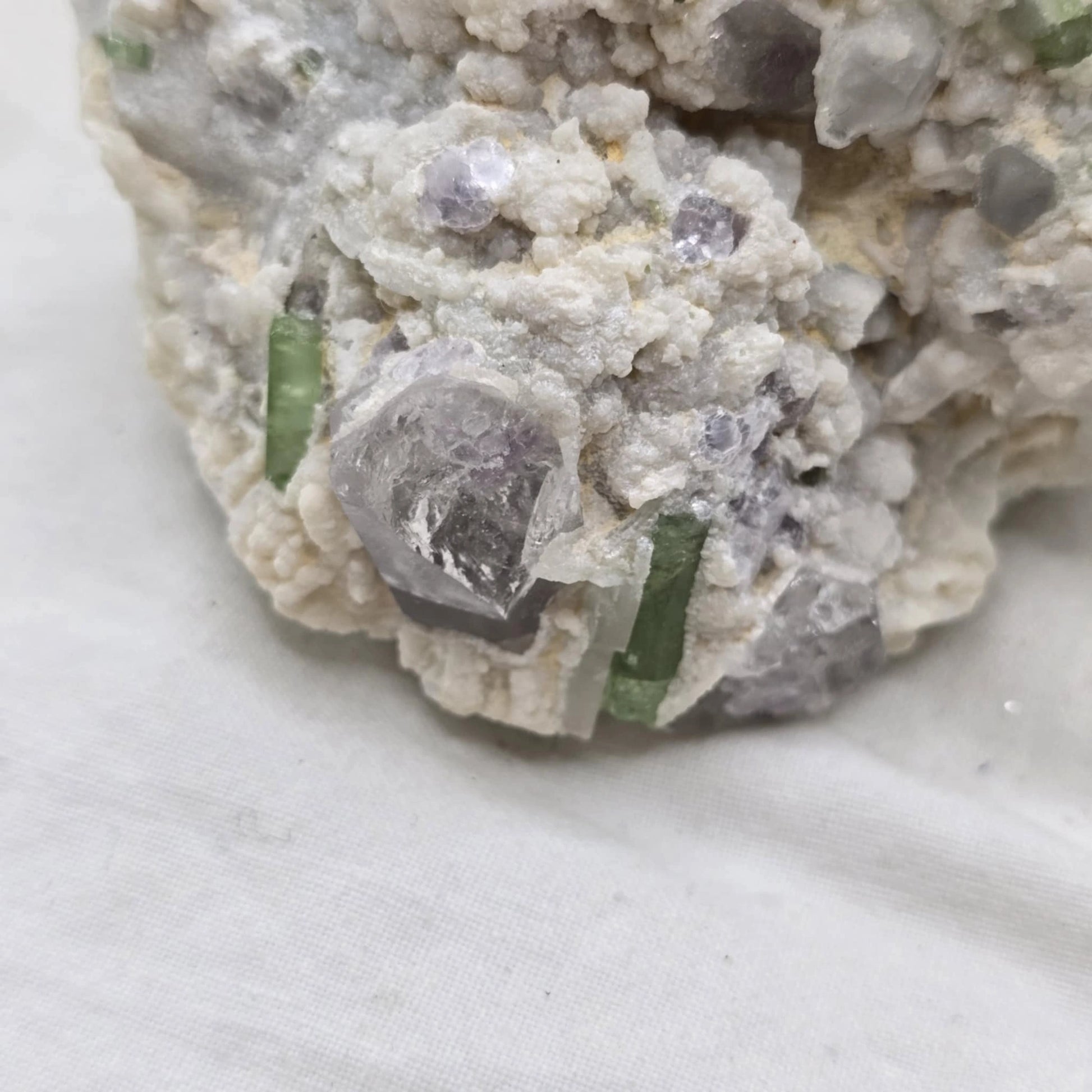 Kristali se pogosto pojavljajo v različnih odtenkih zelene, vijolične in bele, njihova prosojnost in sijaj pa poudarjata naravno lepoto te unikatne kombinacije. Ta kristal velja za simbol rasti, harmonije in osebne preobrazbe, zaradi česar je dragocen spremljevalec pri duhovnem razvoju.